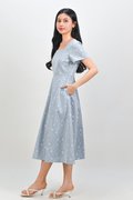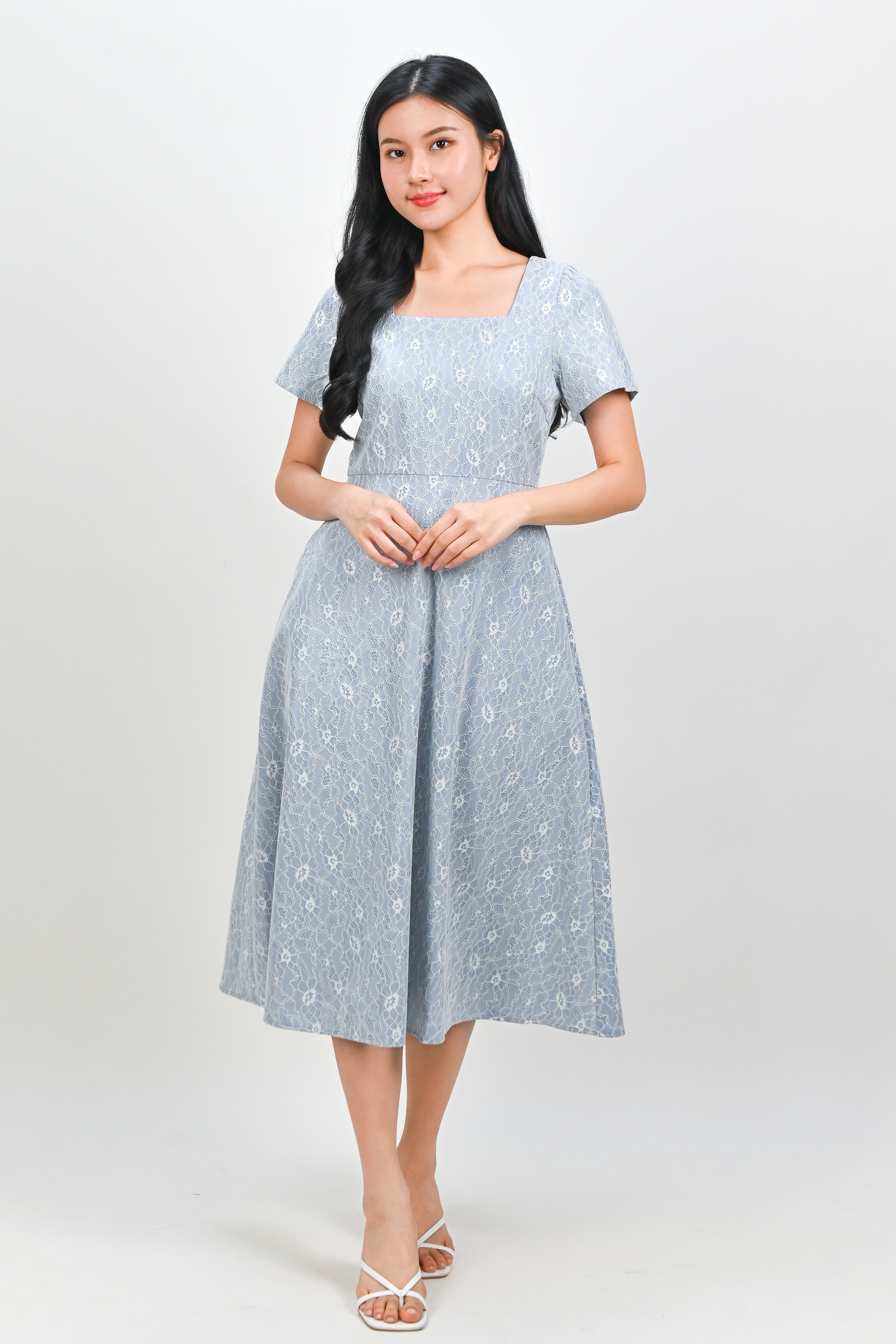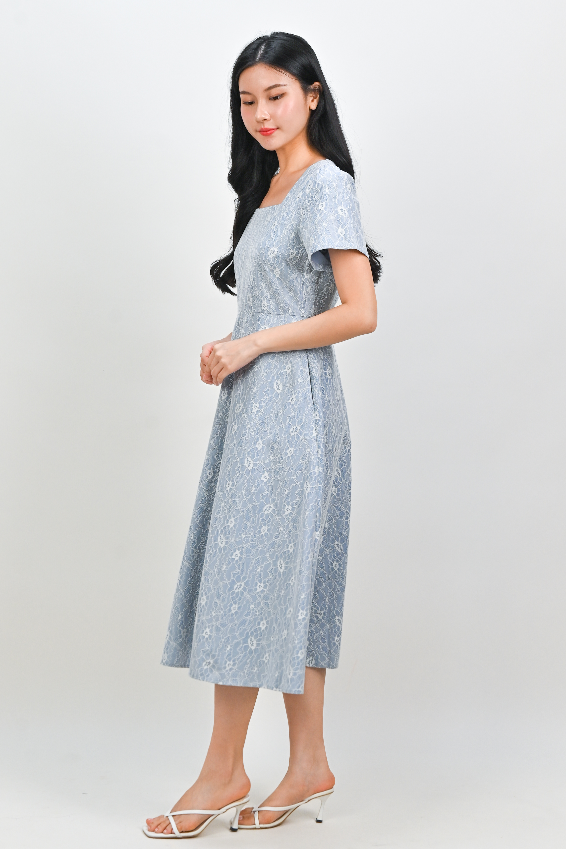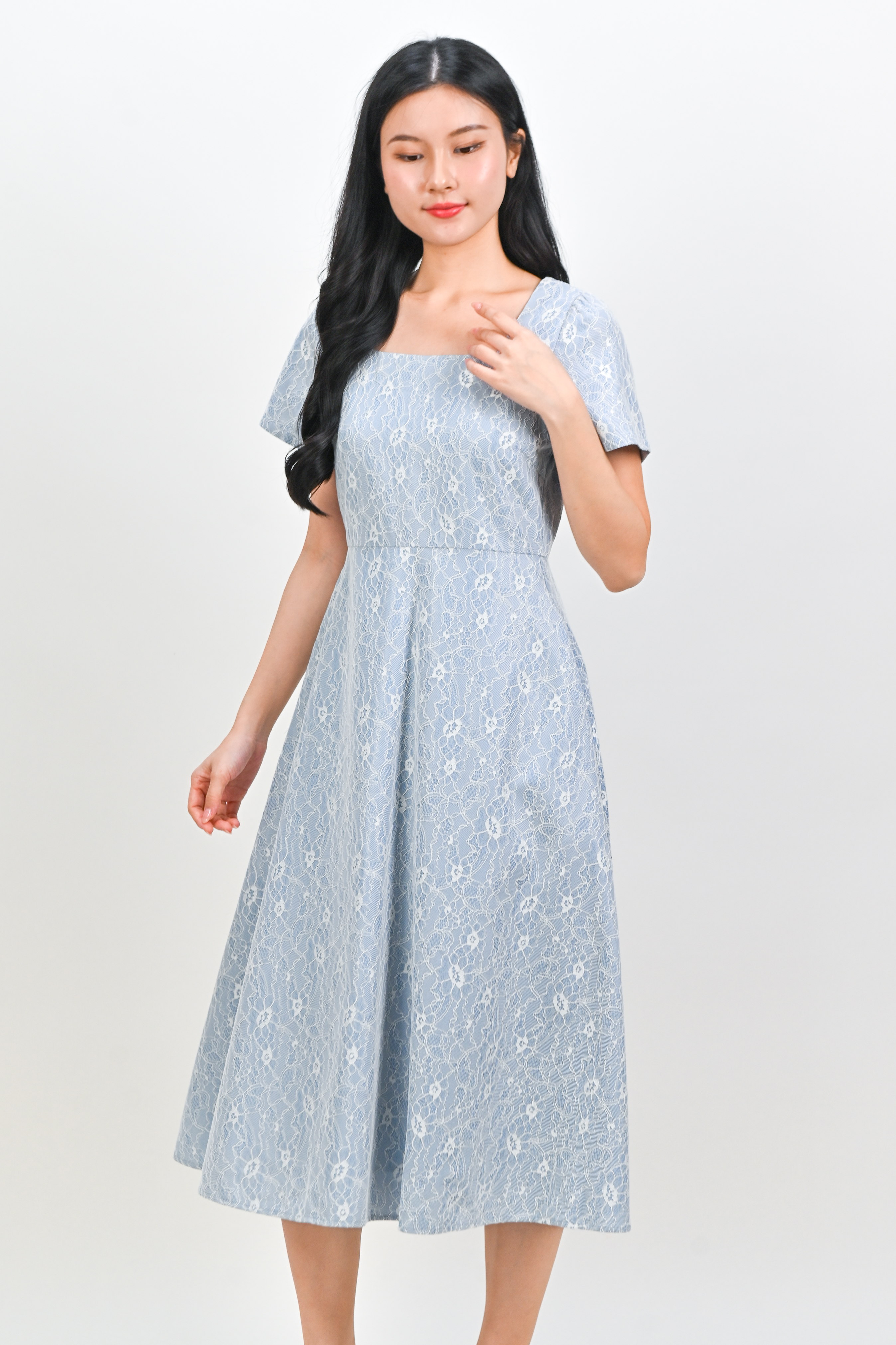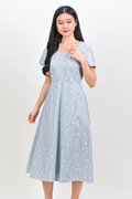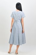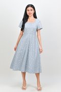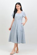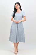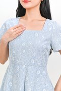 ALOUETTE LACE-PRESSED SQUARE-NECK DRESS IN BLUE