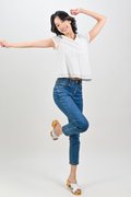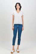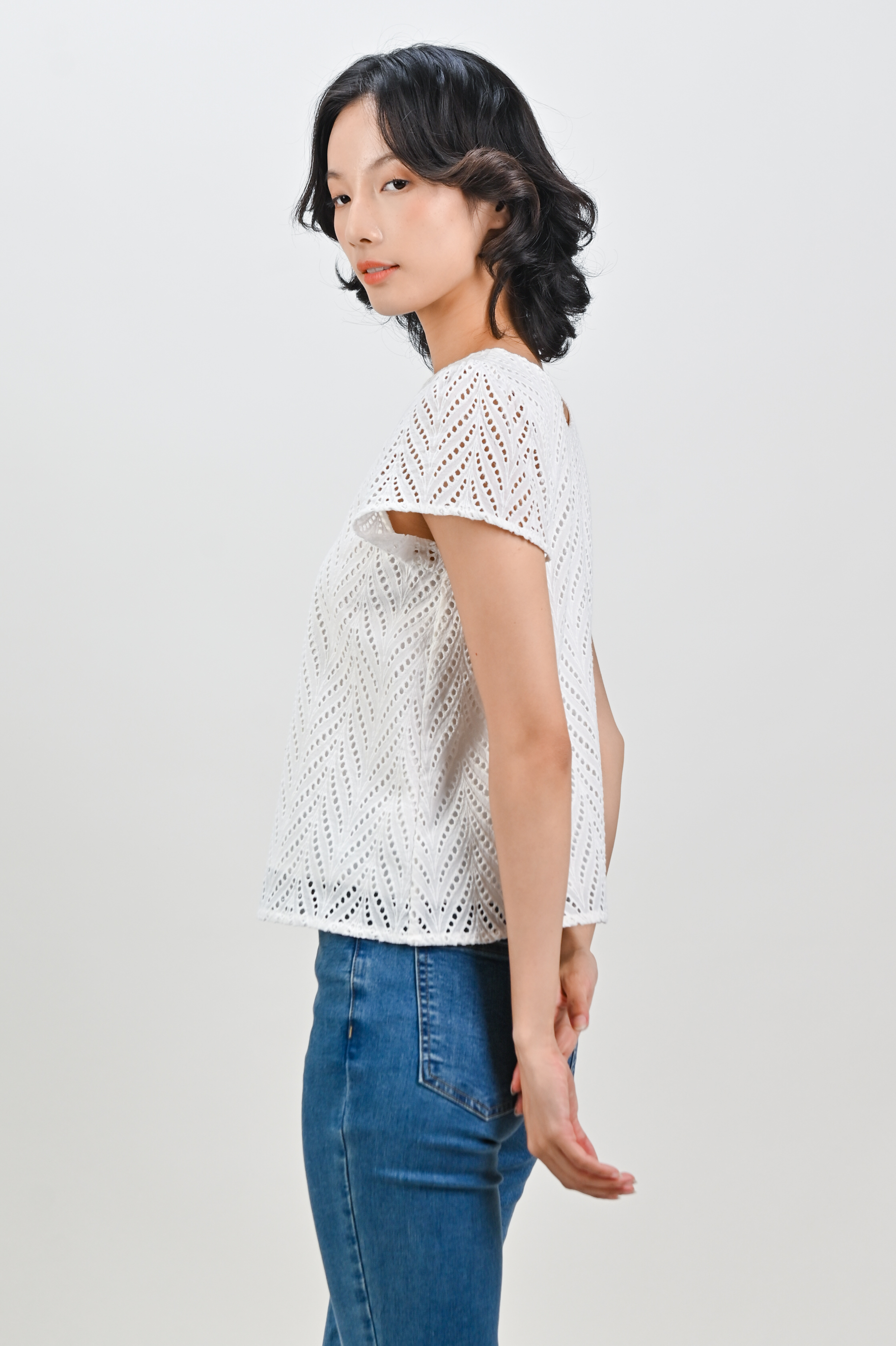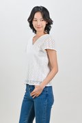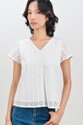 ALYSE LEAFY EYELET SLEEVED TOP IN WHITE