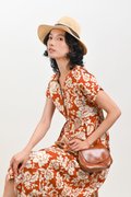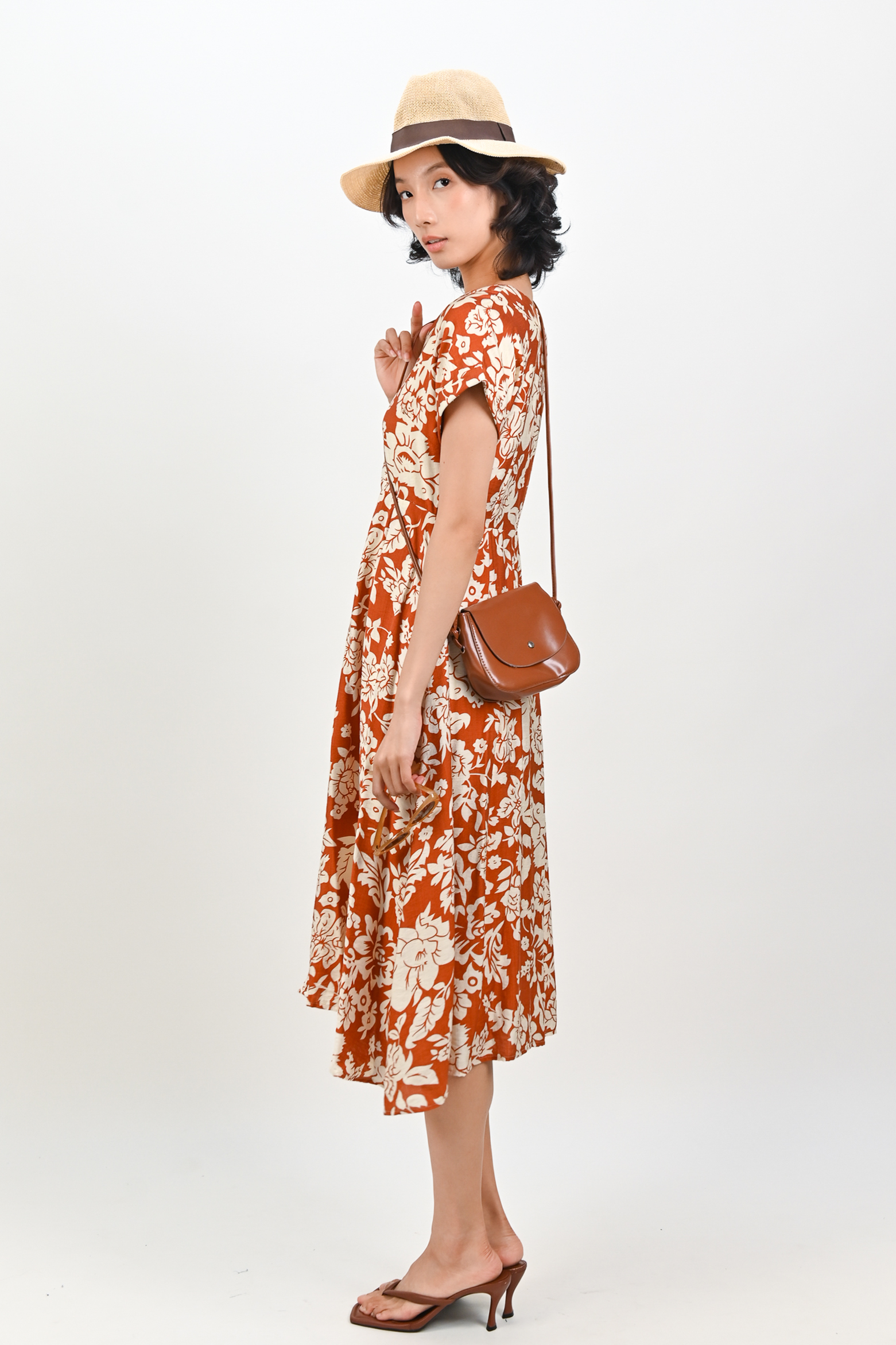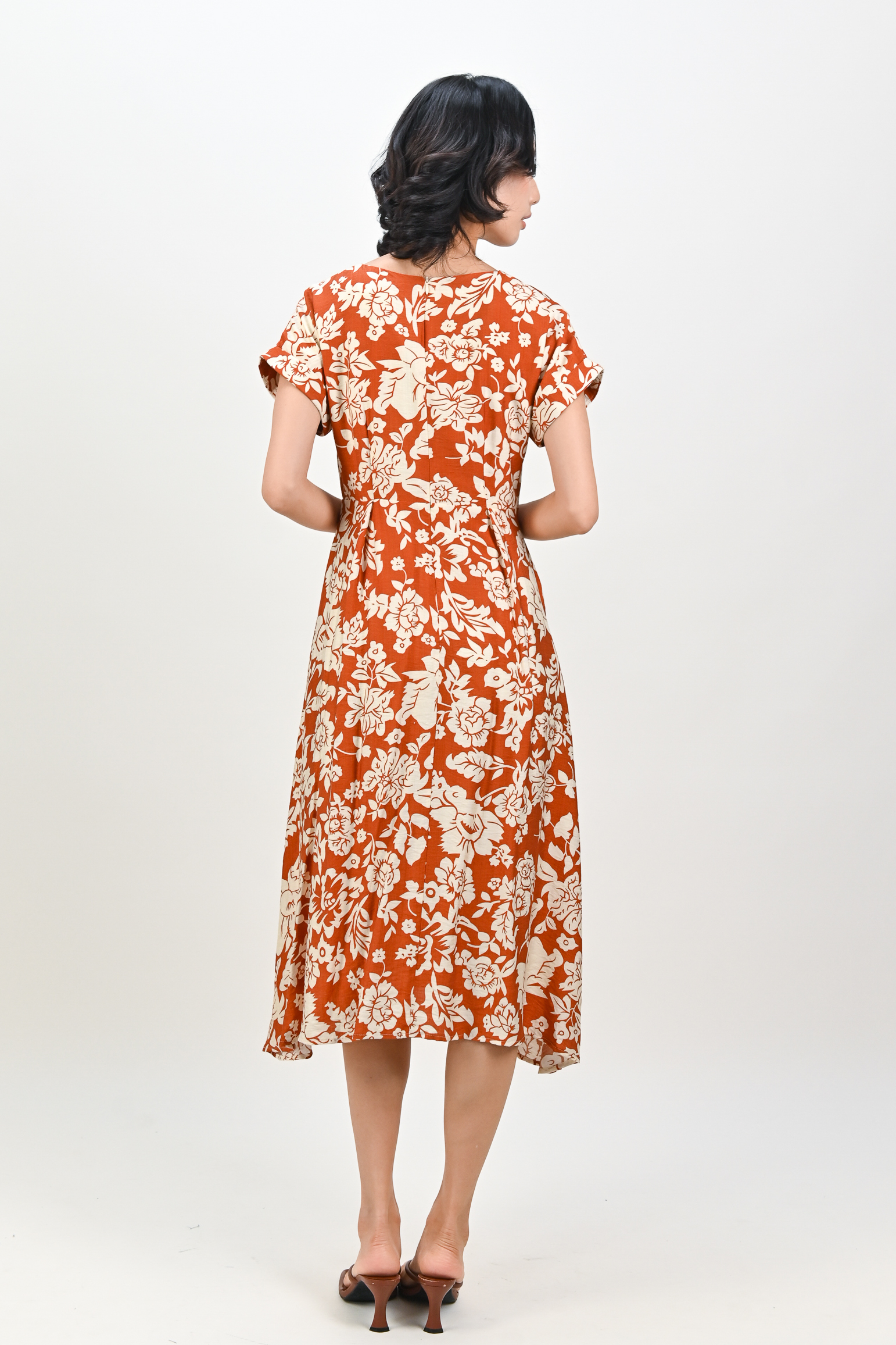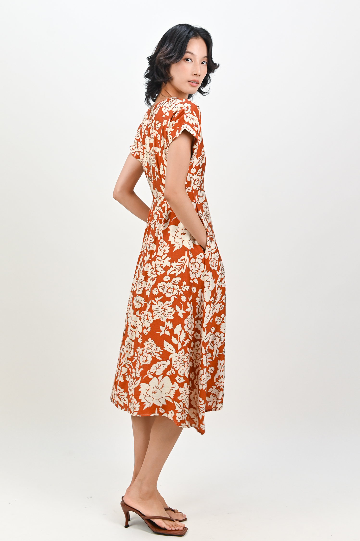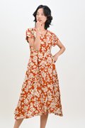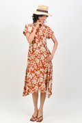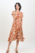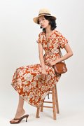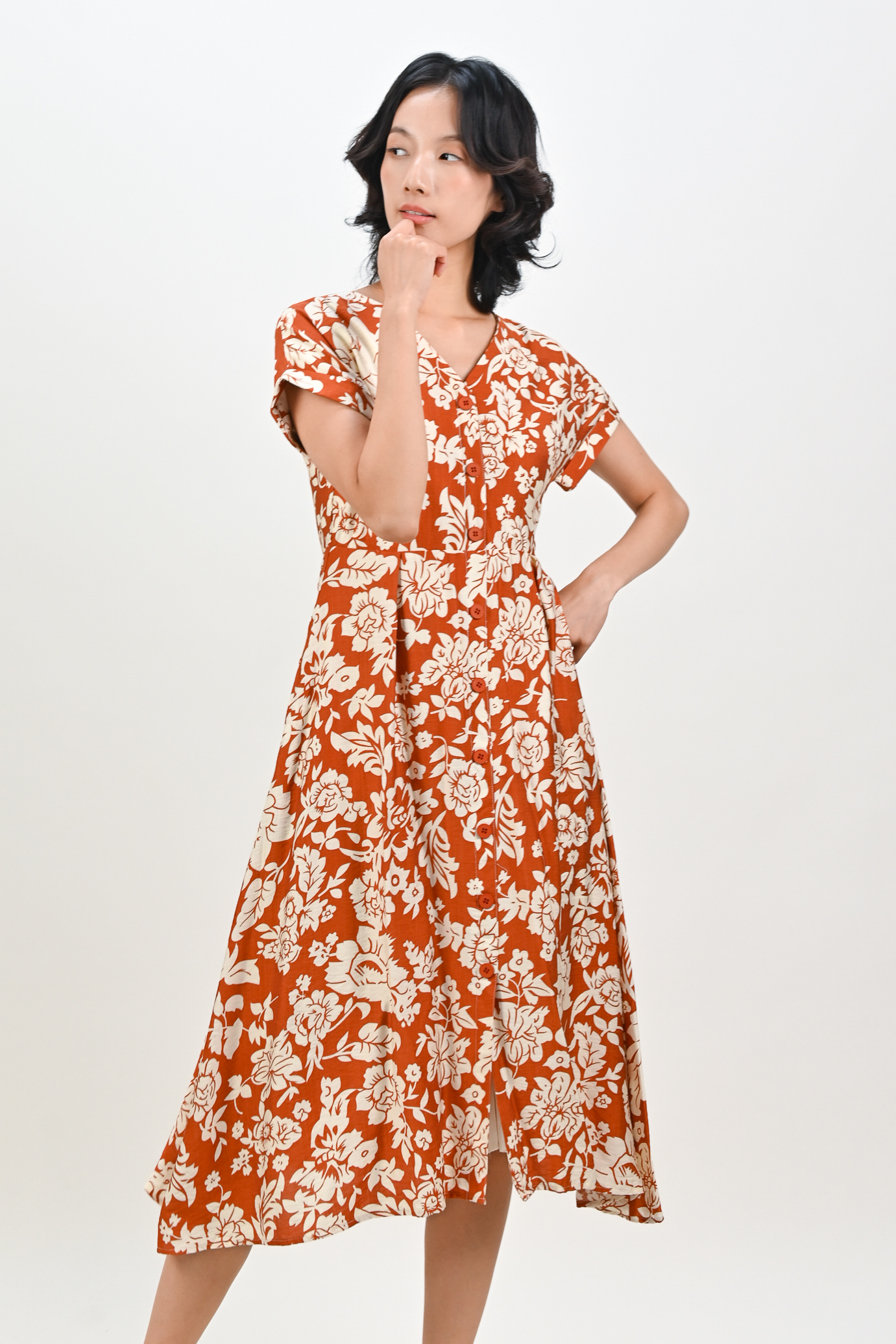 AMIRAE RESORT SLEEVED BUTTON DRESS IN ORANGE
