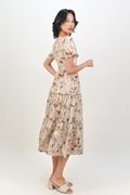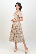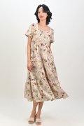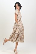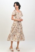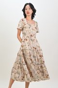 AMKA EYELET FLORAL SQUARE-NECK DRESS IN BEIGE FLORAL