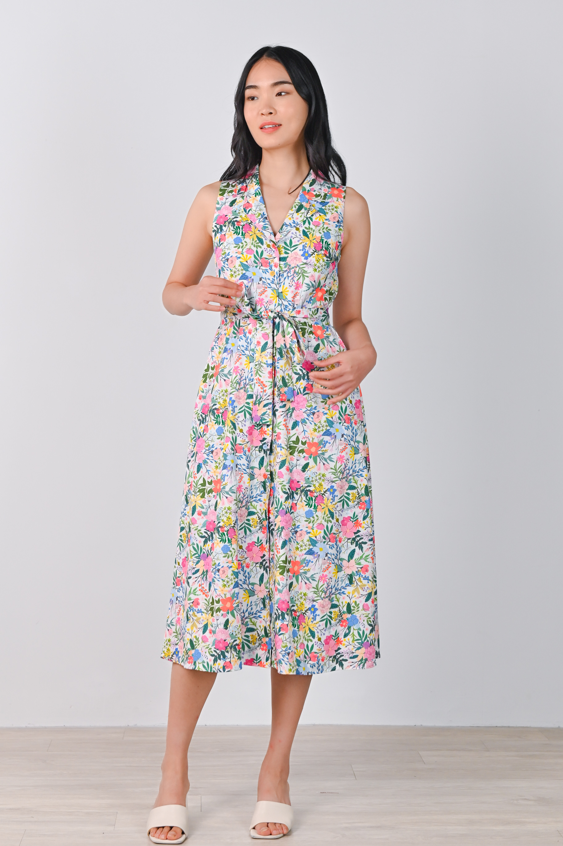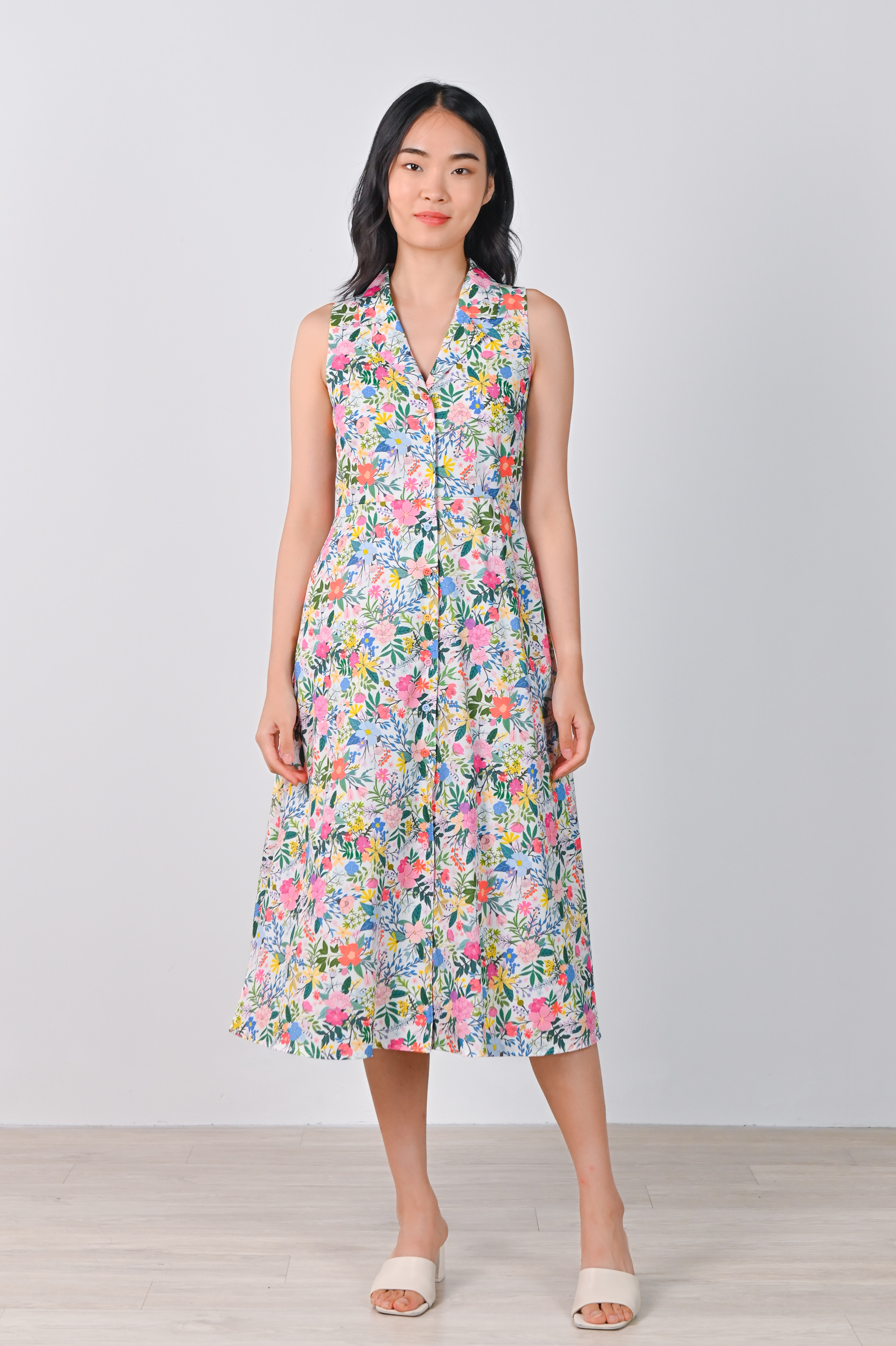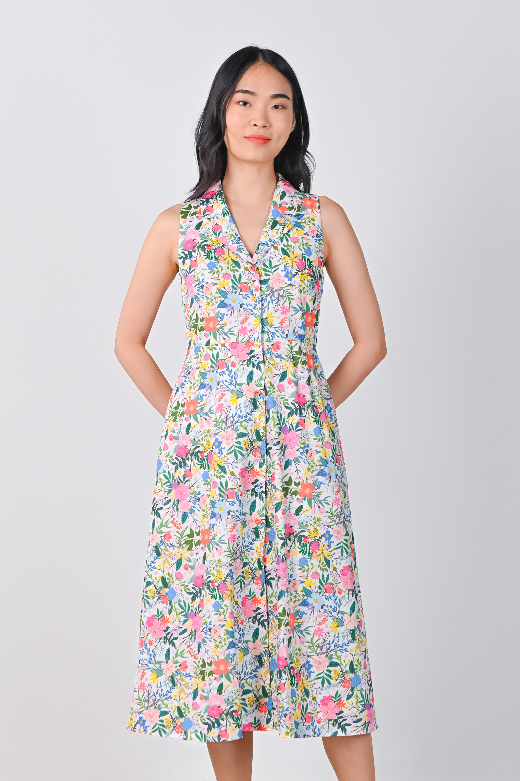 Actual stocks may varyKeep it fresh and classy with a touch of vintage in our Ammie Camp-Collar Sleeveless Shirt-Dress! 🍒👠