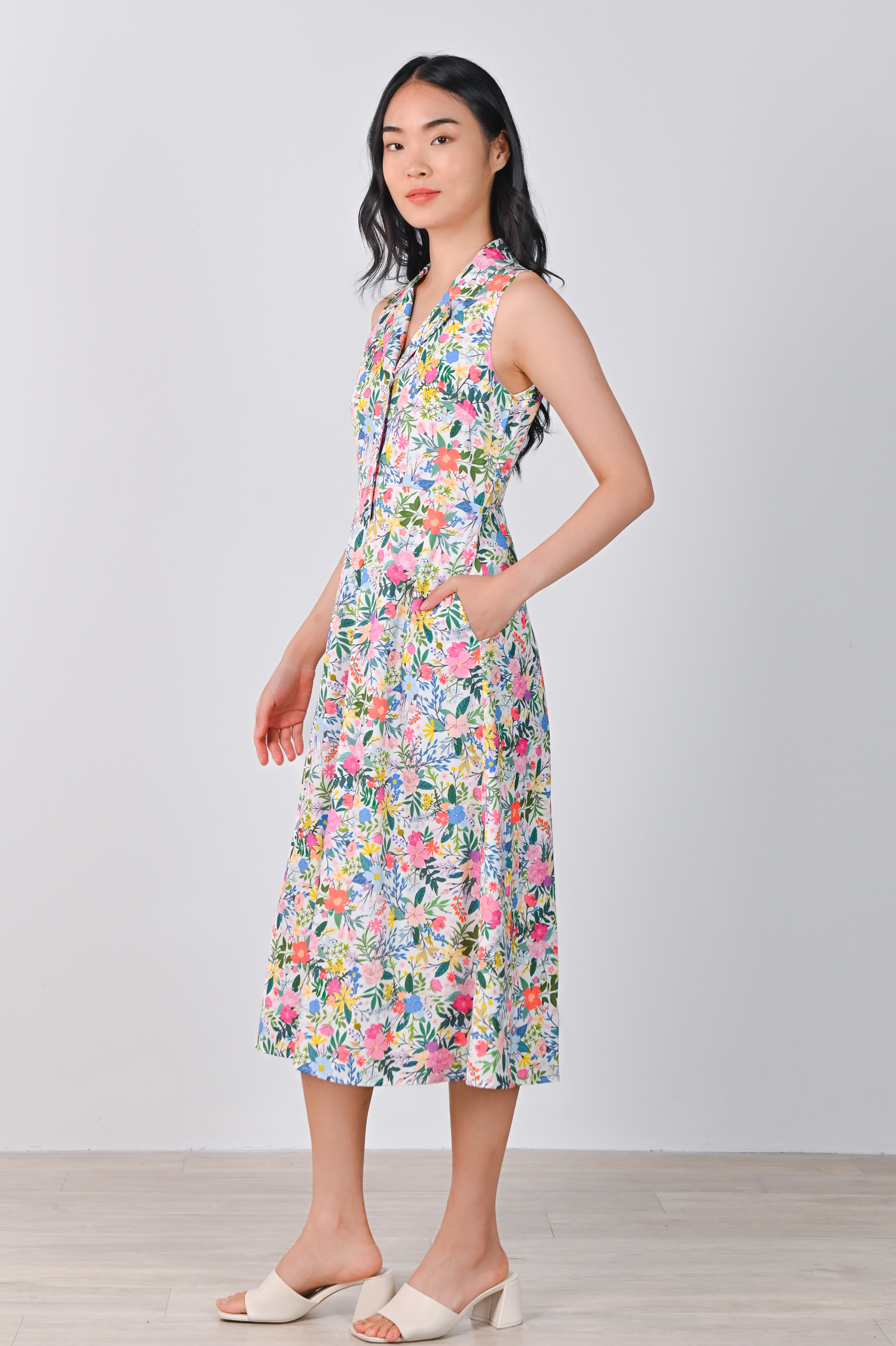 AMMIE CAMP-COLLAR SLEEVELESS SHIRT-DRESS