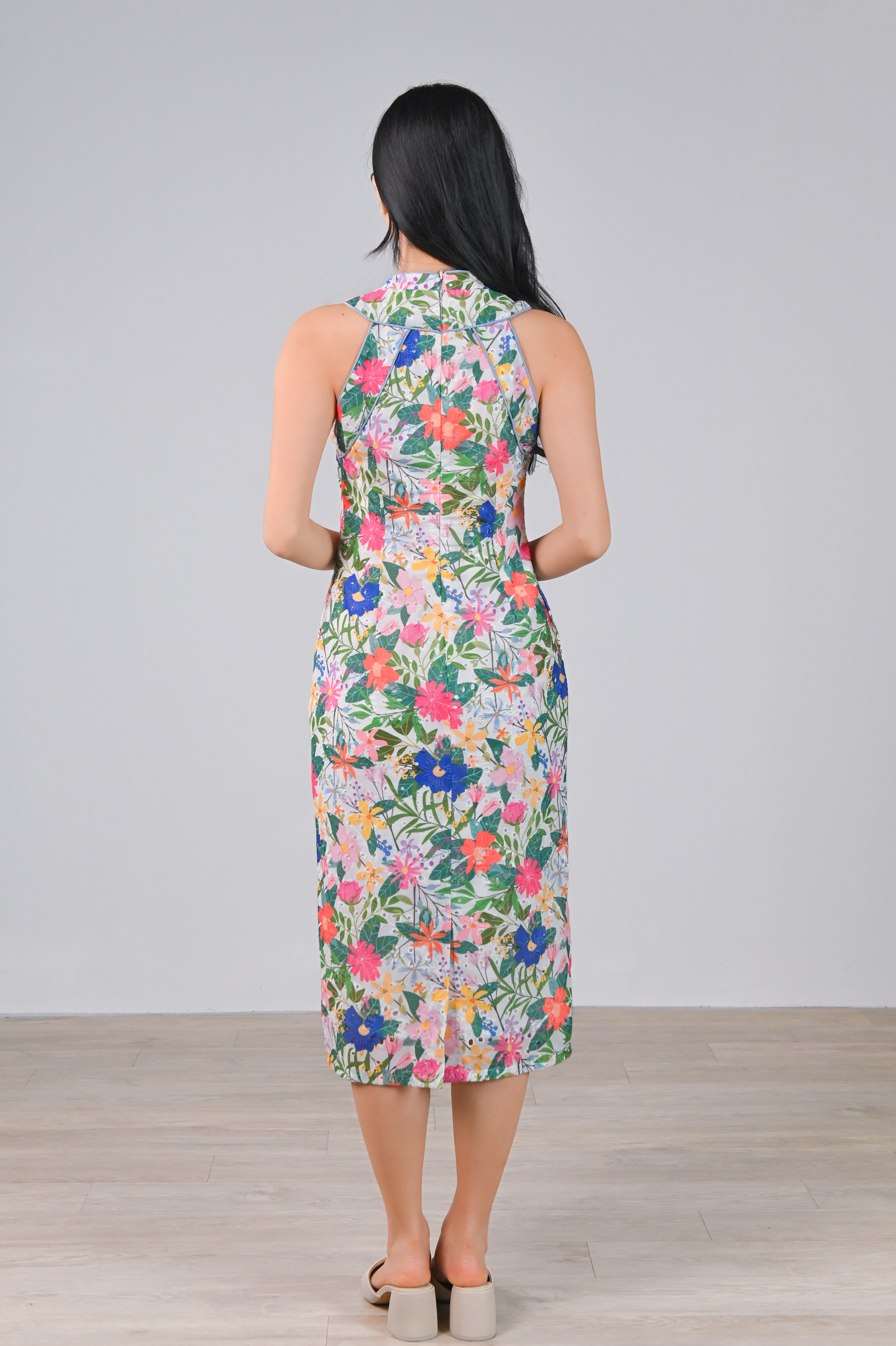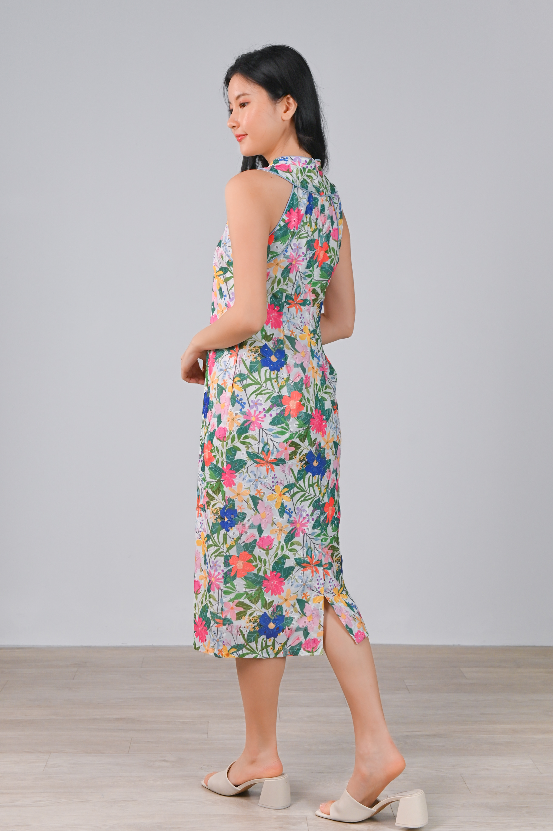 AMMIE FLORAL EYELET SLEEVELESS CHEONGSAM