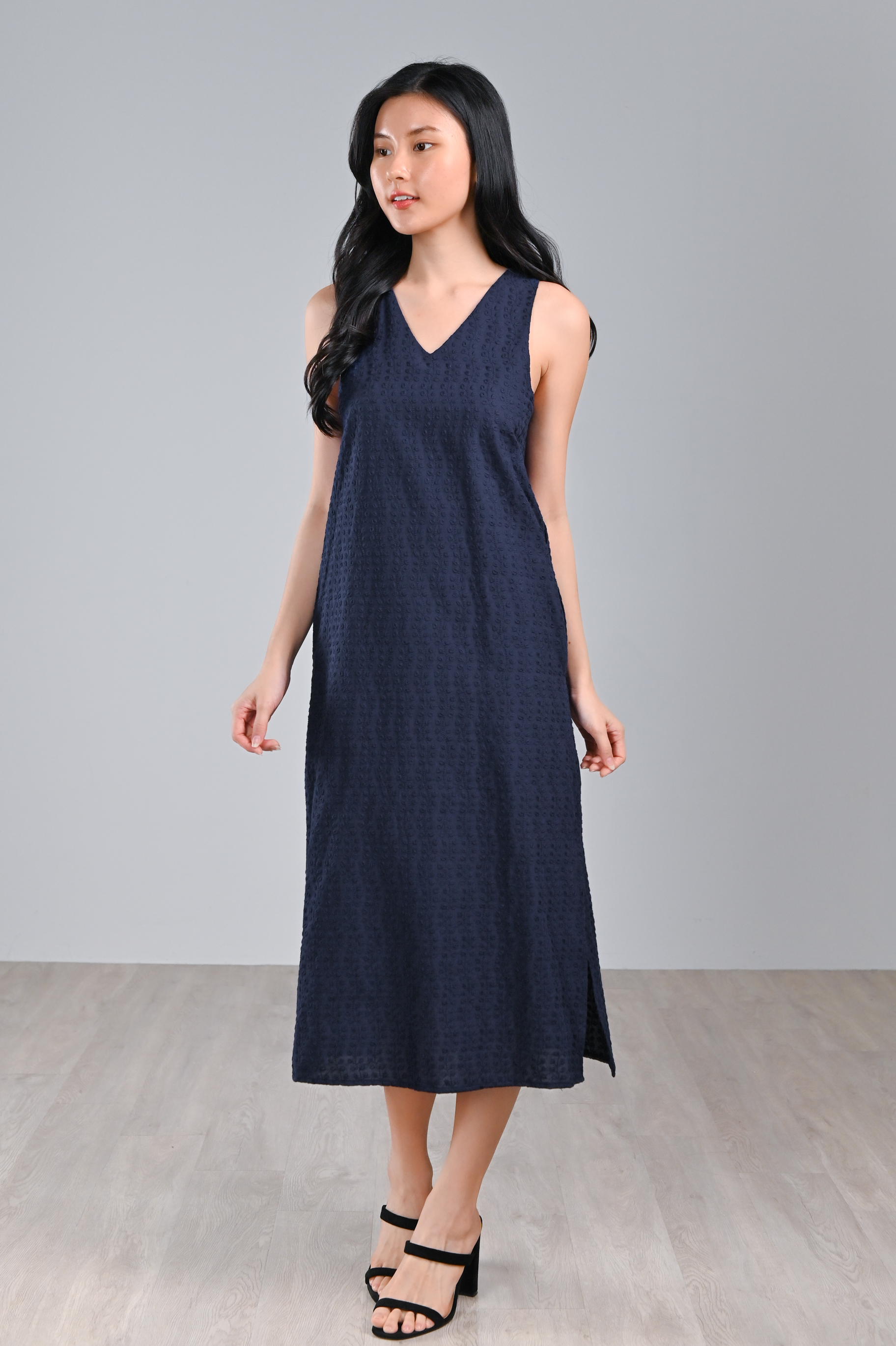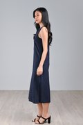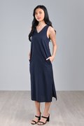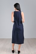 ANEMONE EMB. LEAVES SIDE-SLIT MIDI IN NAVY