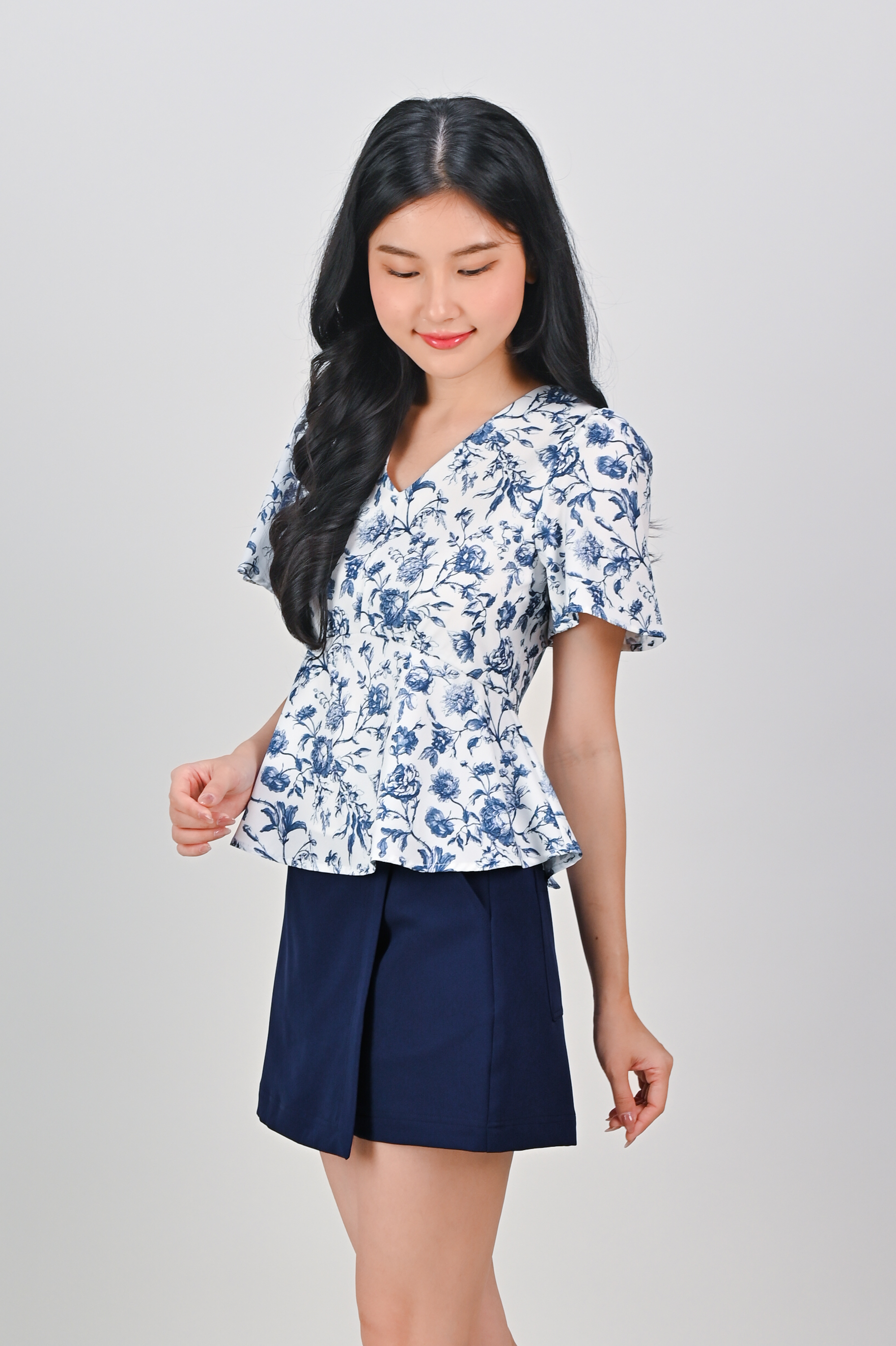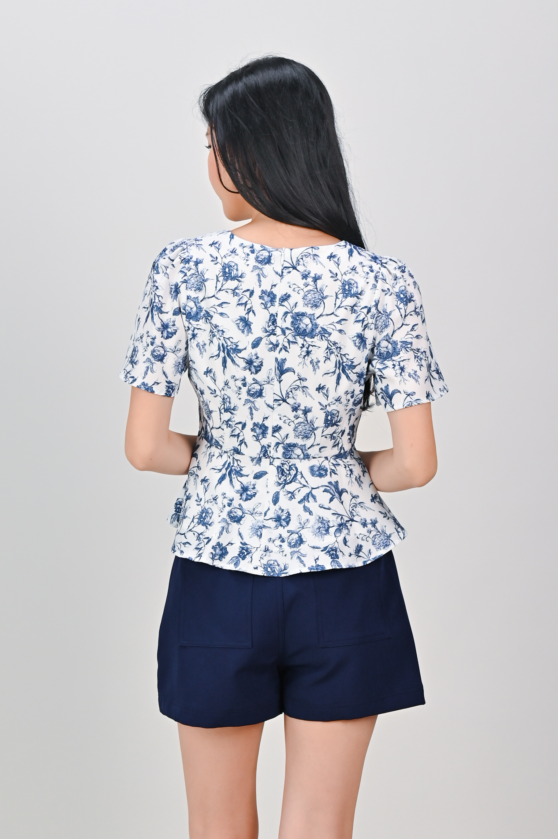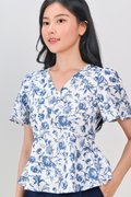 ANTIQUE TOILE SLEEVED PEPLUM TOP