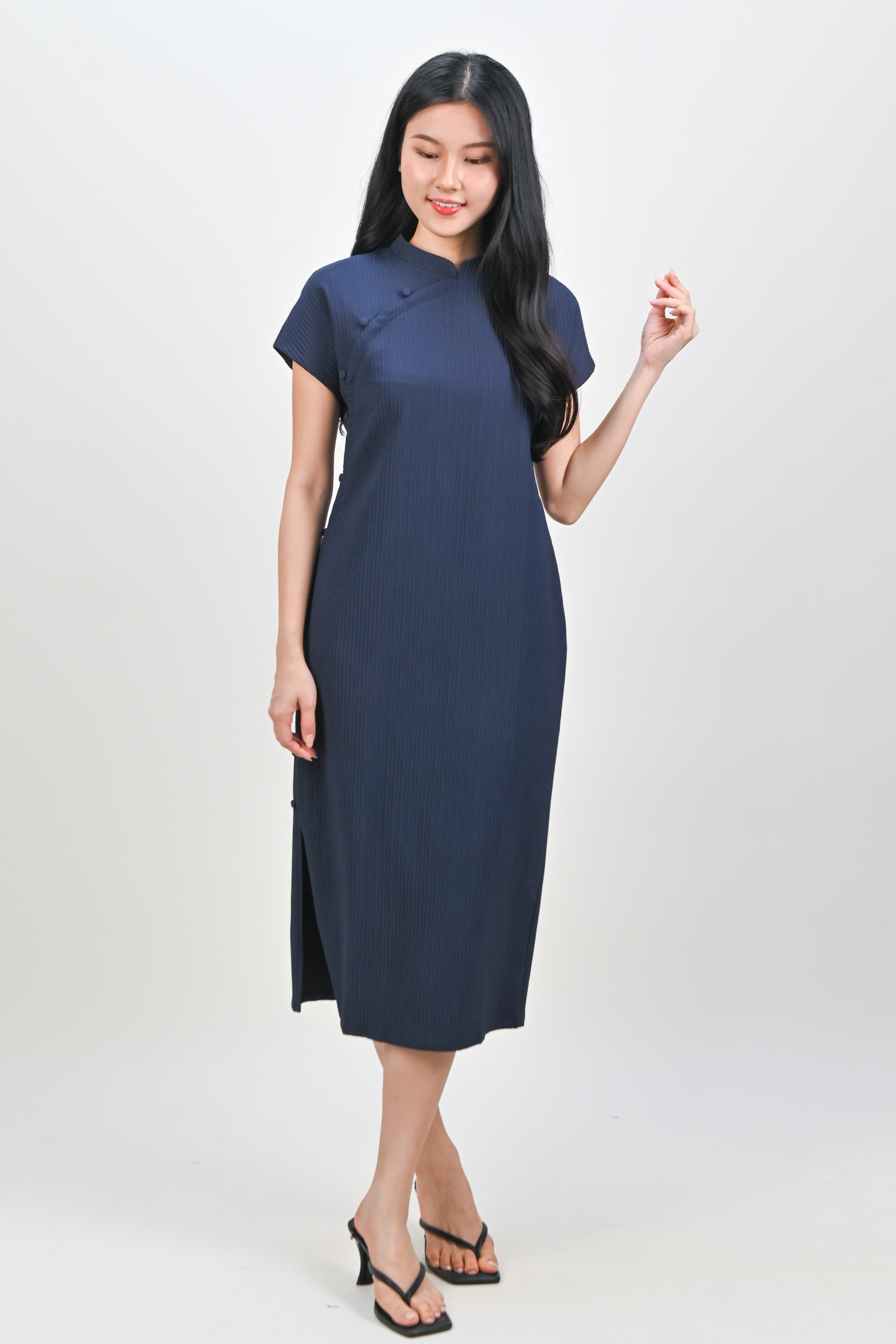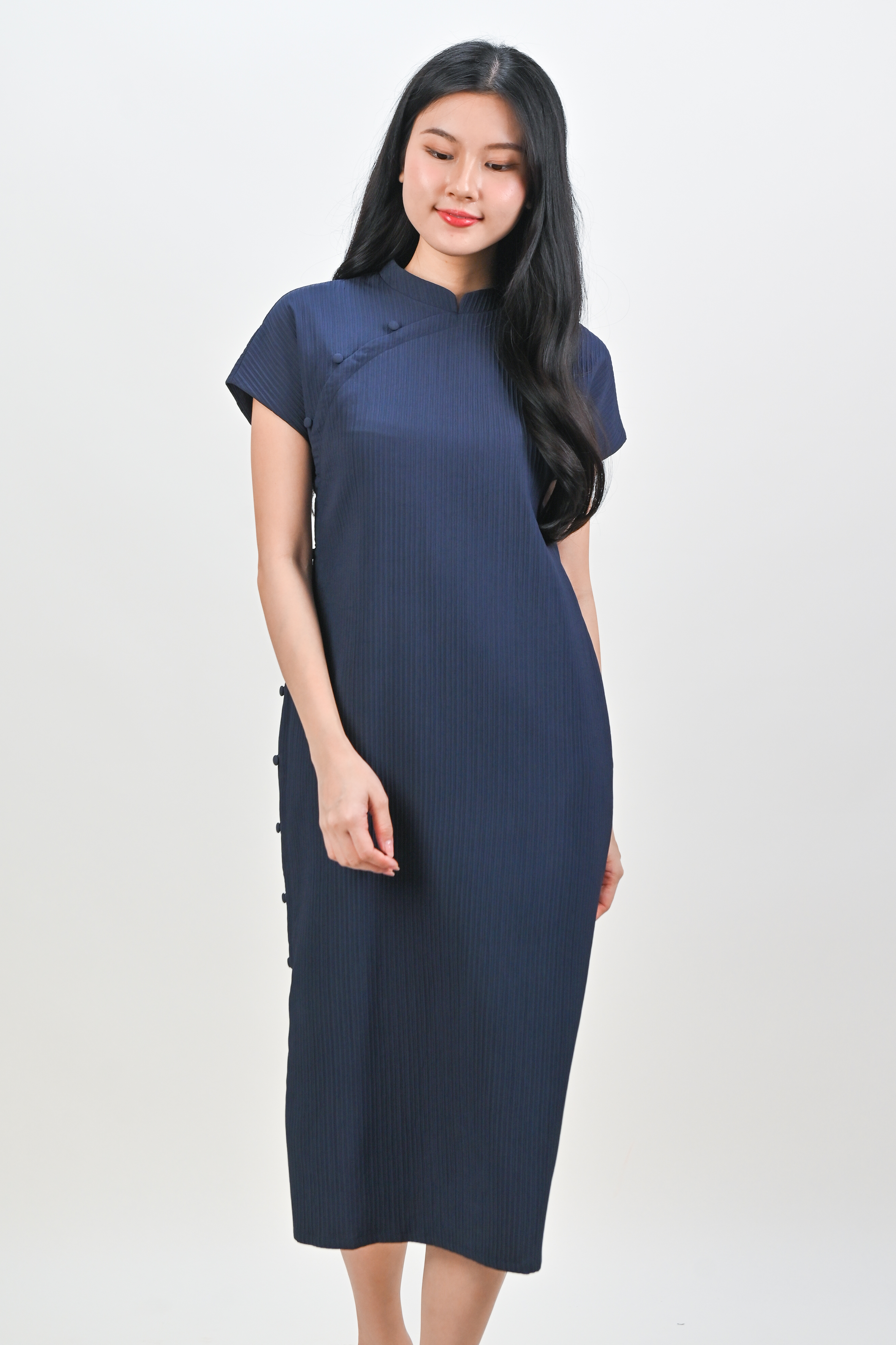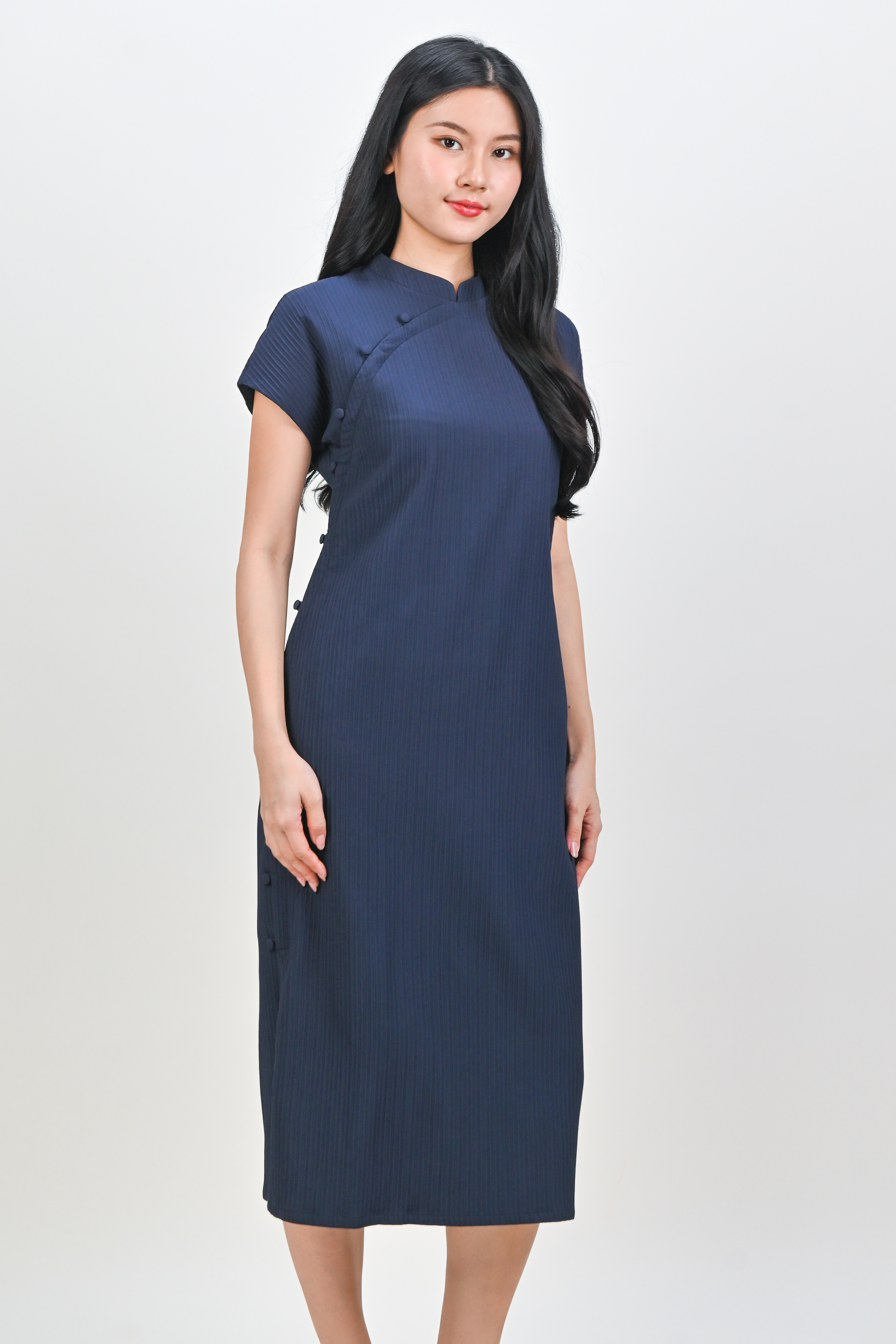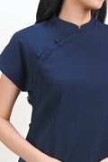 ANYA CHEONGSAM MIDI DRESS IN NAVY