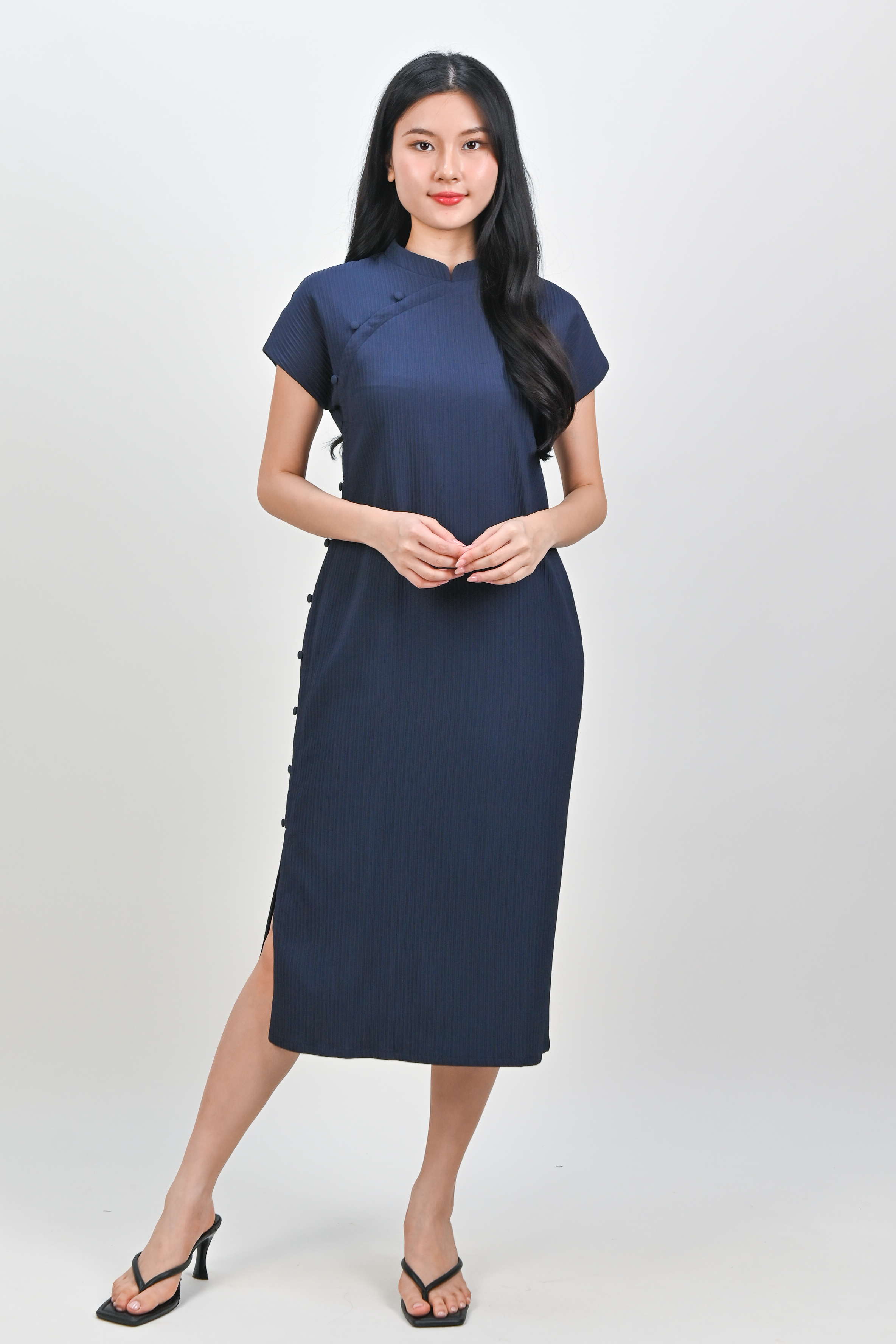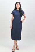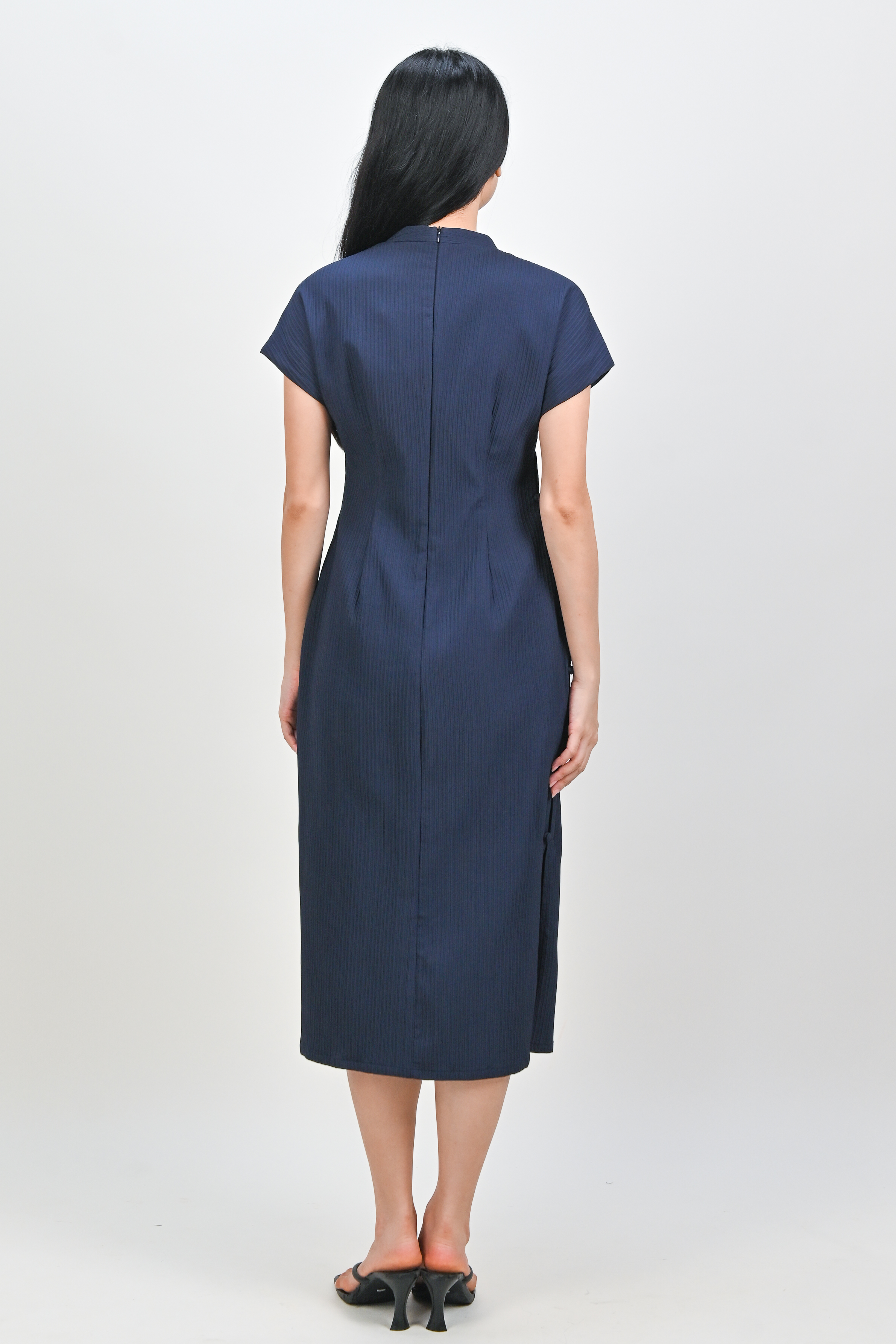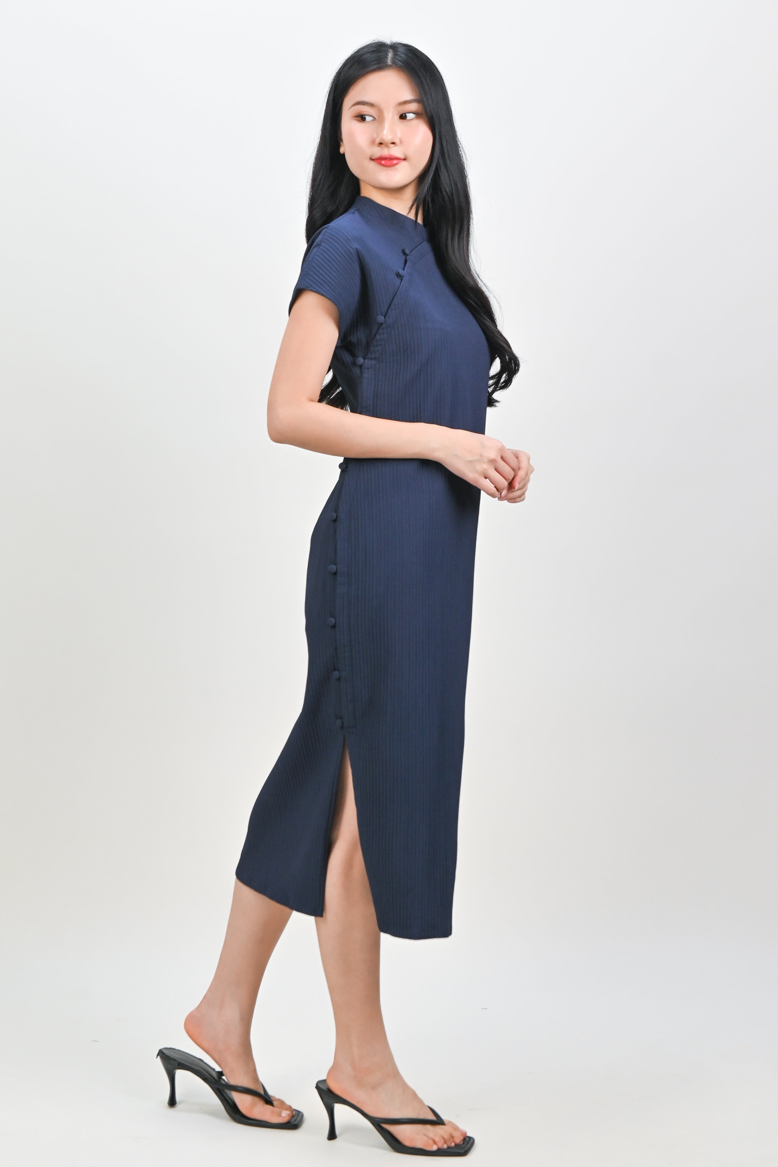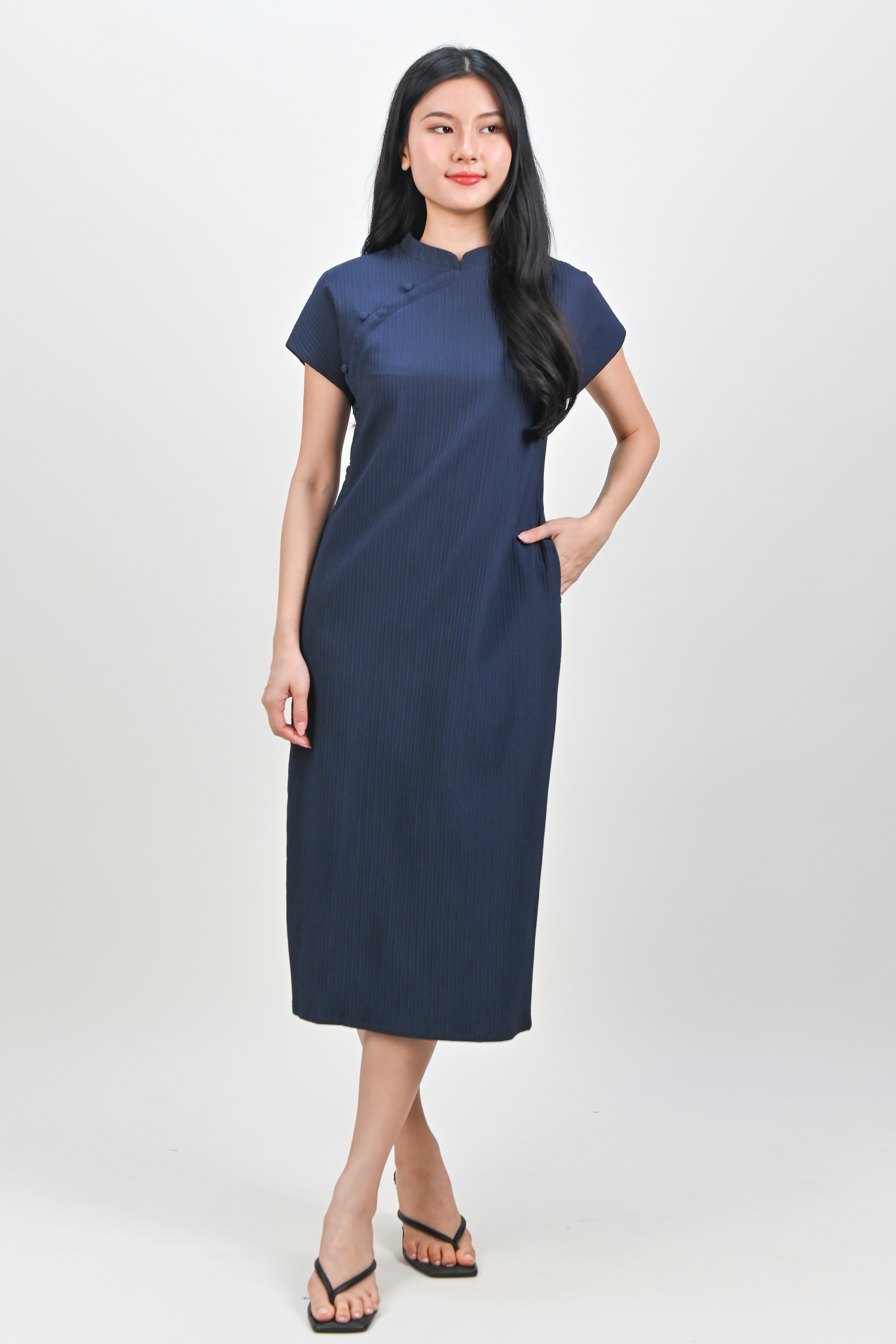 ANYA CHEONGSAM MIDI DRESS IN NAVY