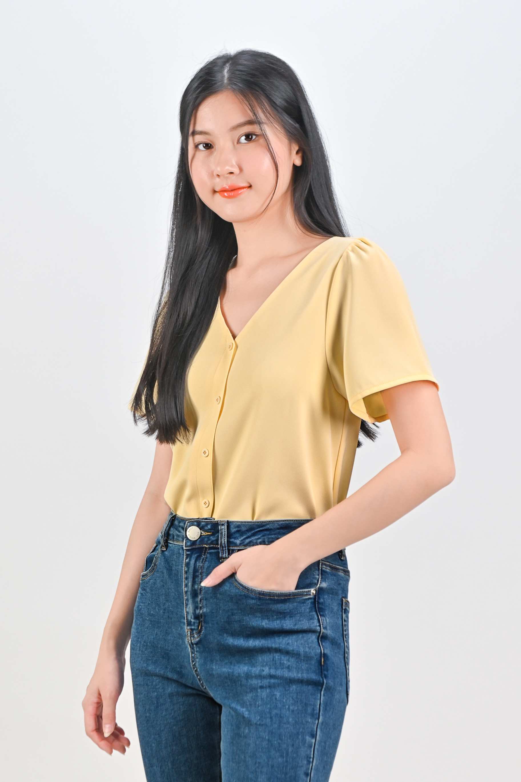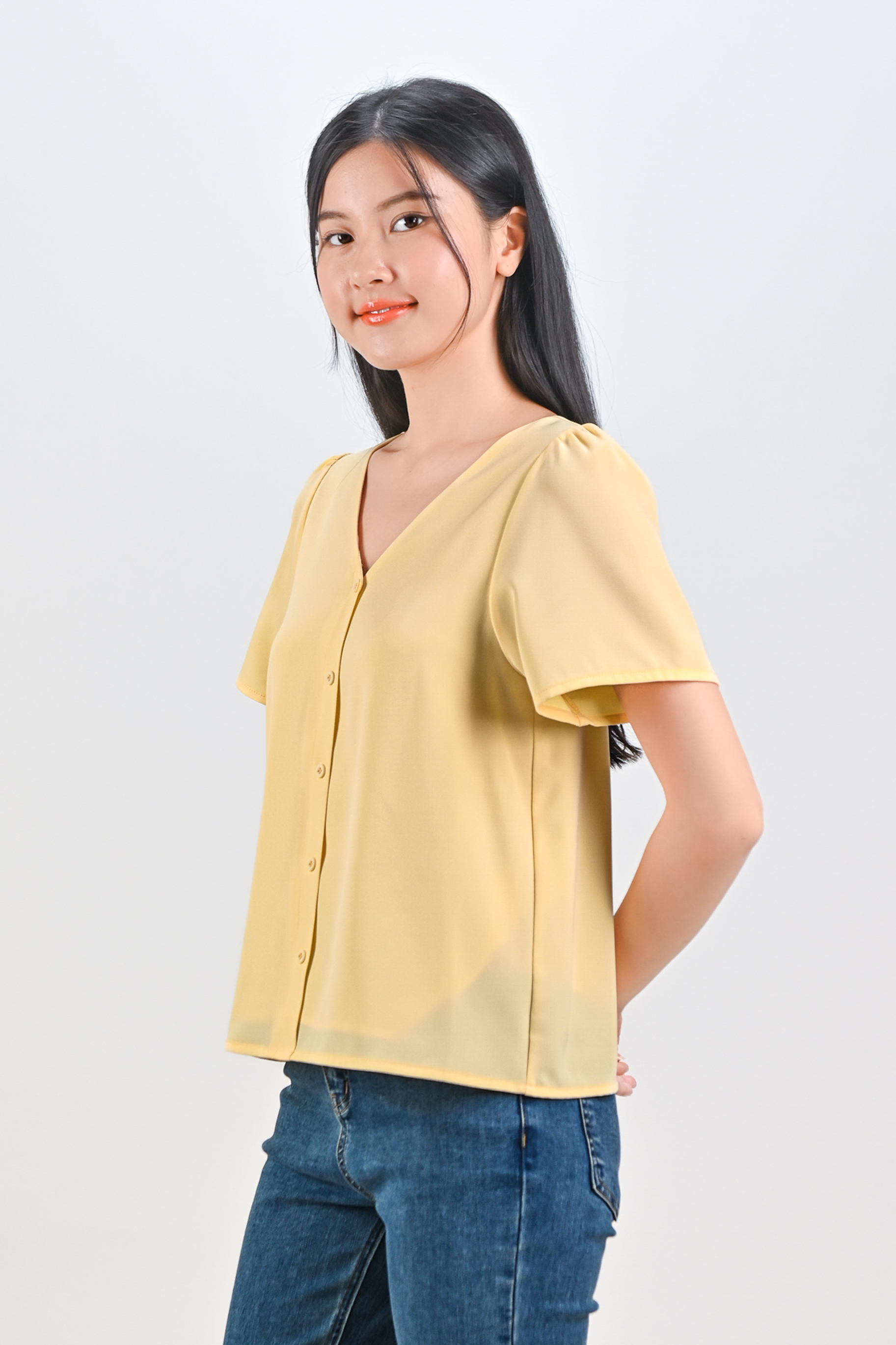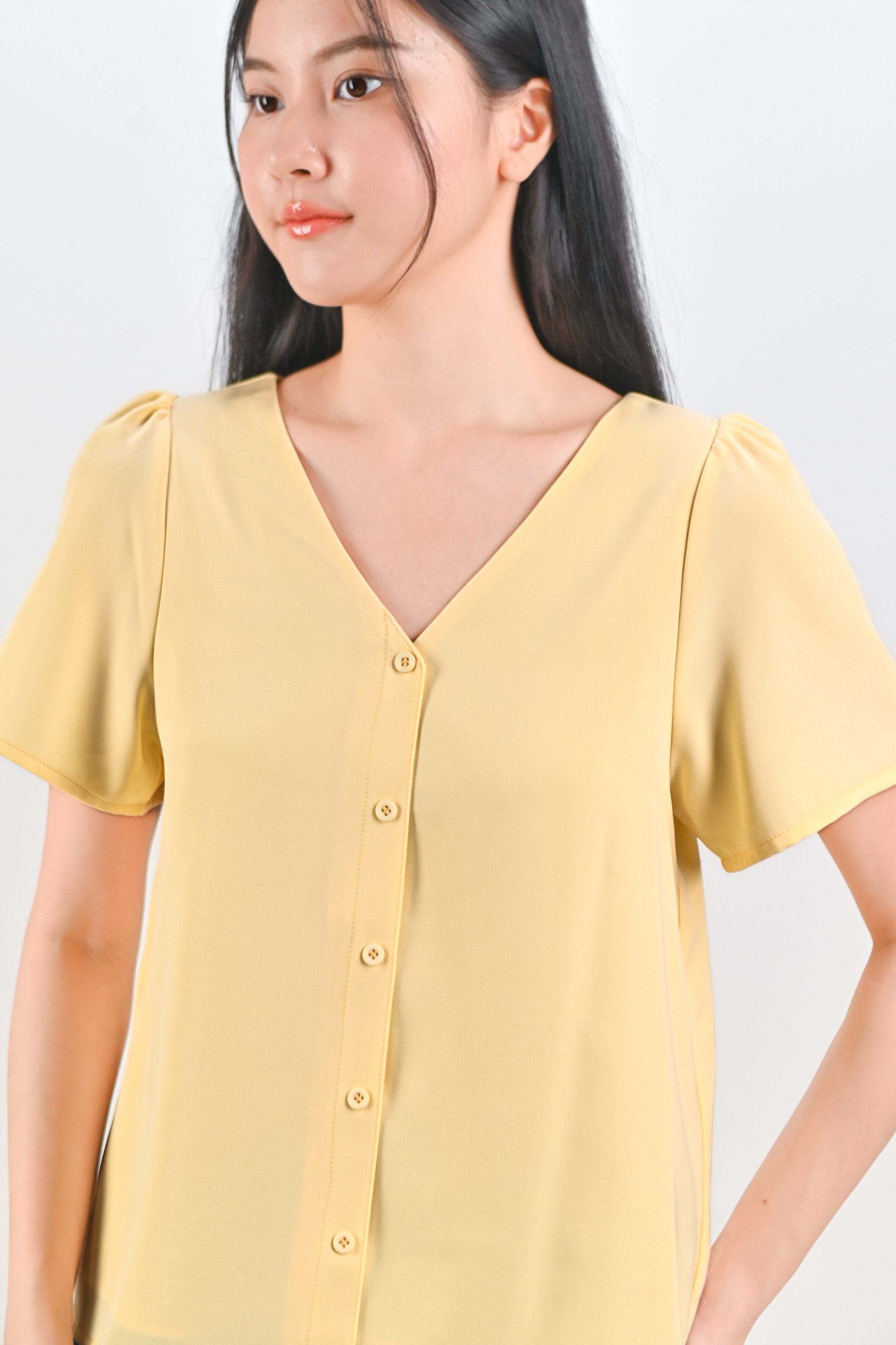 ASHA SLEEVED BUTTON TOP IN YELLOW