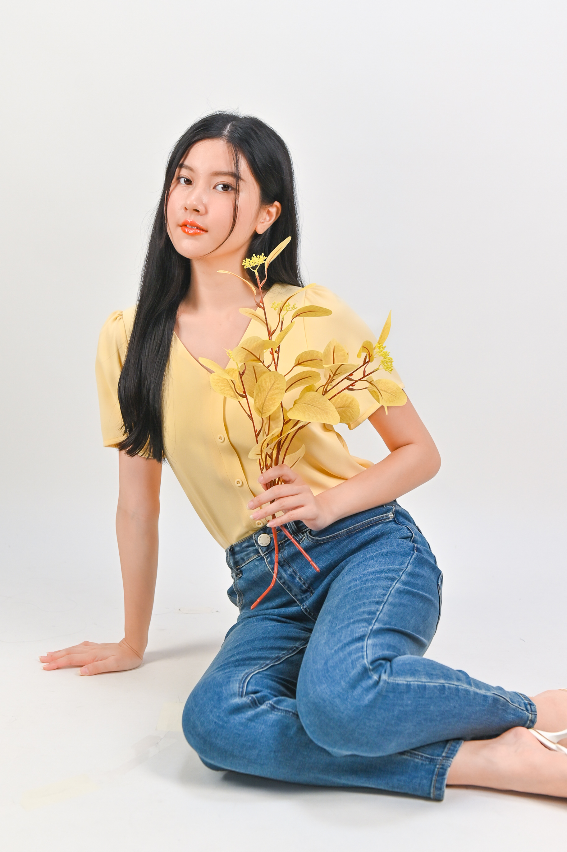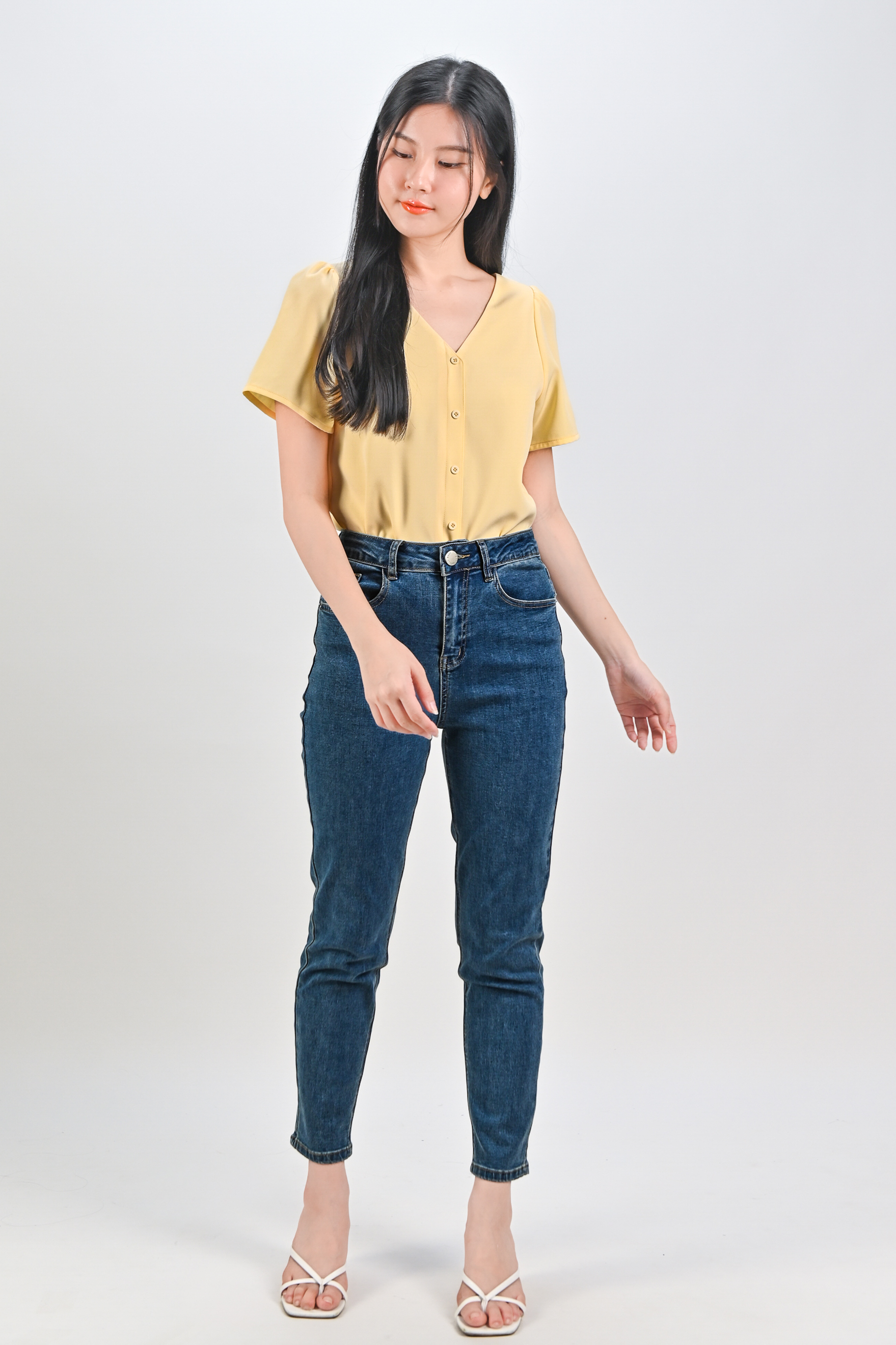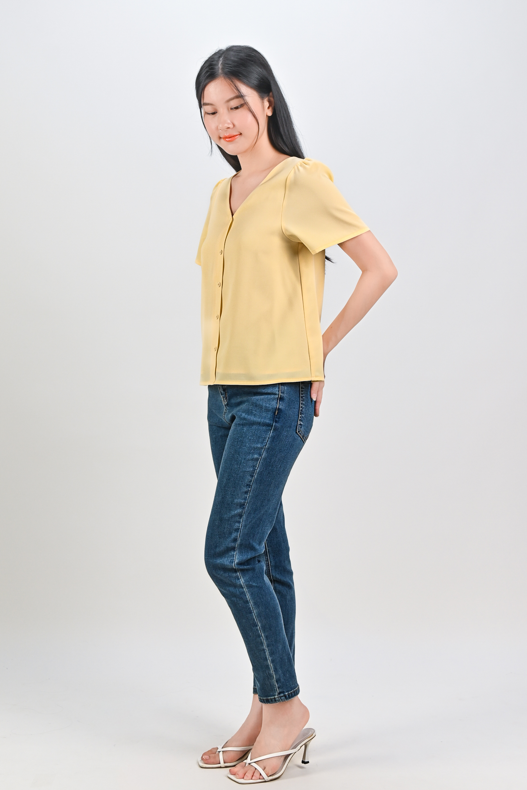ASHA SLEEVED BUTTON TOP IN YELLOW
