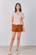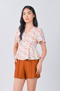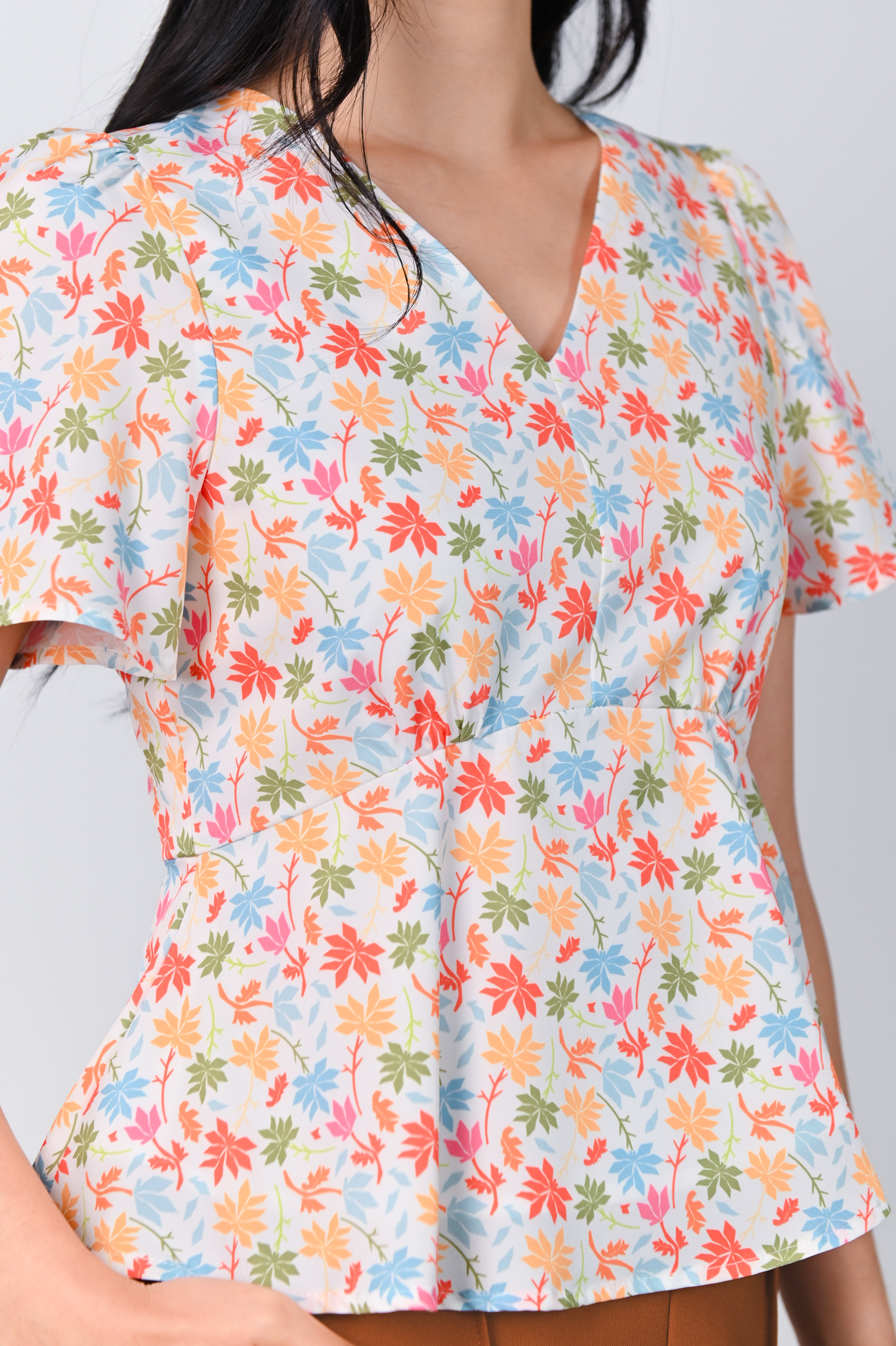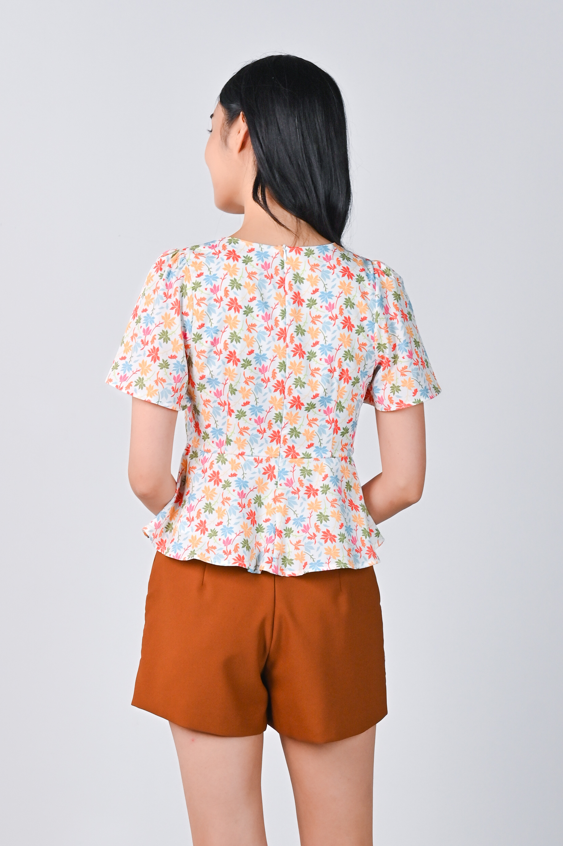 ATHOL LEAVES SLEEVED PEPLUM TOP