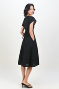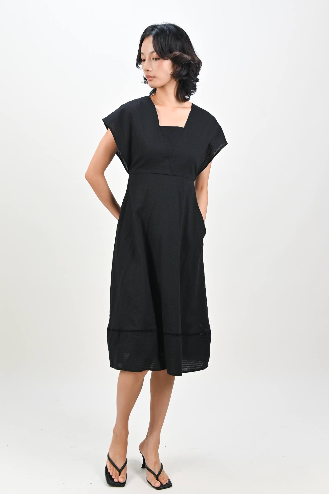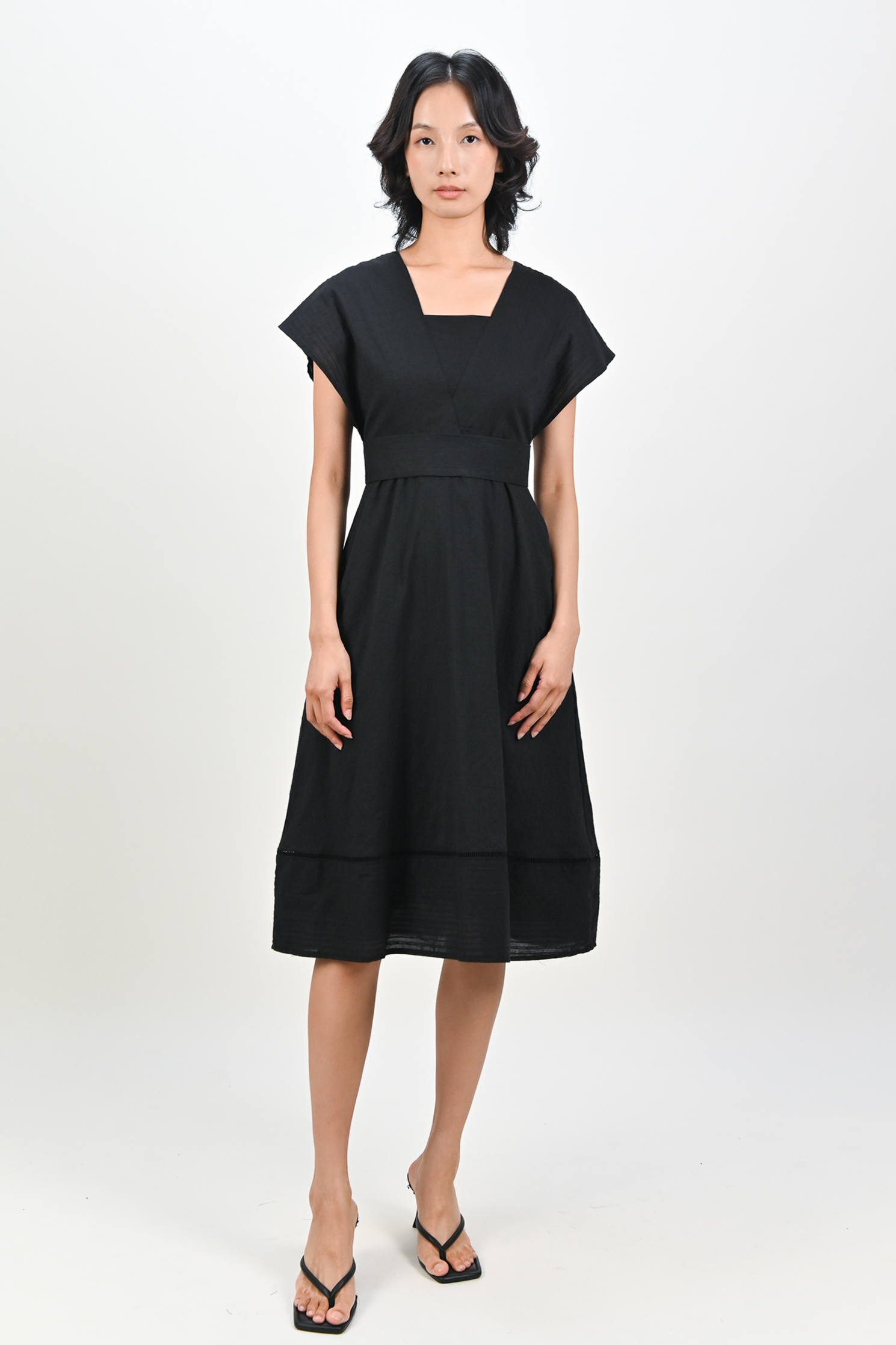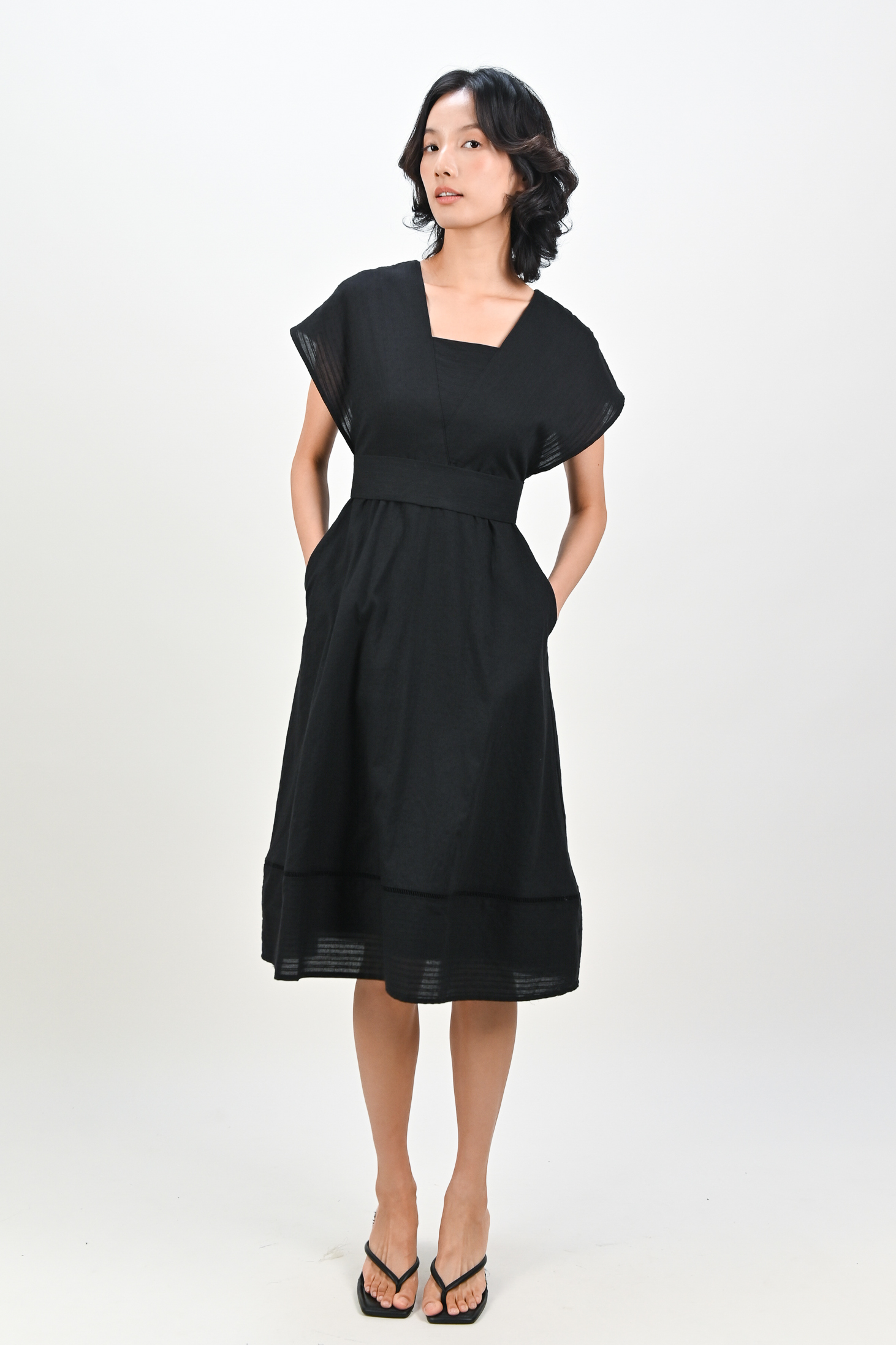 AURAYA KIMONO SLEEVED MIDI DRESS IN BLACK