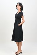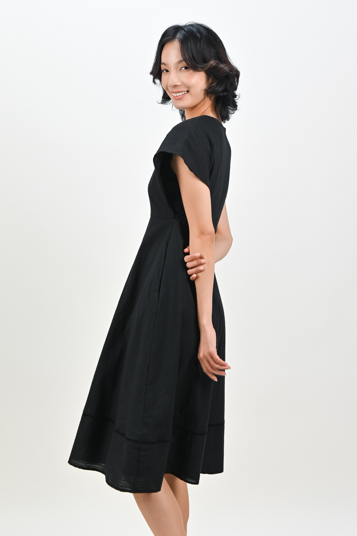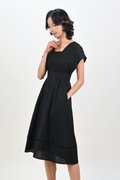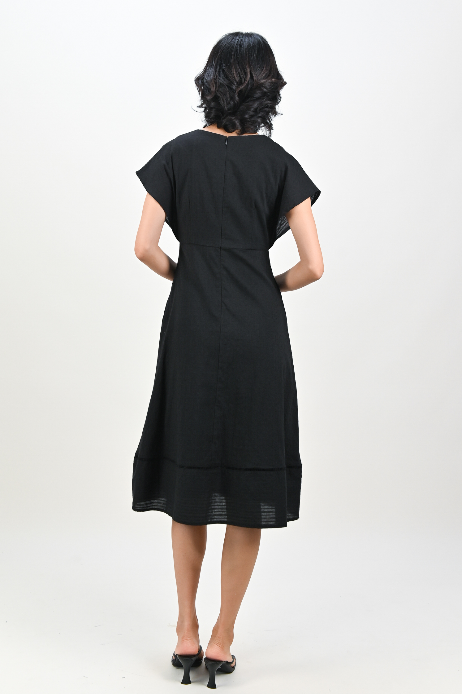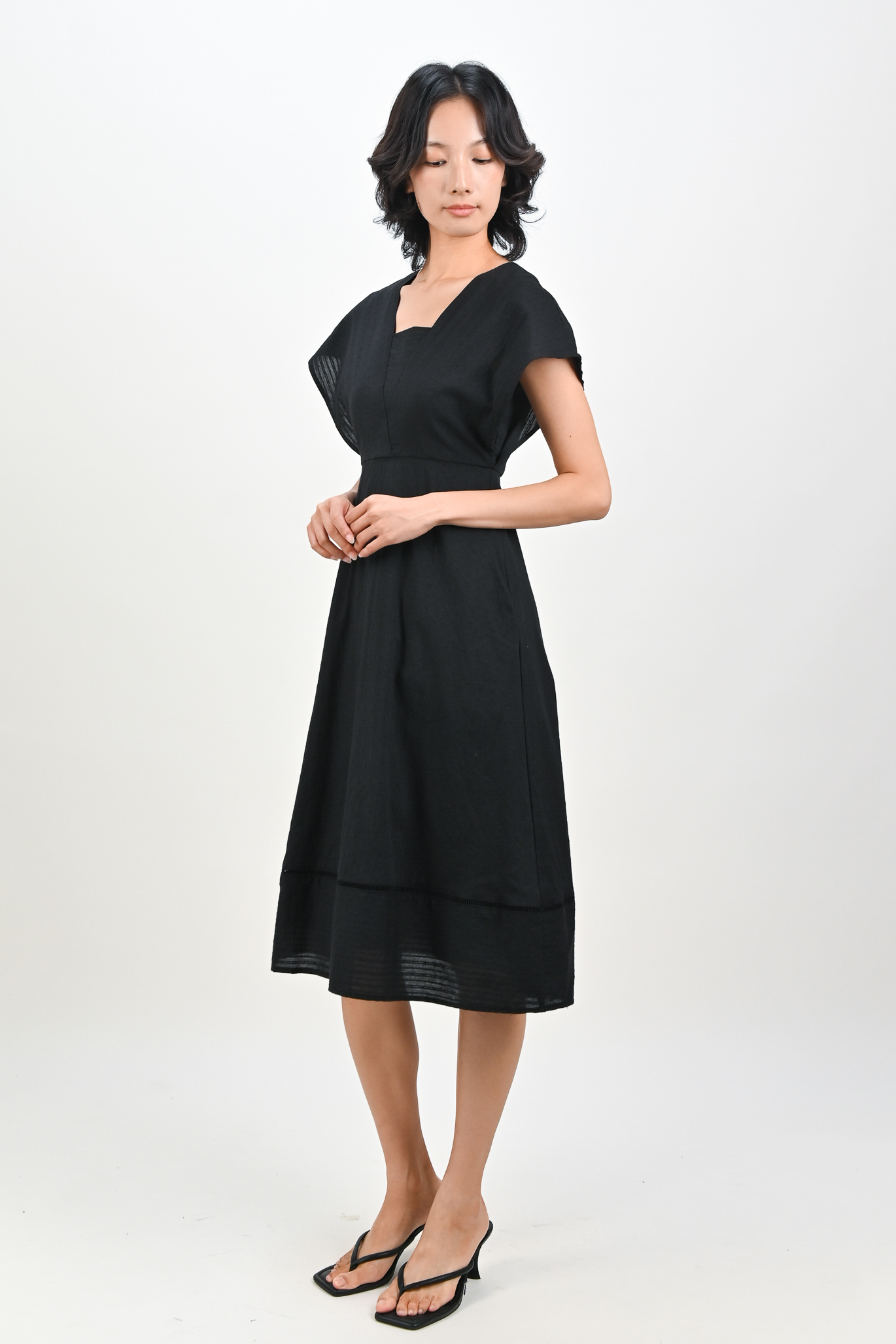 AURAYA KIMONO SLEEVED MIDI DRESS IN BLACK