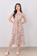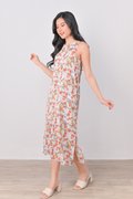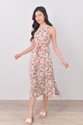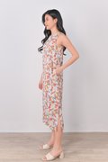 AVERYNA KHAKI FLORAL SIDE-SLIT MIDI DRESS