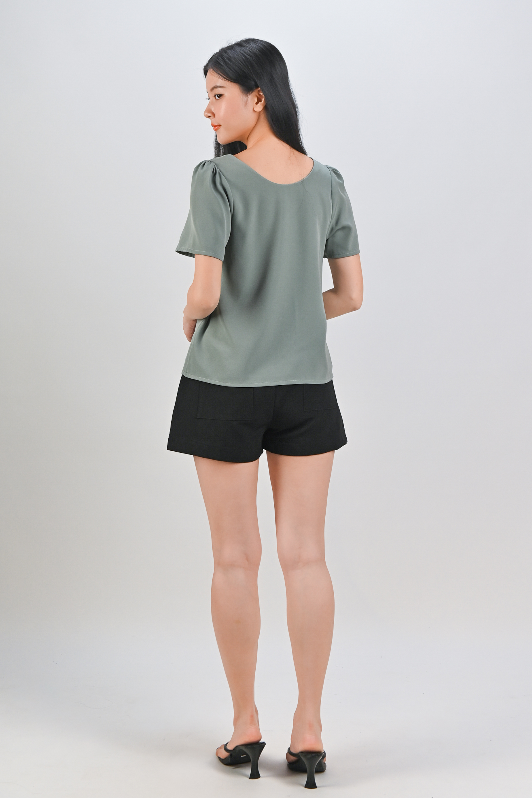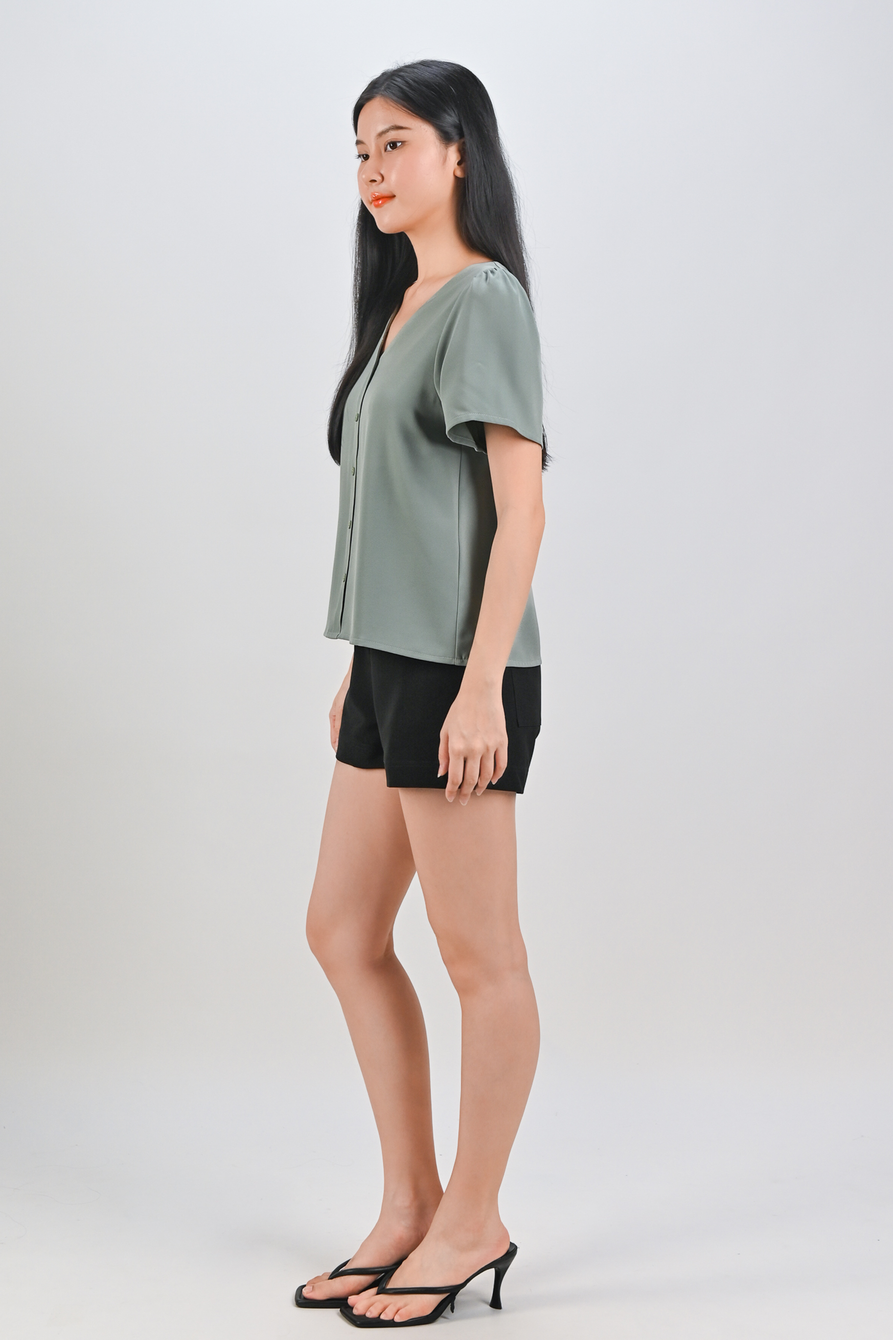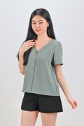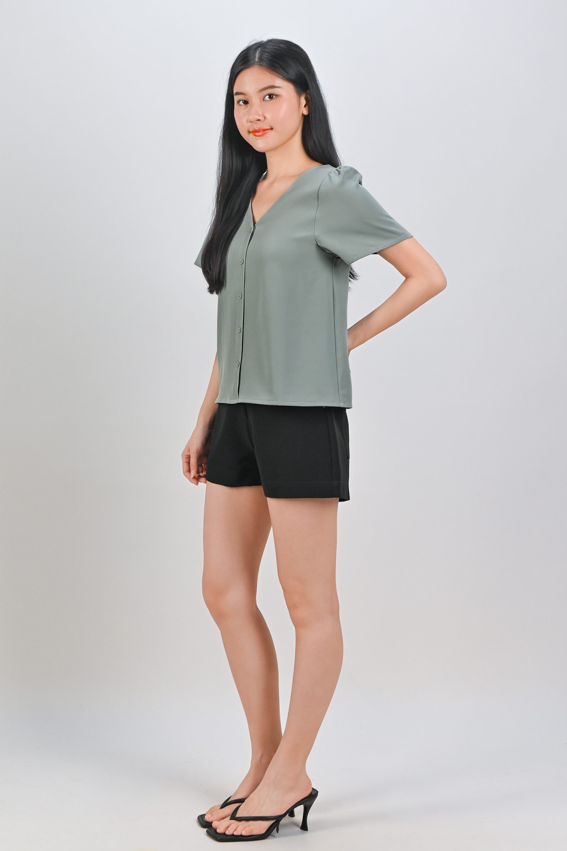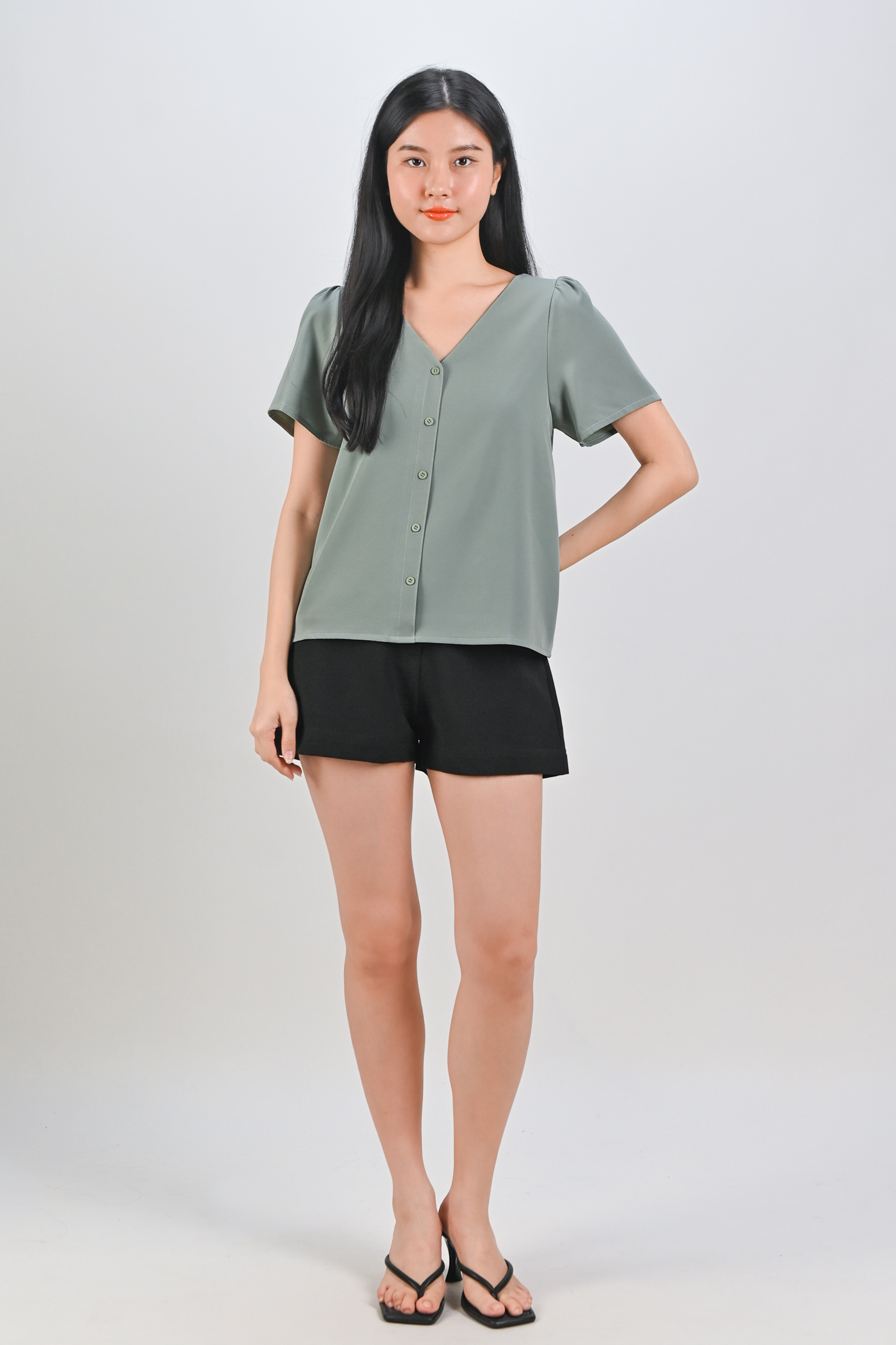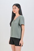 *BACKORDER* ASHA SLEEVED BUTTON TOP IN LIGHT GREEN