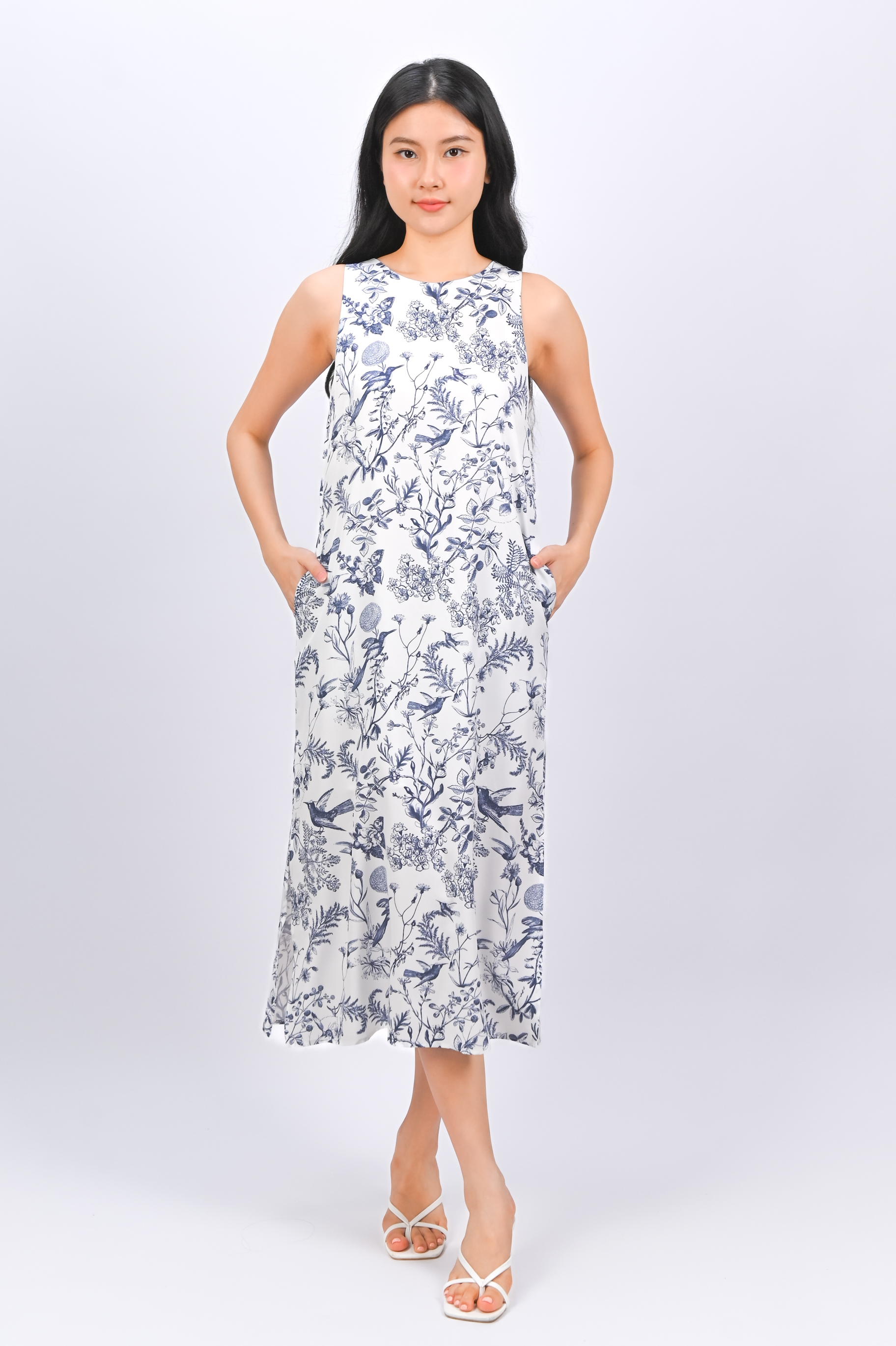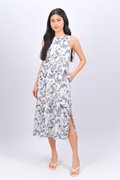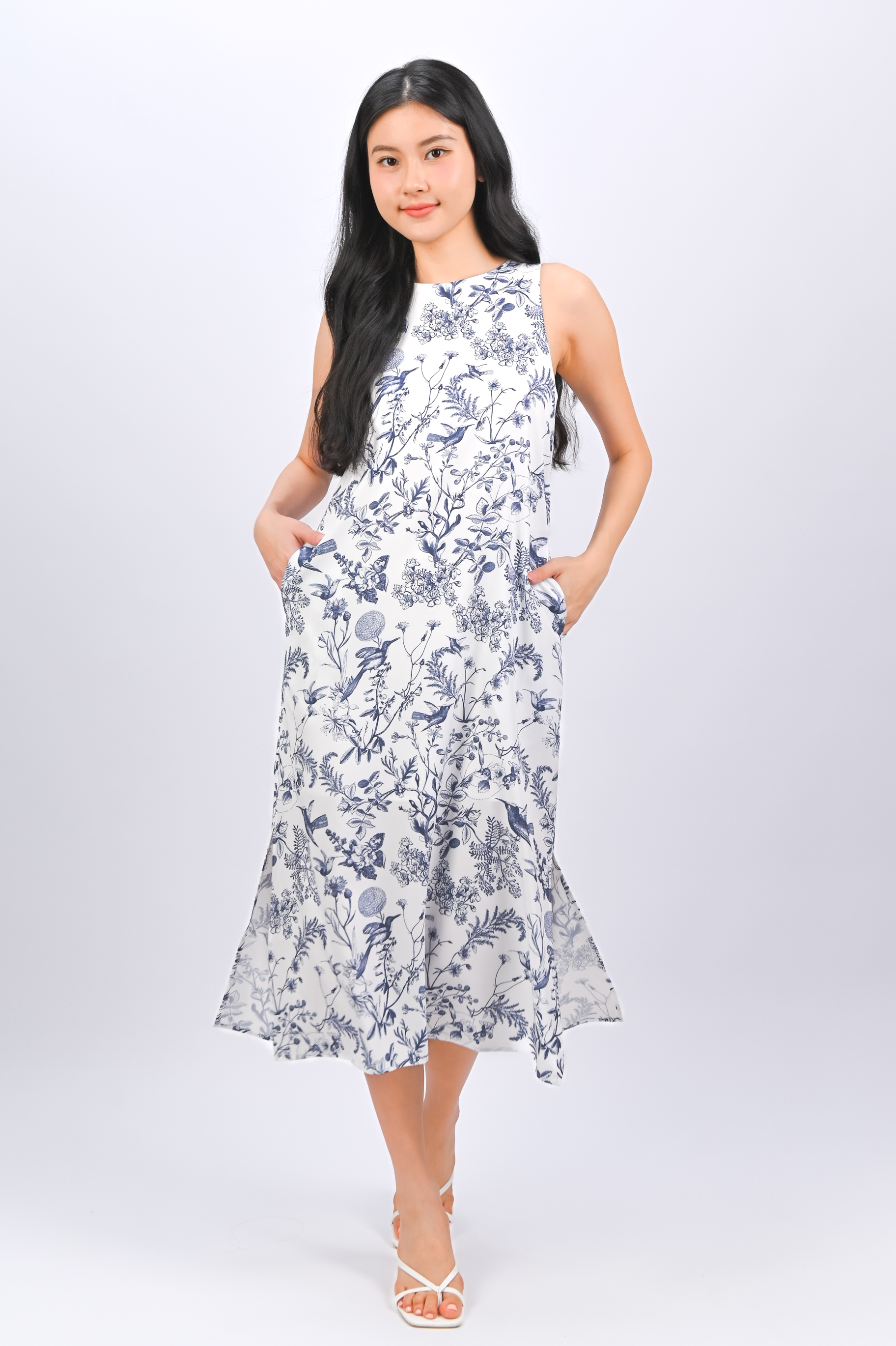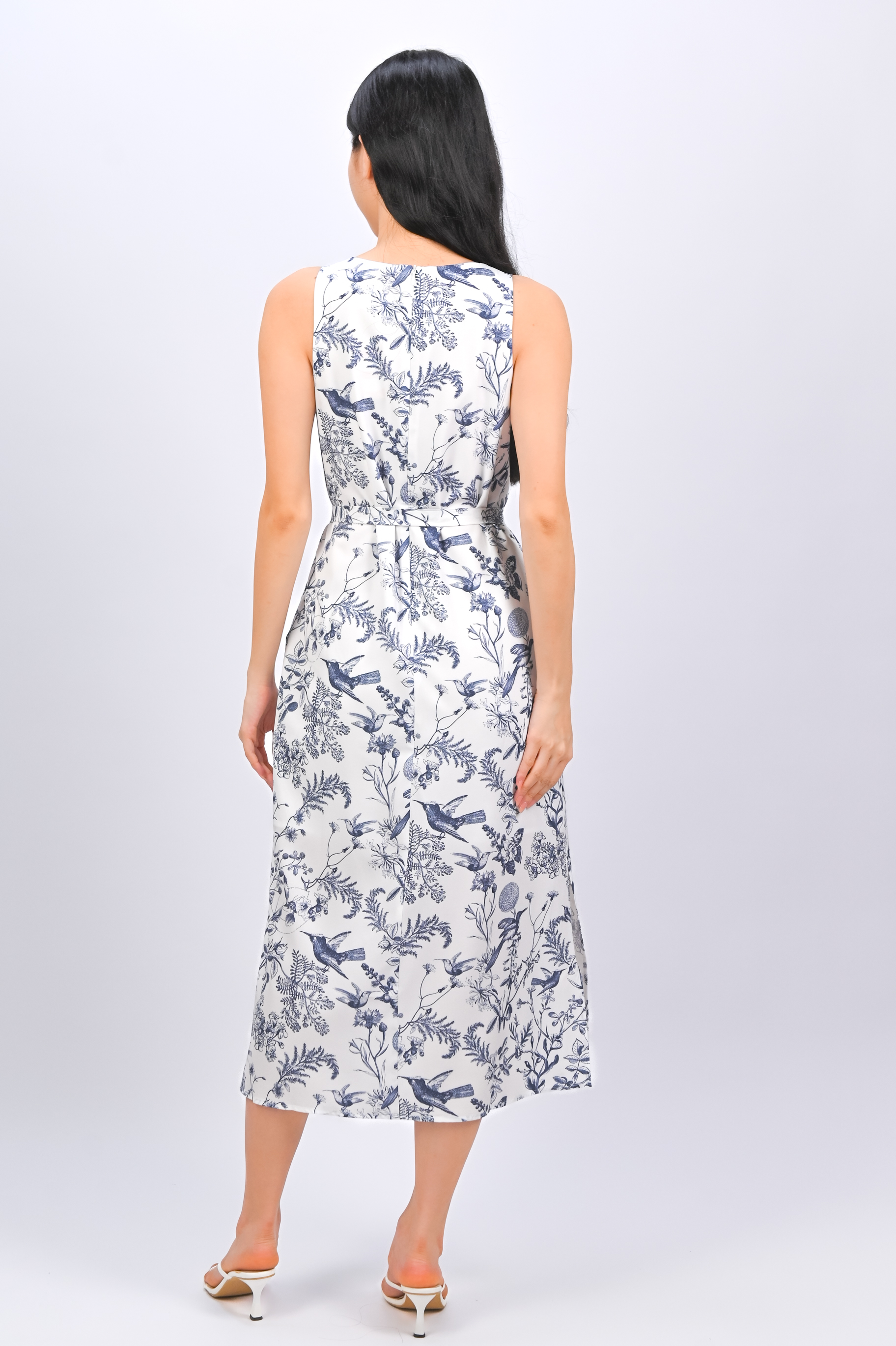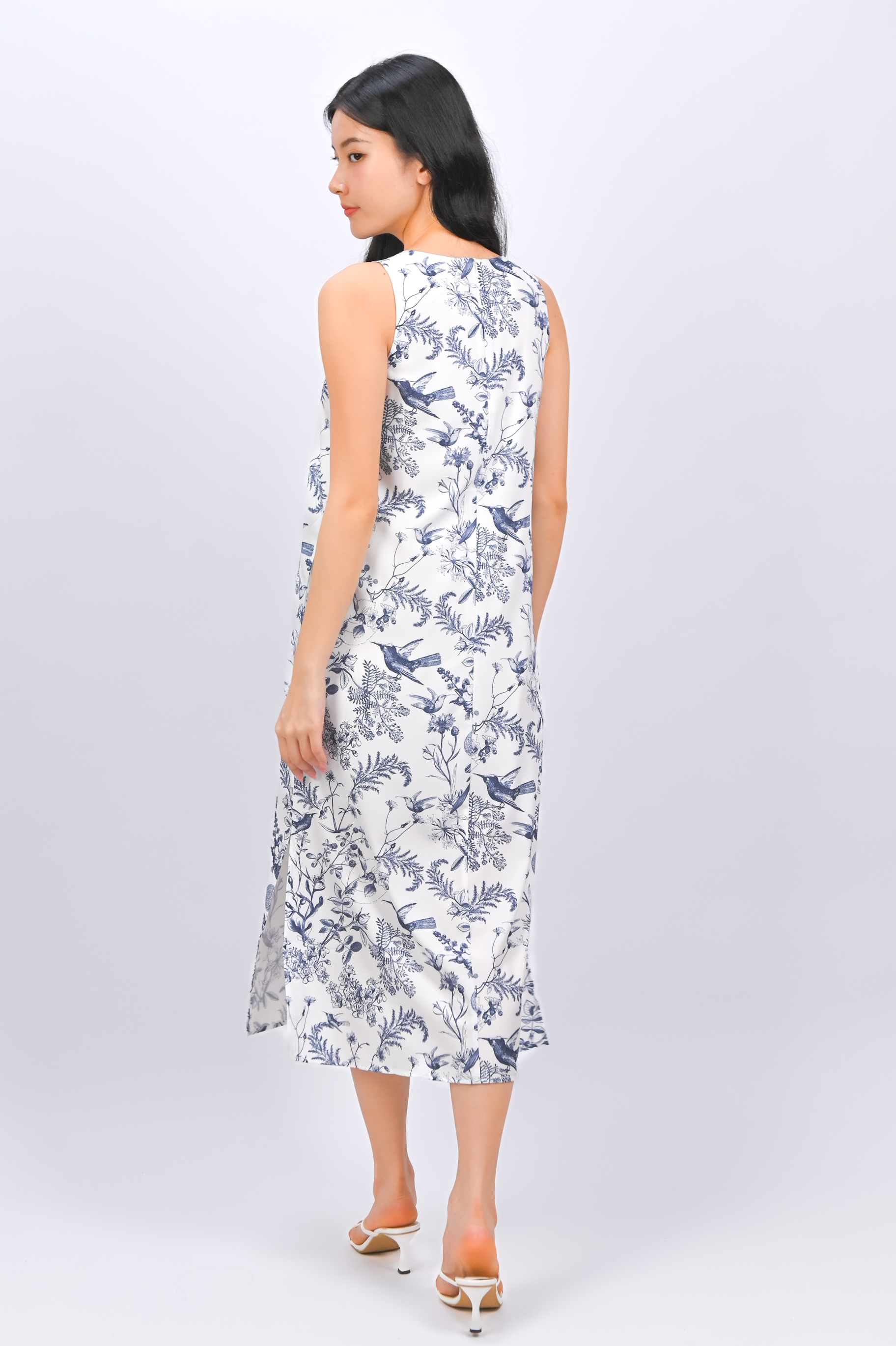 *BACKORDER* NAVY HUMMINGBIRD NEW SIDE-SLIT MIDI DRESS
