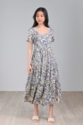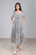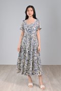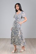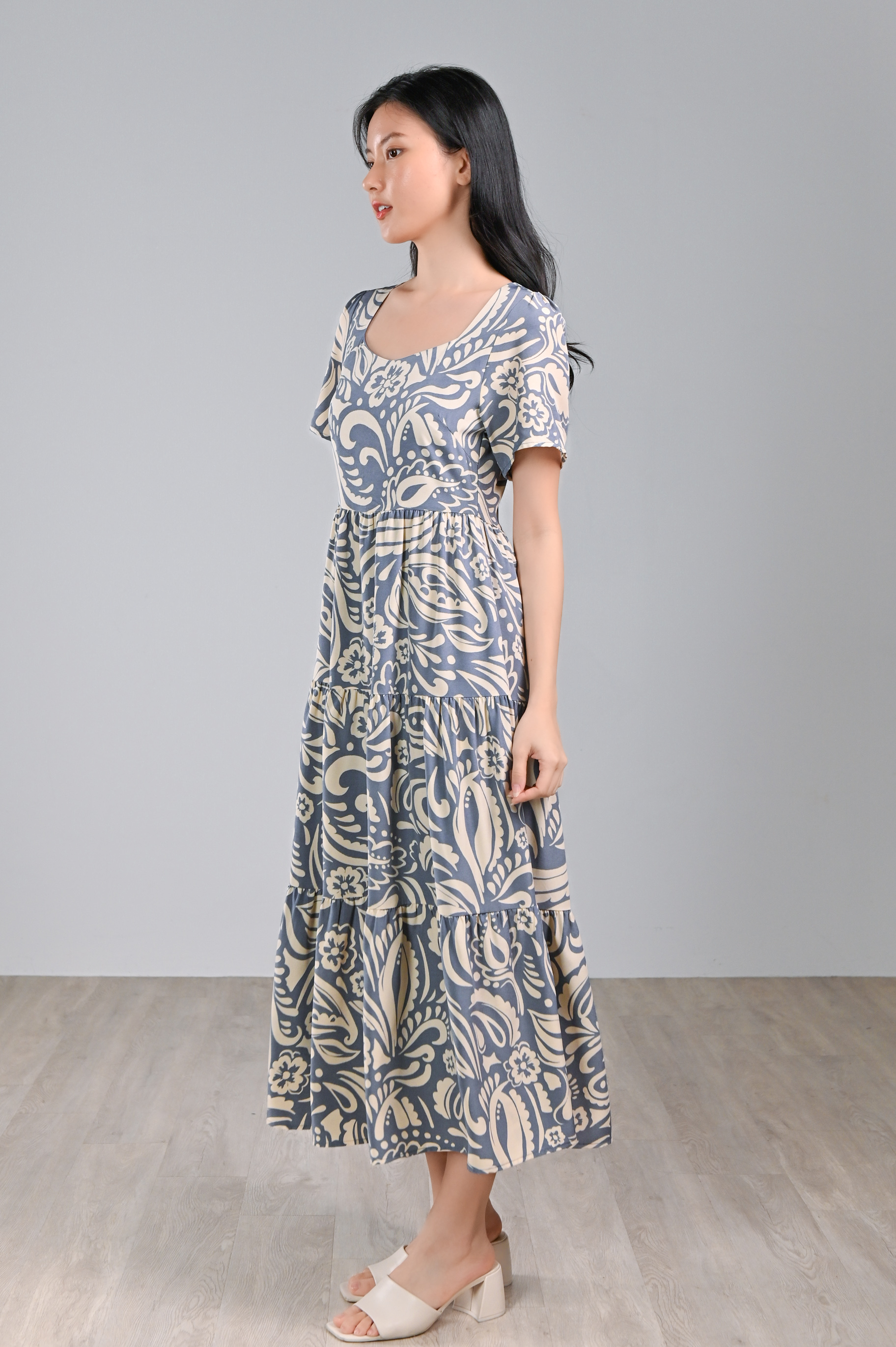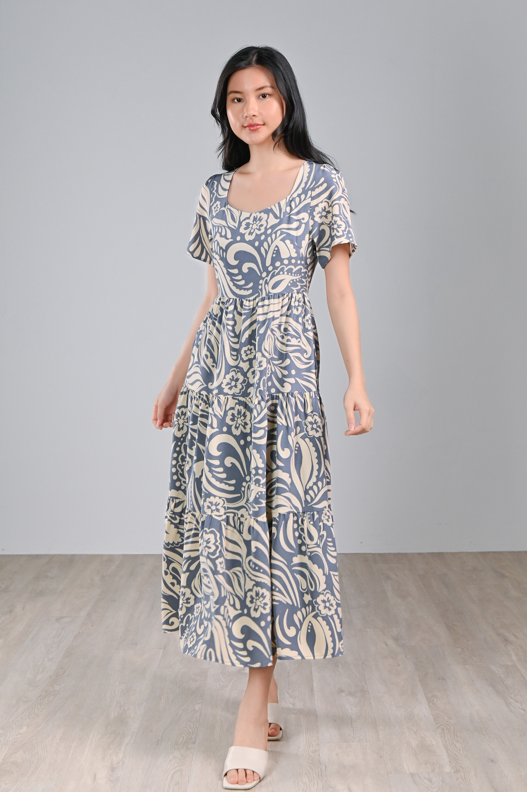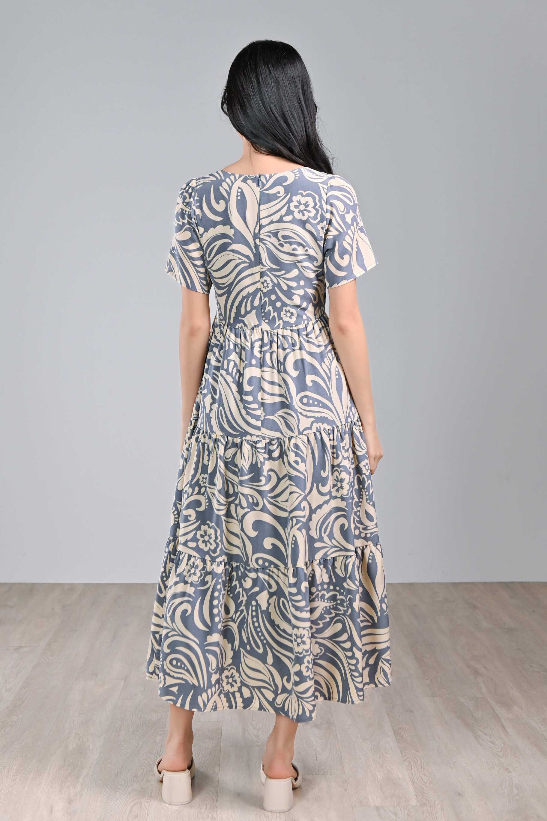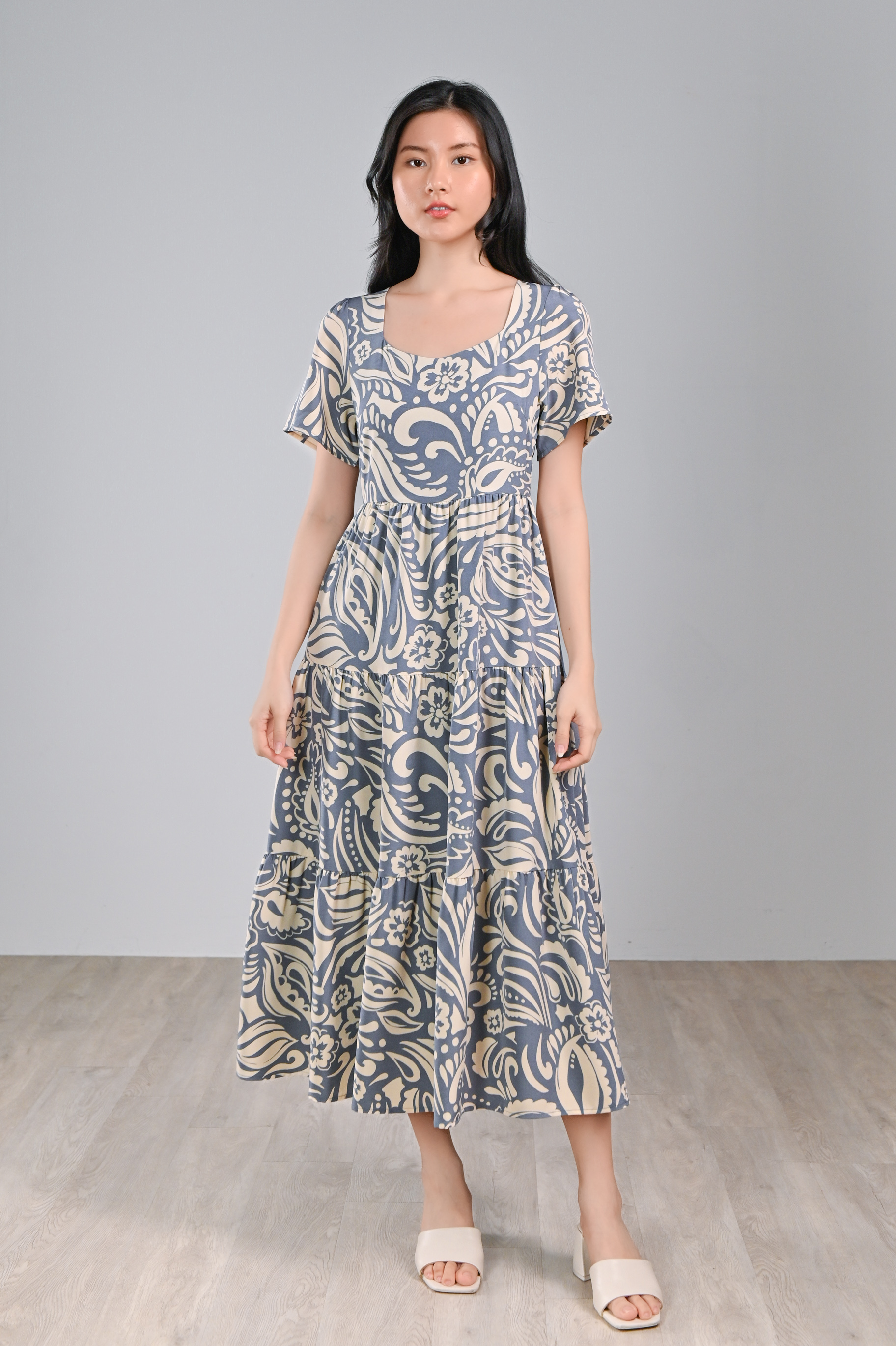 BALMANY ABSTRACT TIERED MIDAXI DRESS