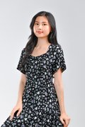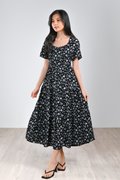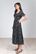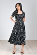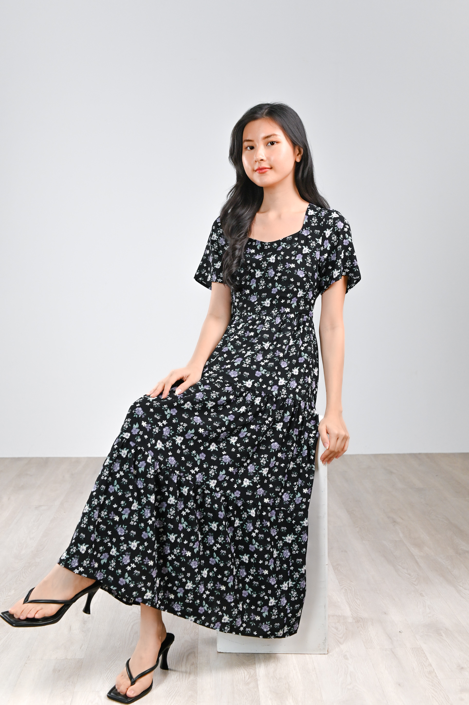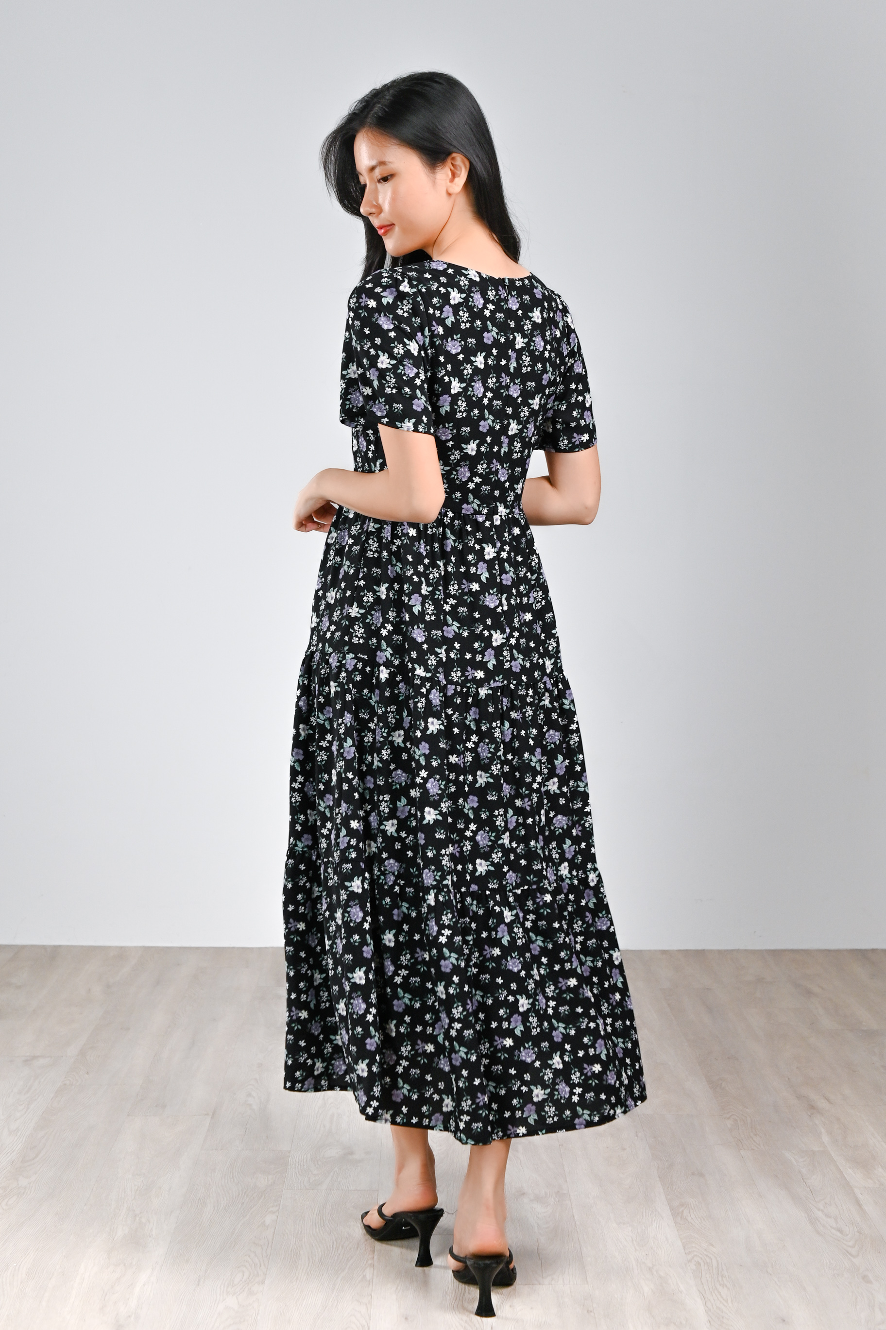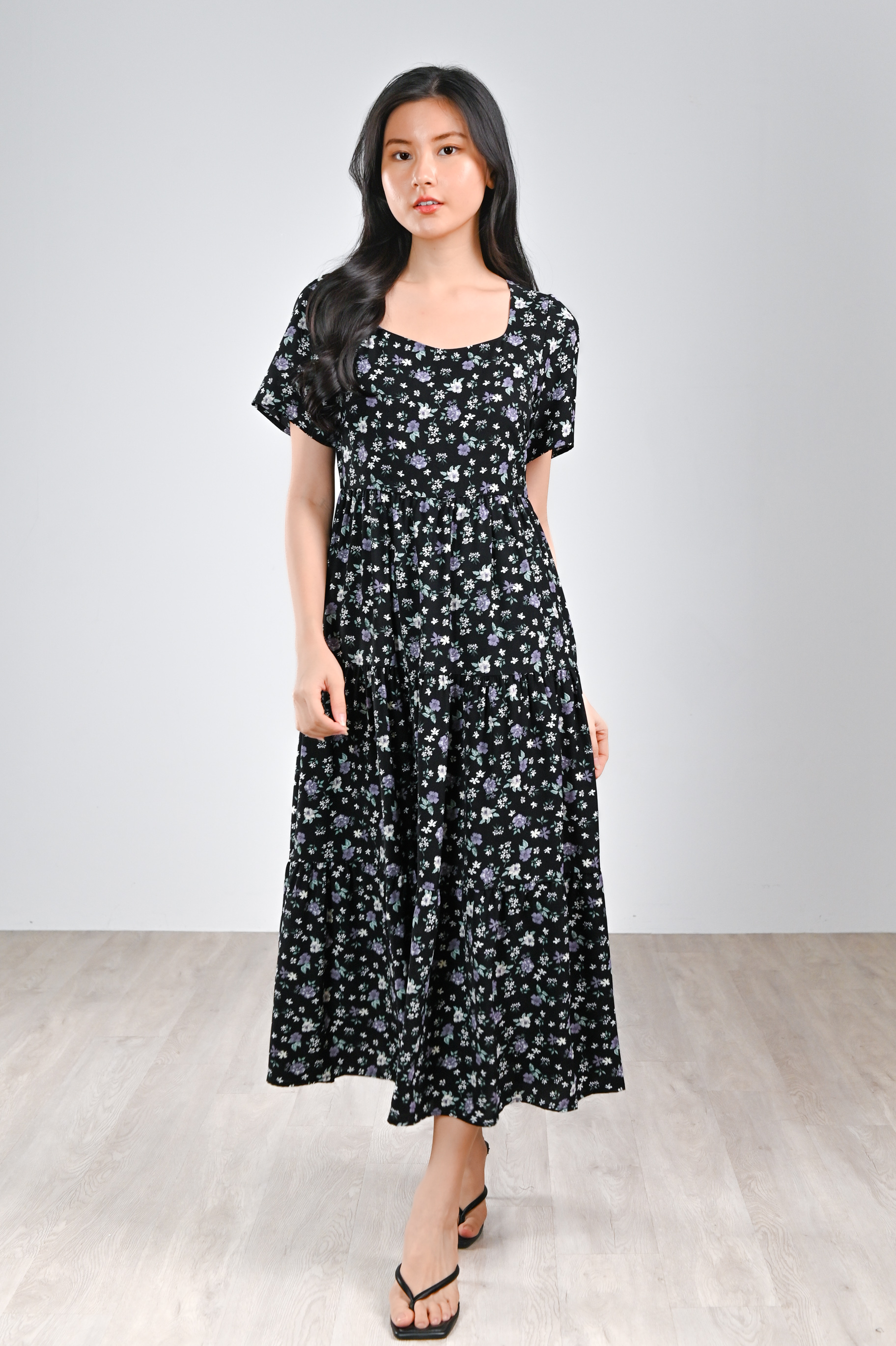 BALMIN BLACK FLORAL TIERED MIDAXI DRESS