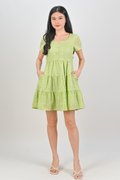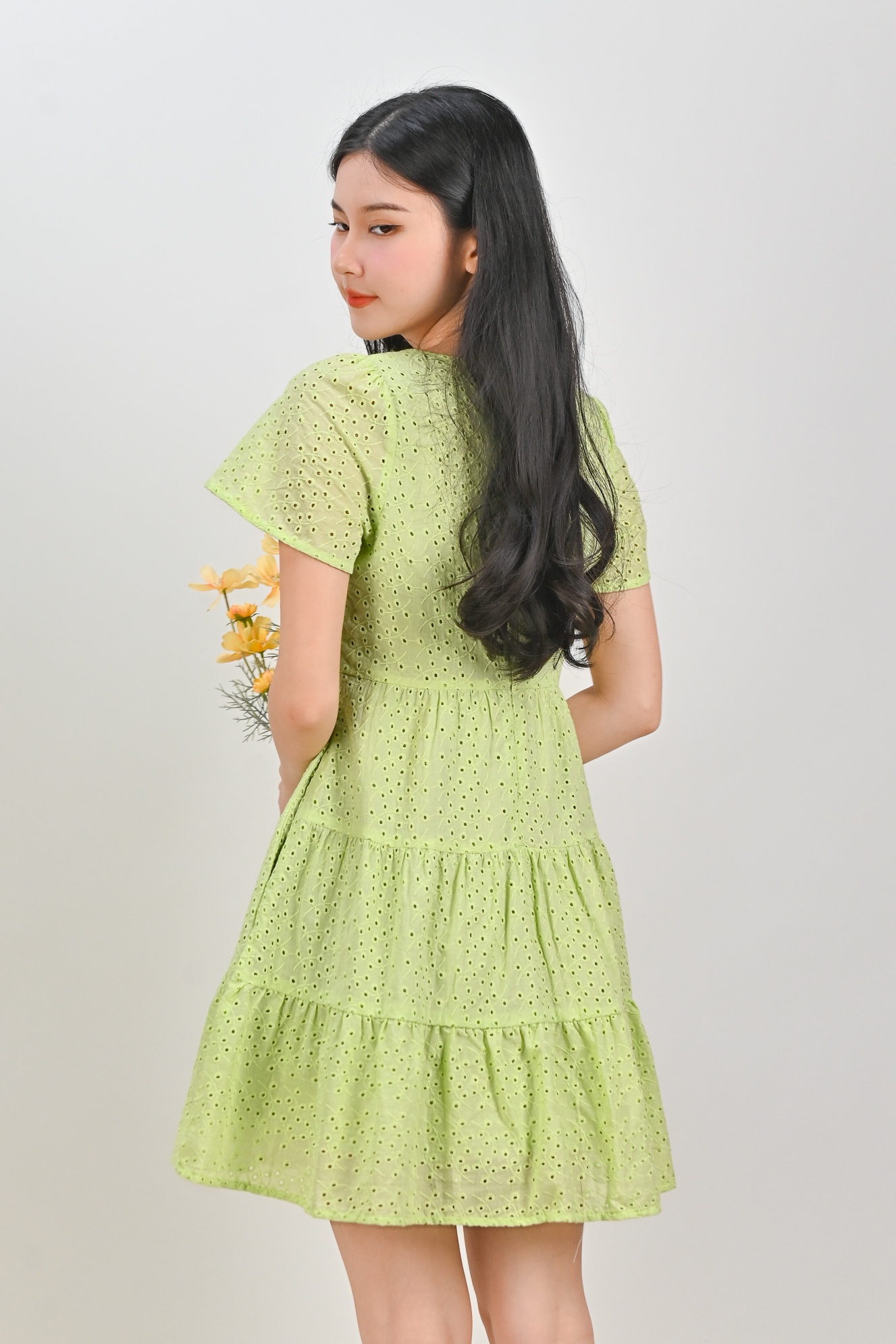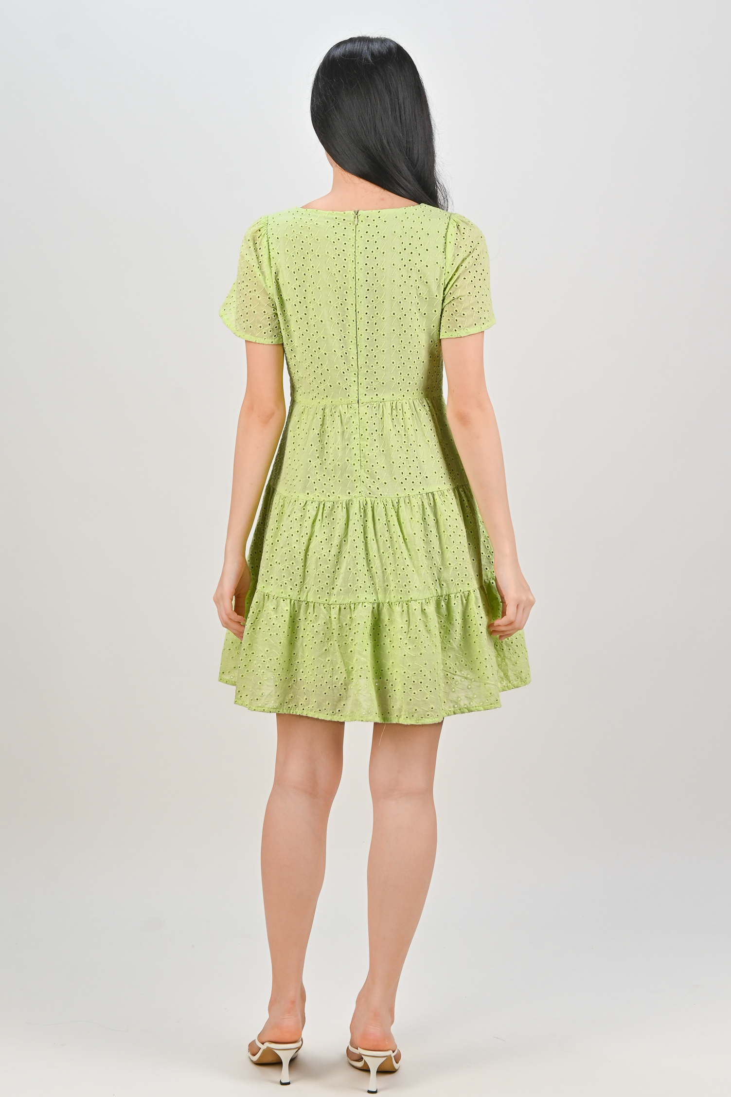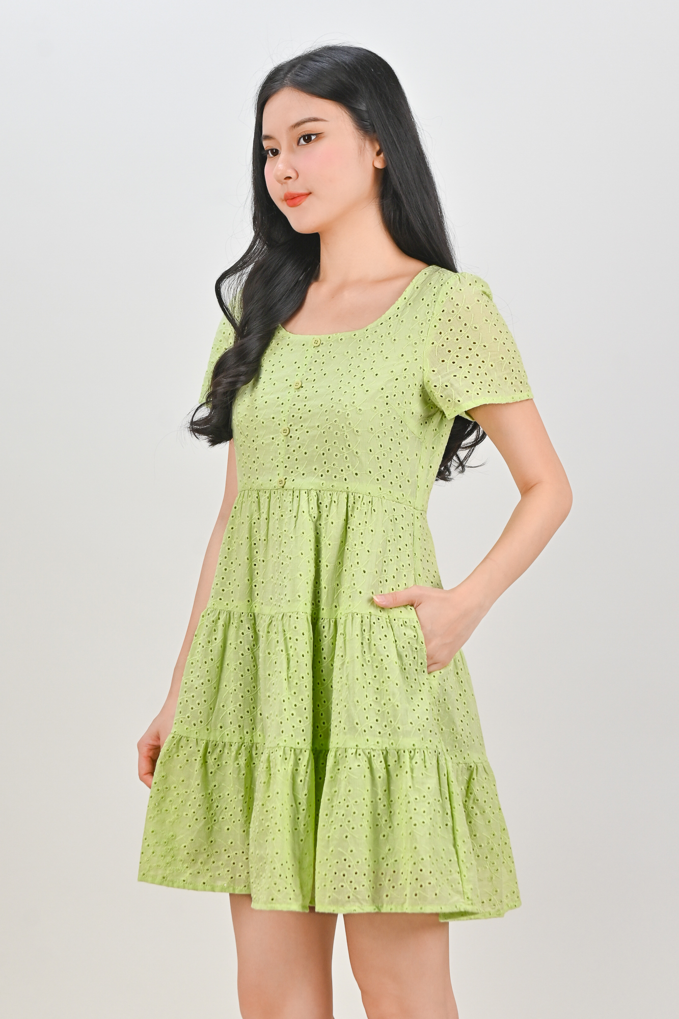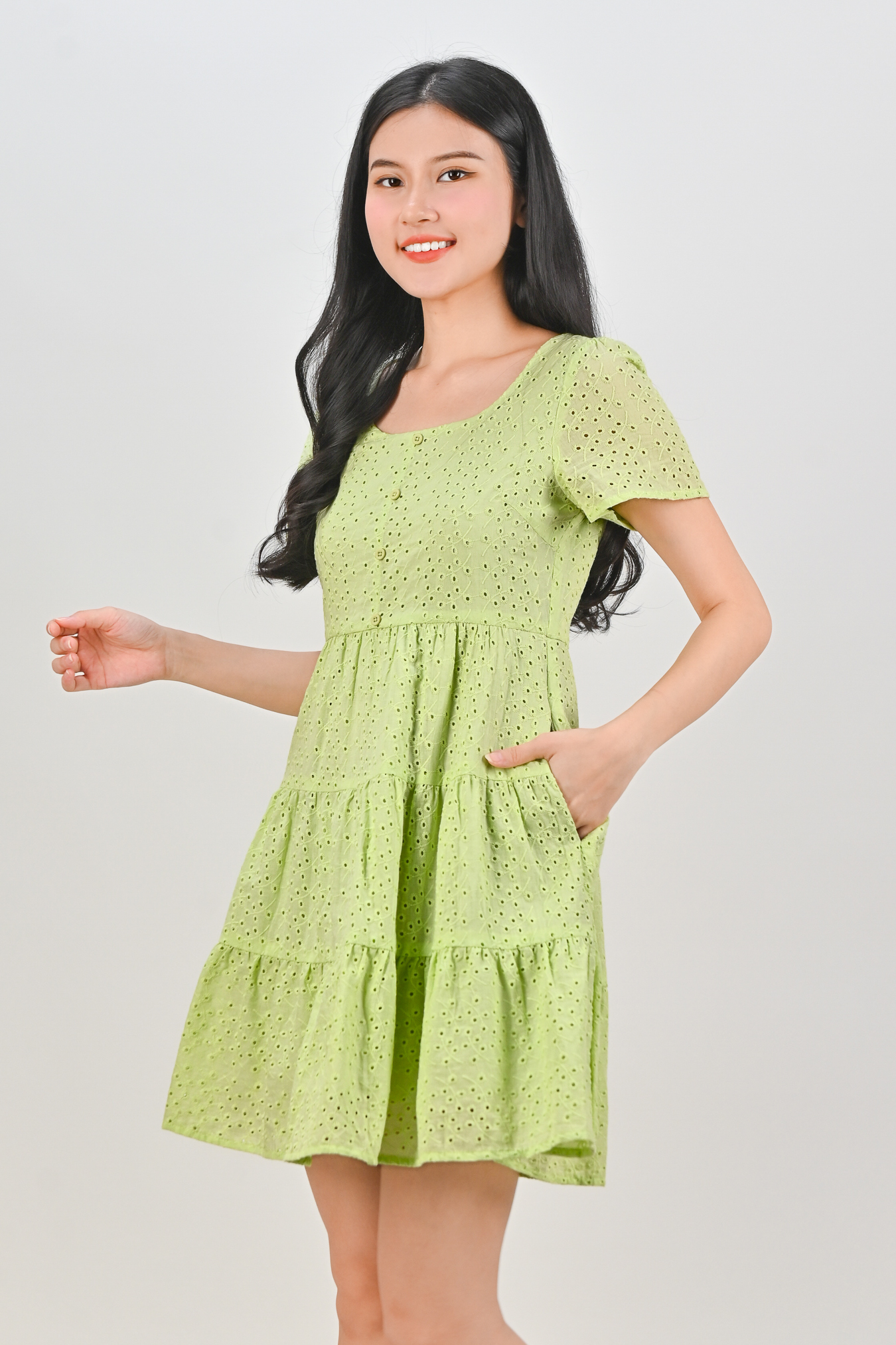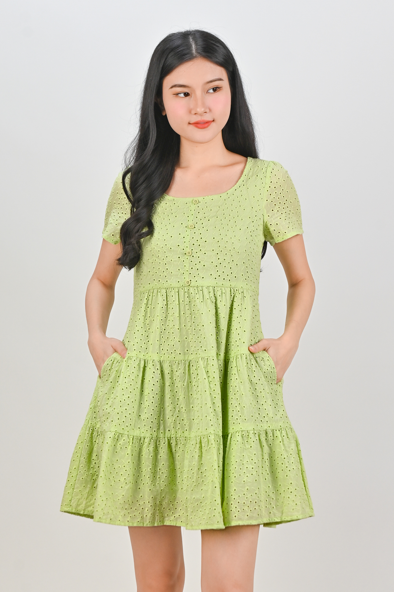 BAMBI EYELET SCOOP-NECK BABYDOLL DRESS IN GREEN