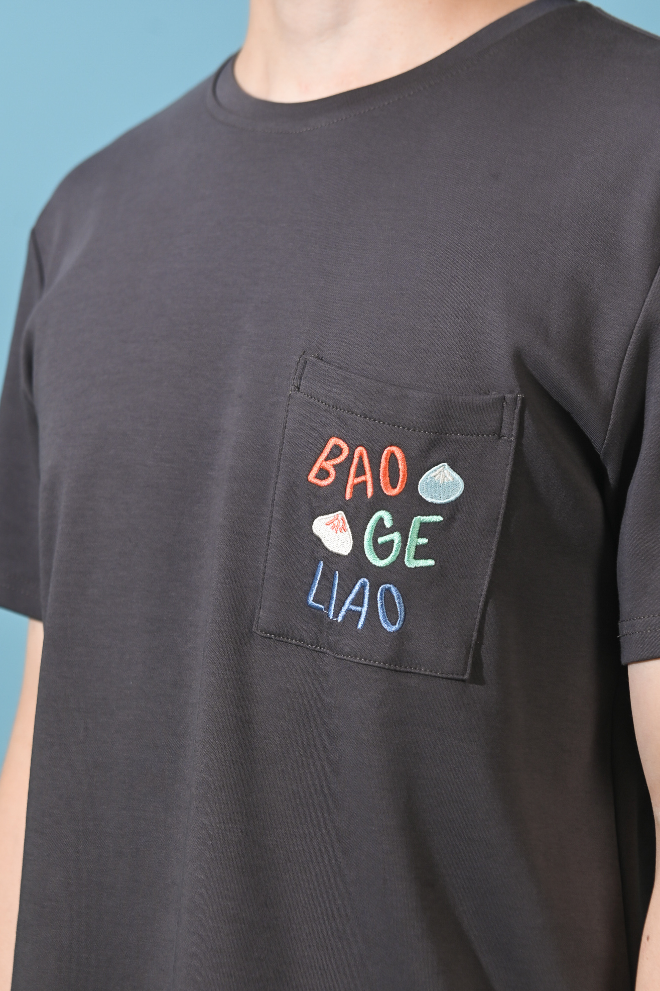 - Functional single chest pocket with embroidery