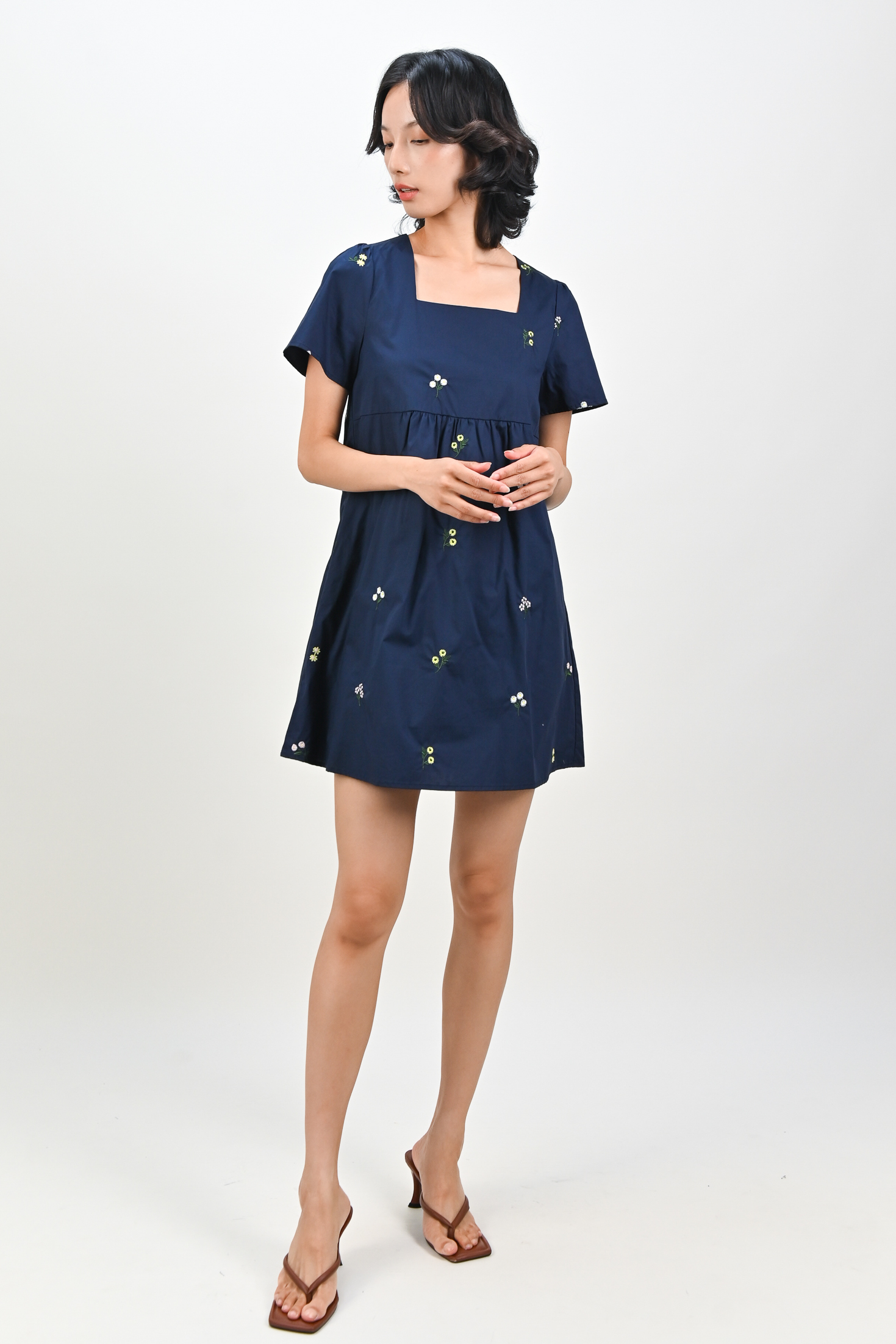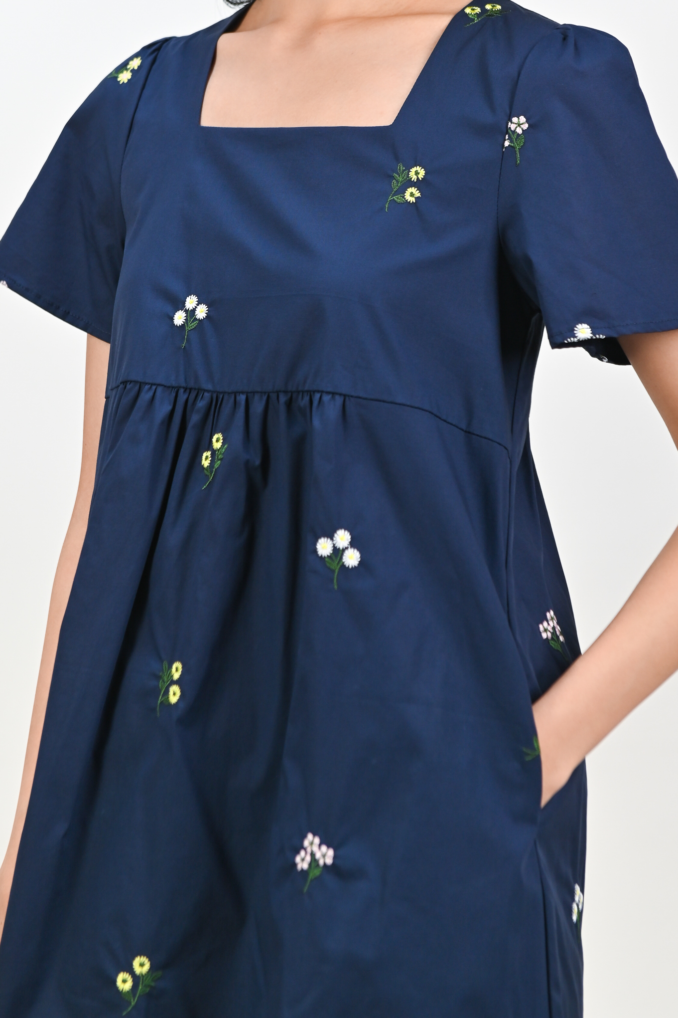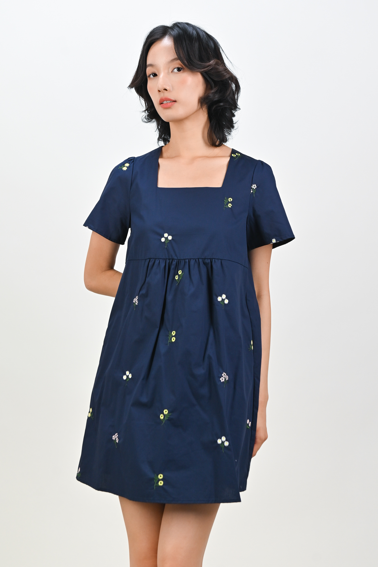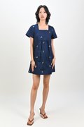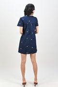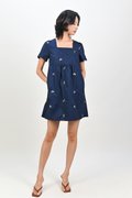 BELLARA NAVY EMB. FLOWERS BABYDOLL DRESS