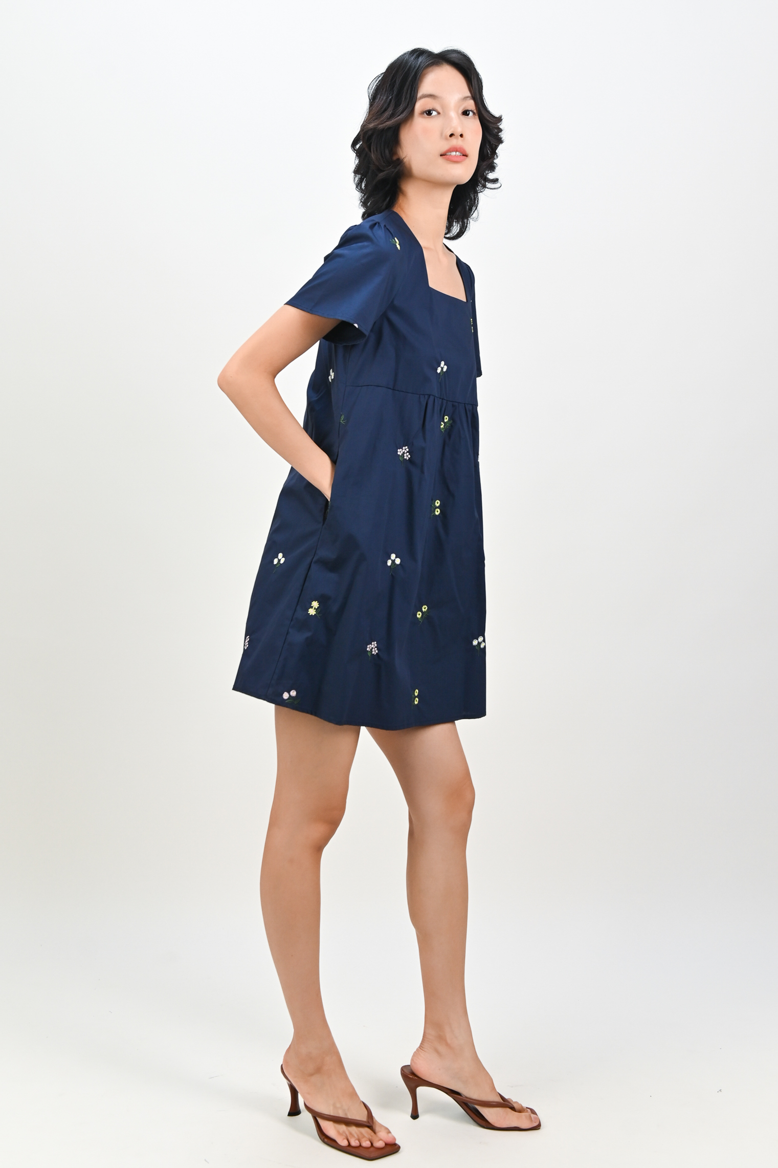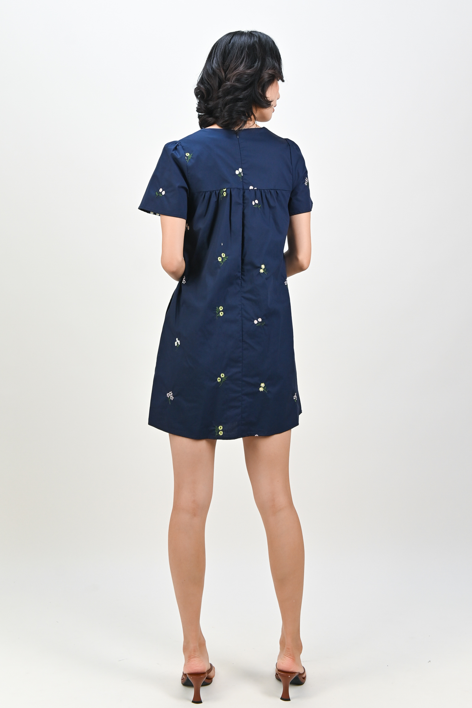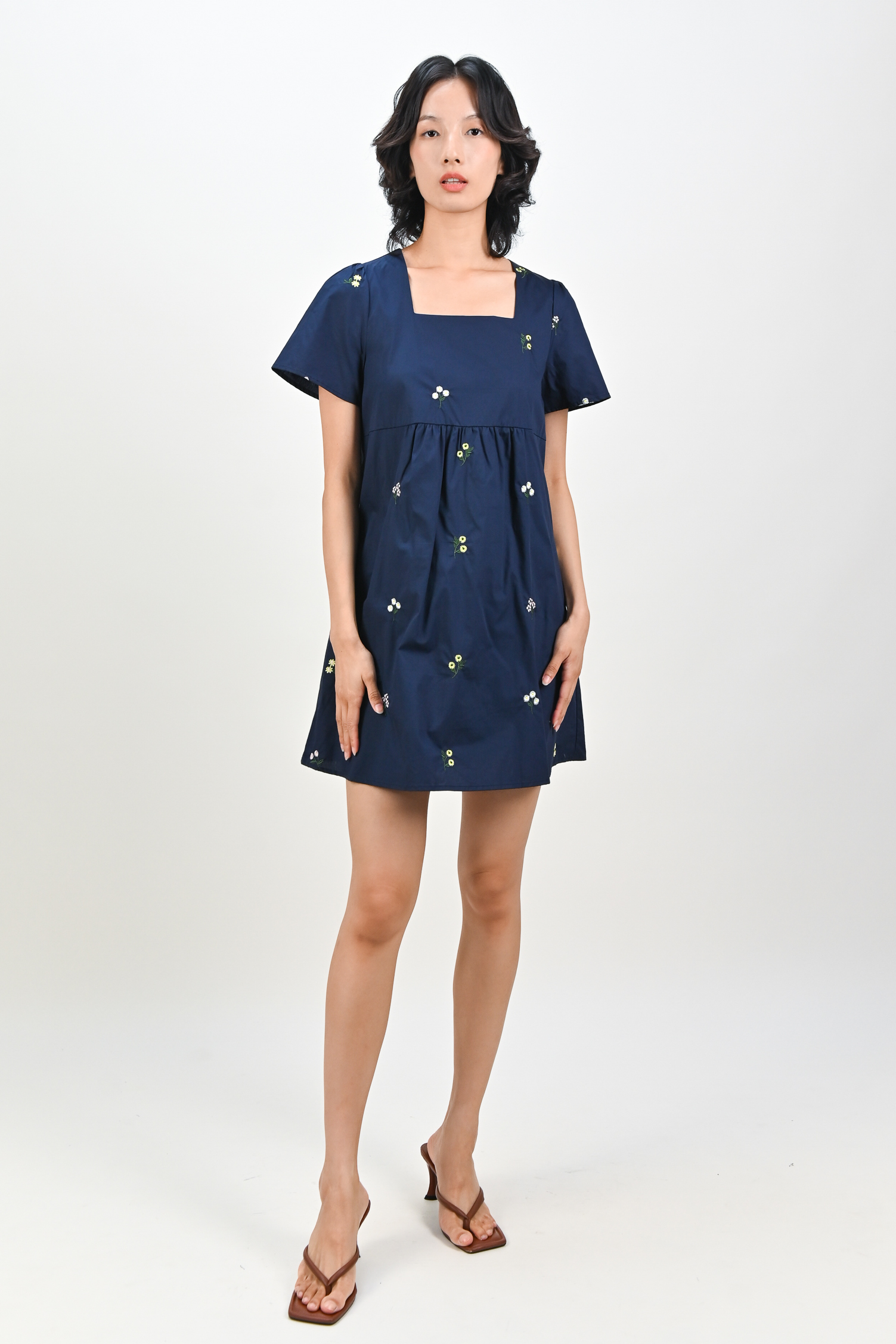 BELLARA NAVY EMB. FLOWERS BABYDOLL DRESS
