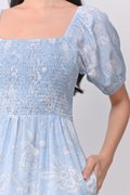 BETHIA BLUE FLORAL SMOCKED DRESS-ROMPER