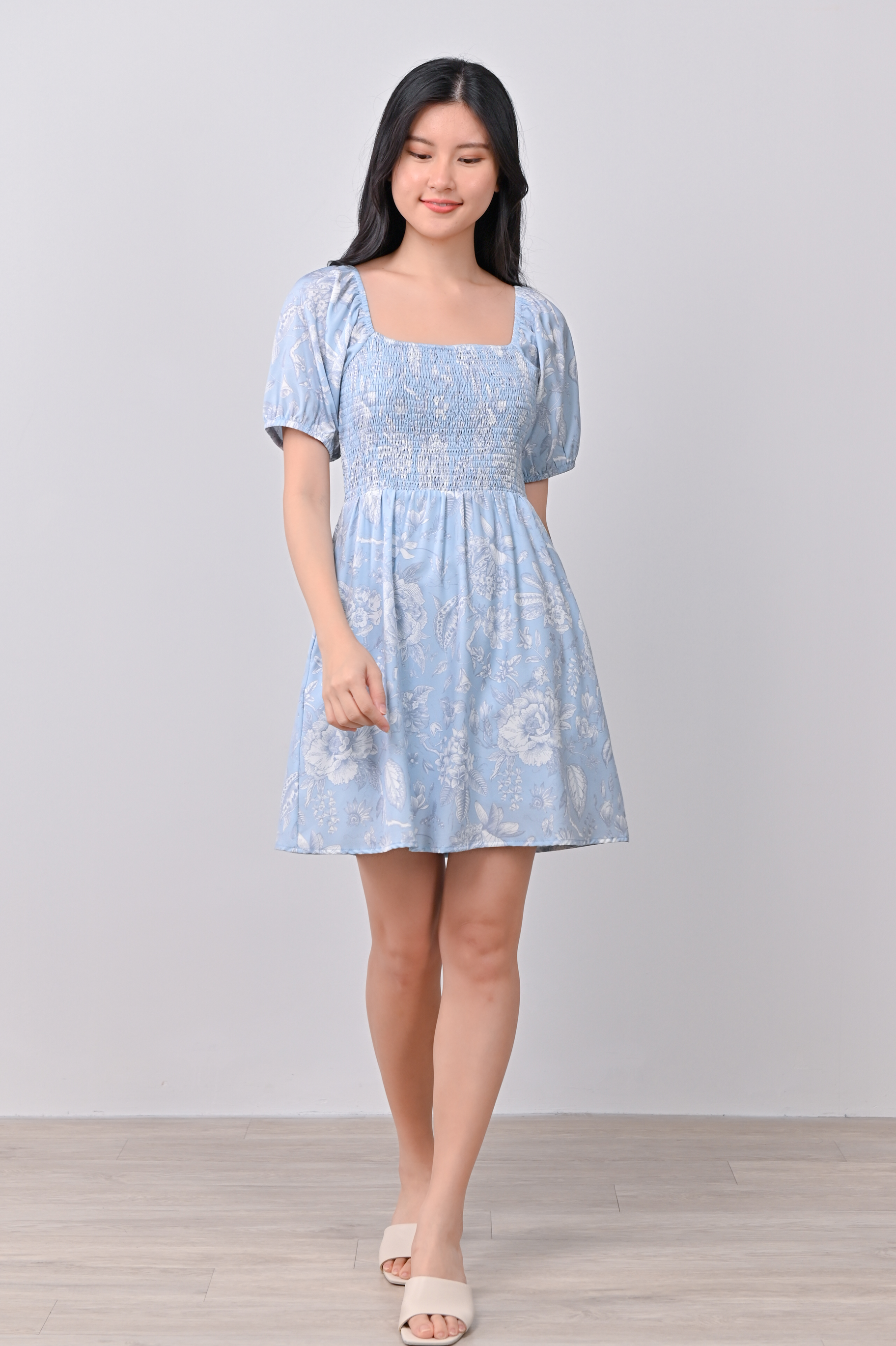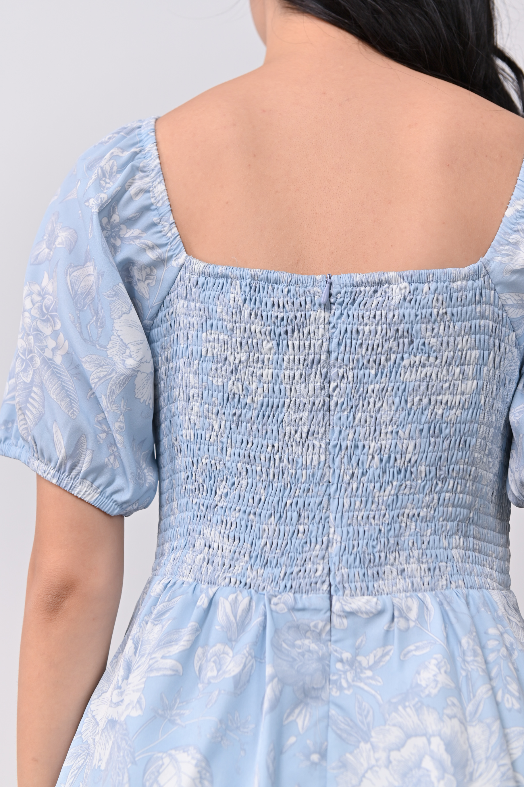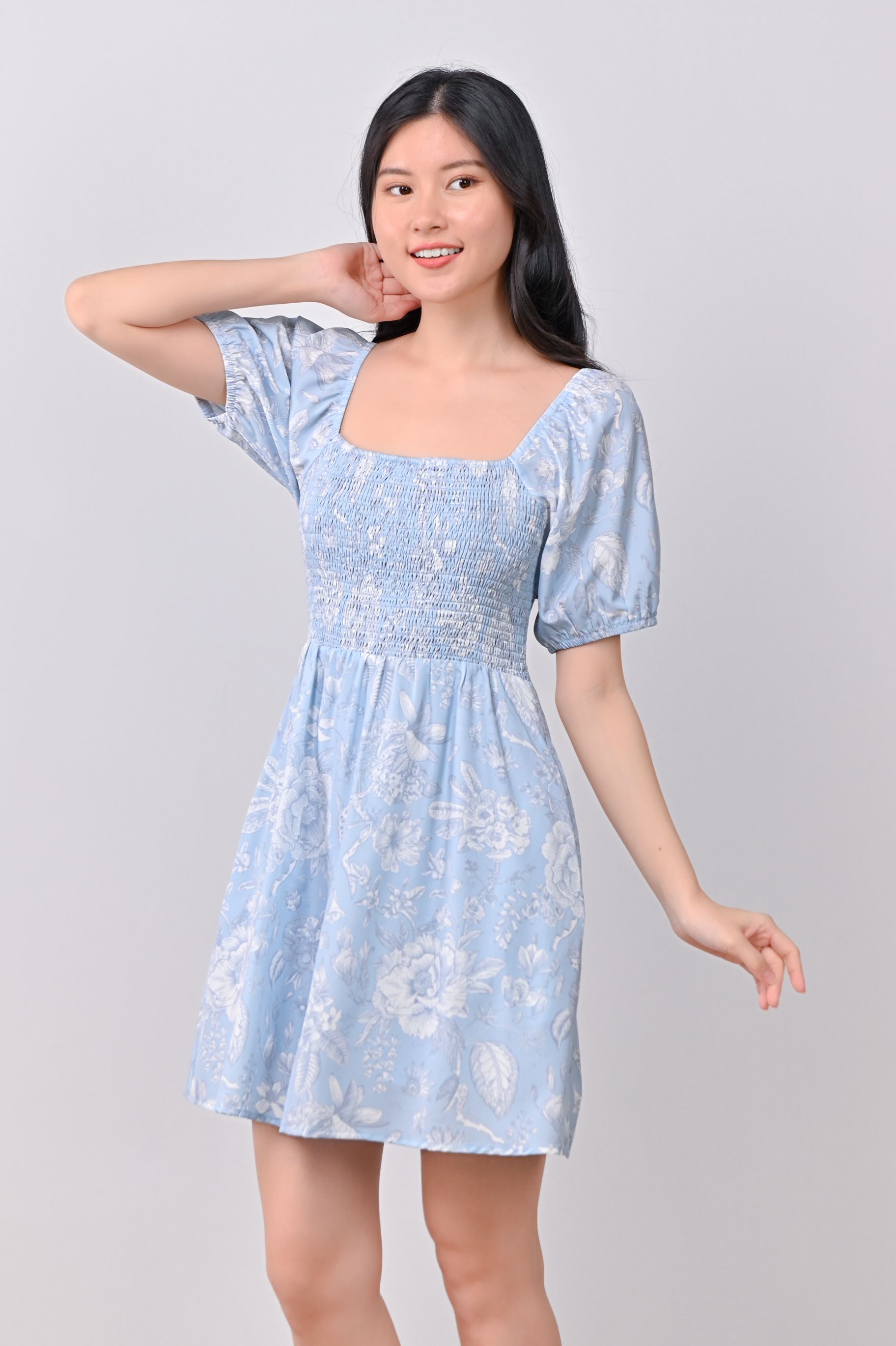 Actual stocks may varyWhen florals are blue, it’s love times two! 🩵🩵 Get busy twirling in our Bethia Smocked Dress-Romper all day!