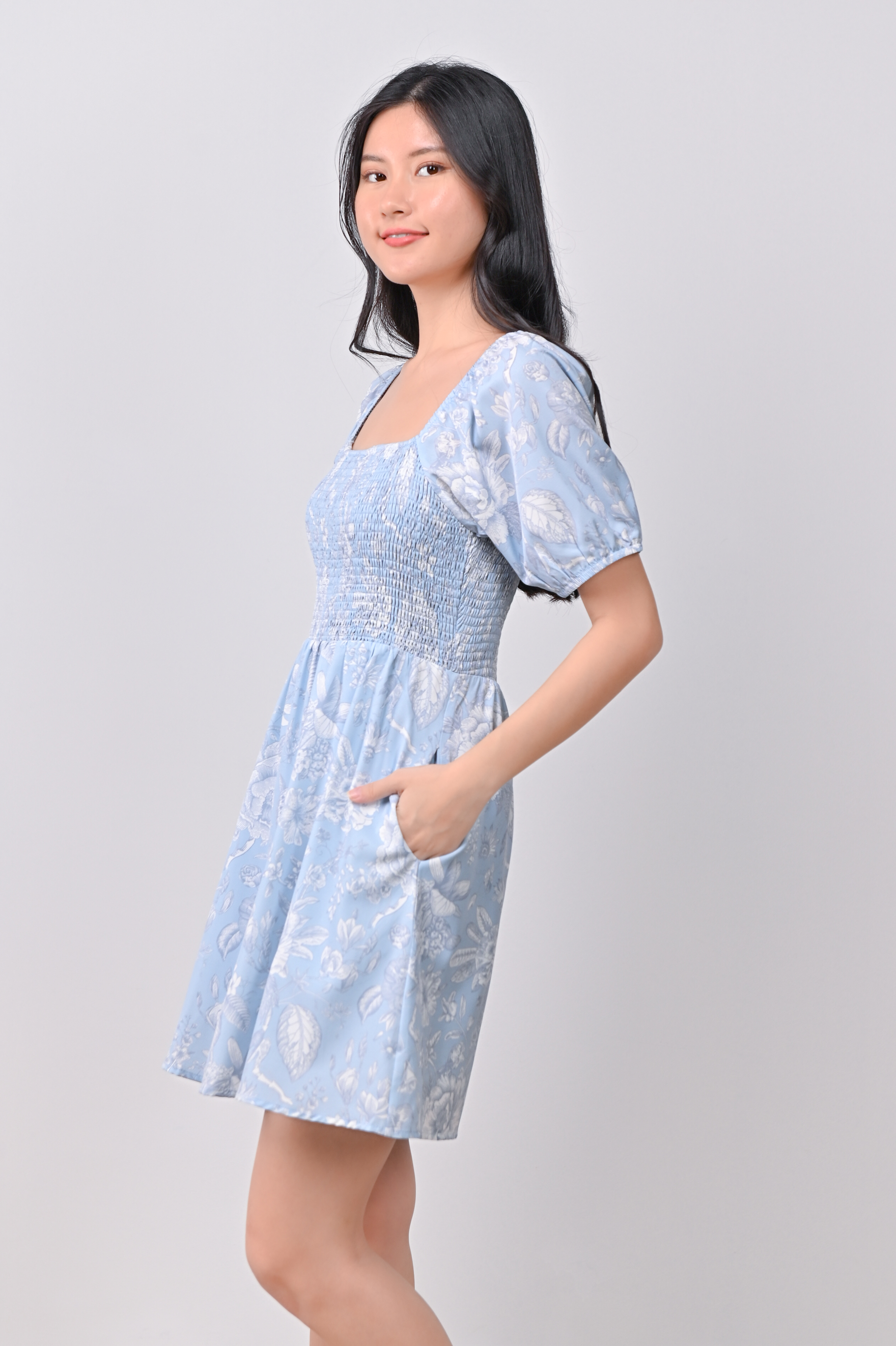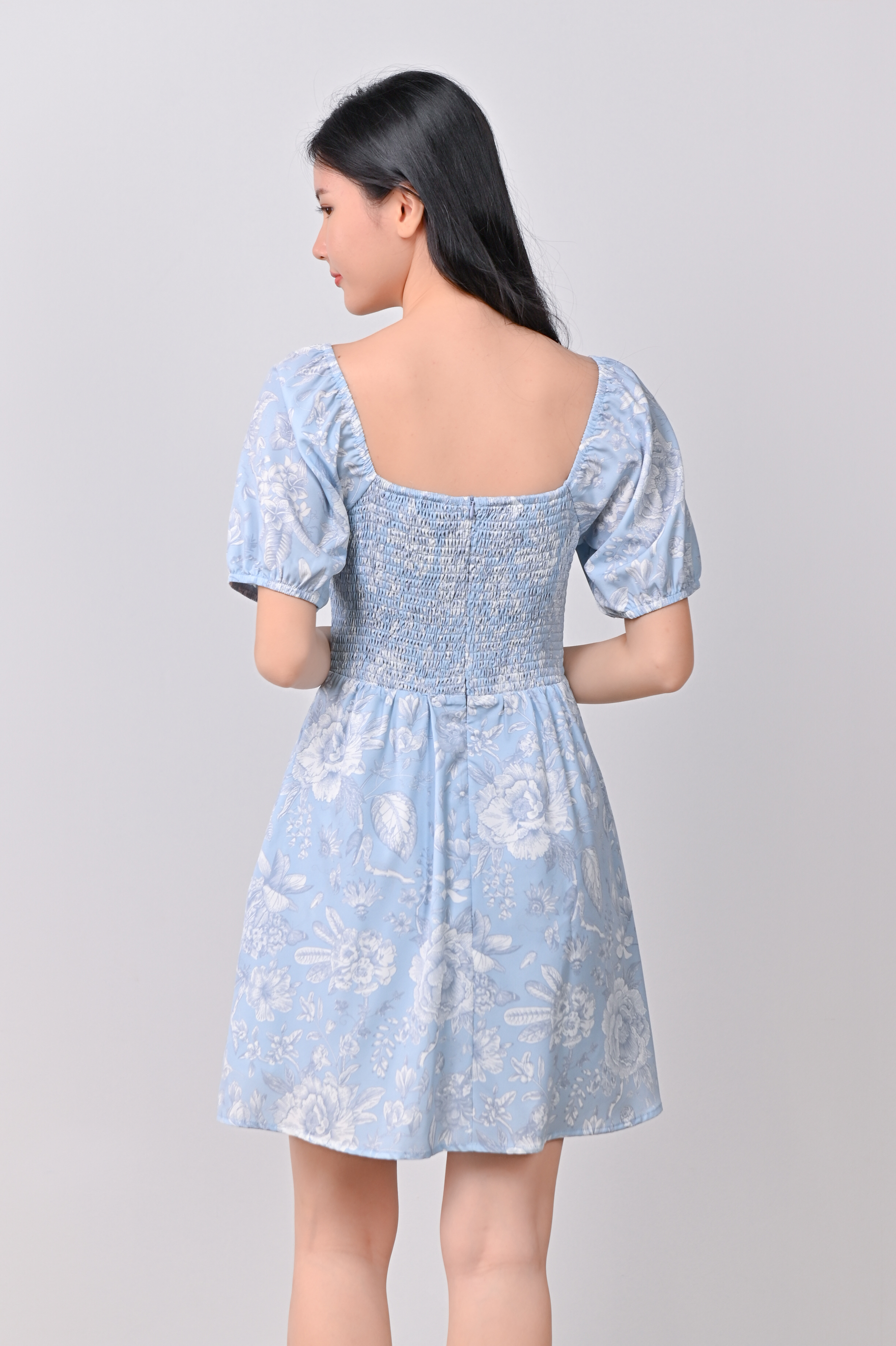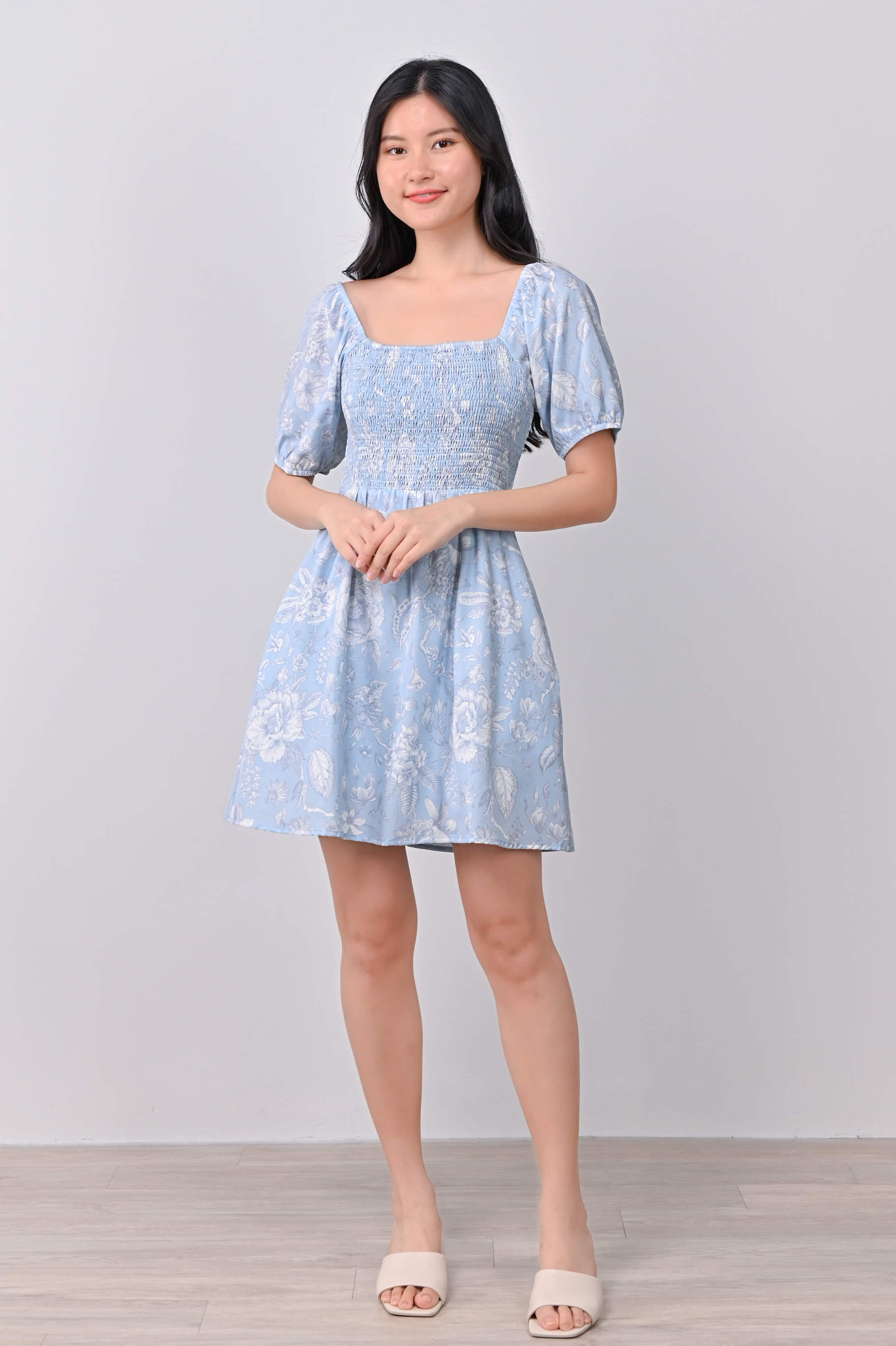 Actual stocks may varyWhen florals are blue, it’s love times two! 🩵🩵 Get busy twirling in our Bethia Smocked Dress-Romper all day!