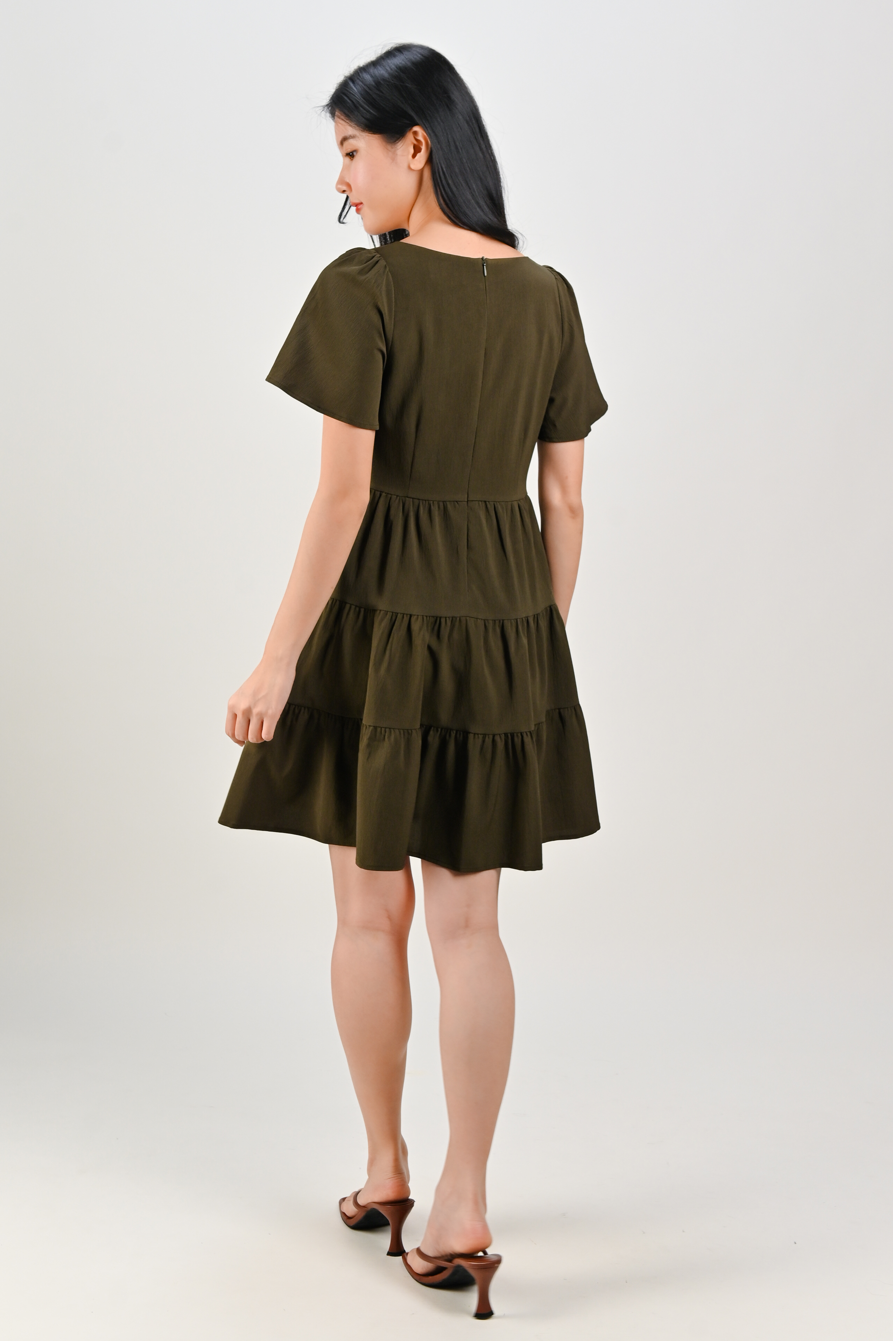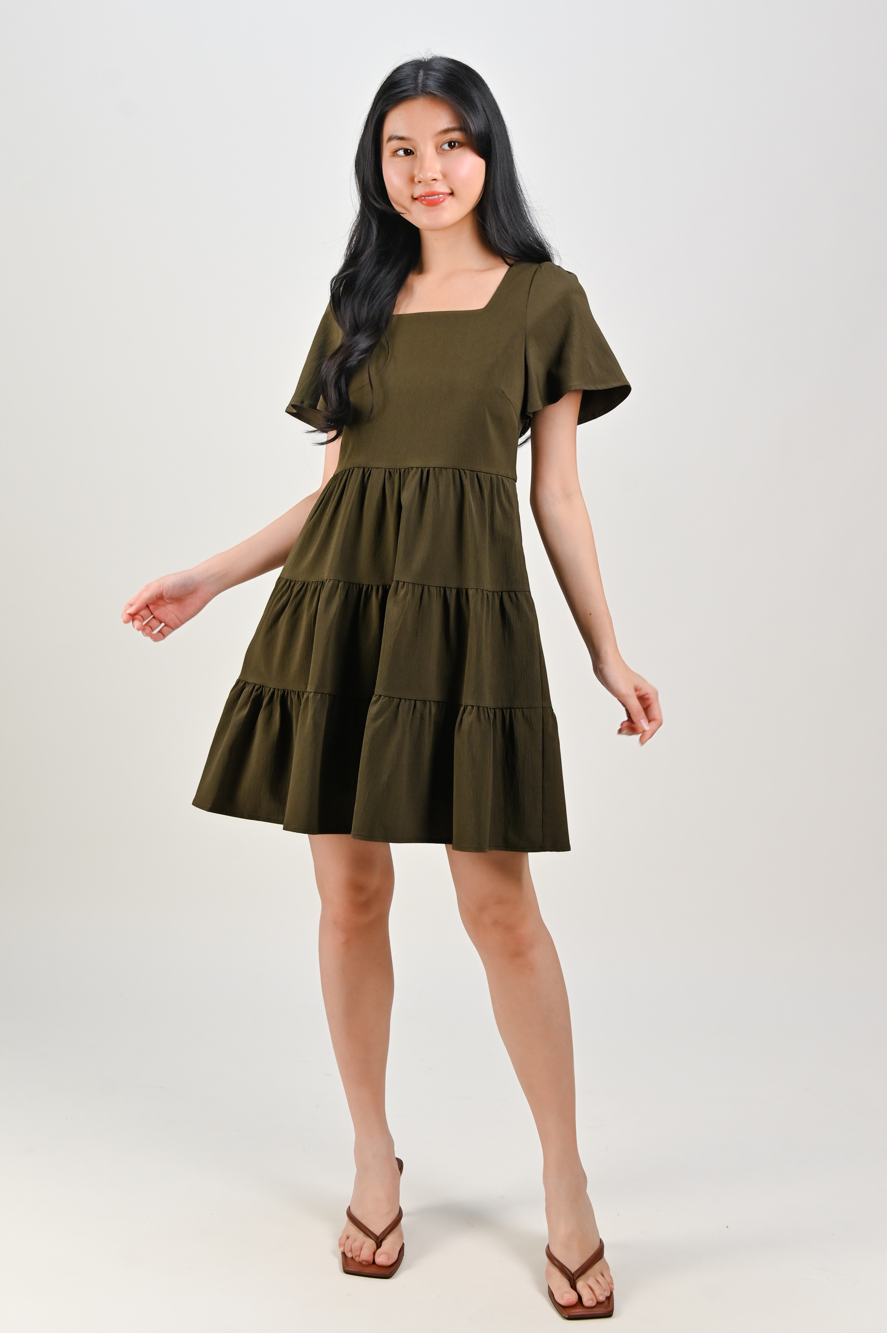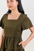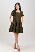 BIEL SQUARE-NECK BABYDOLL DRESS IN OLIVE