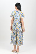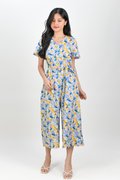 BLUE LACELEAF V-NECK SLEEVED JUMPSUIT