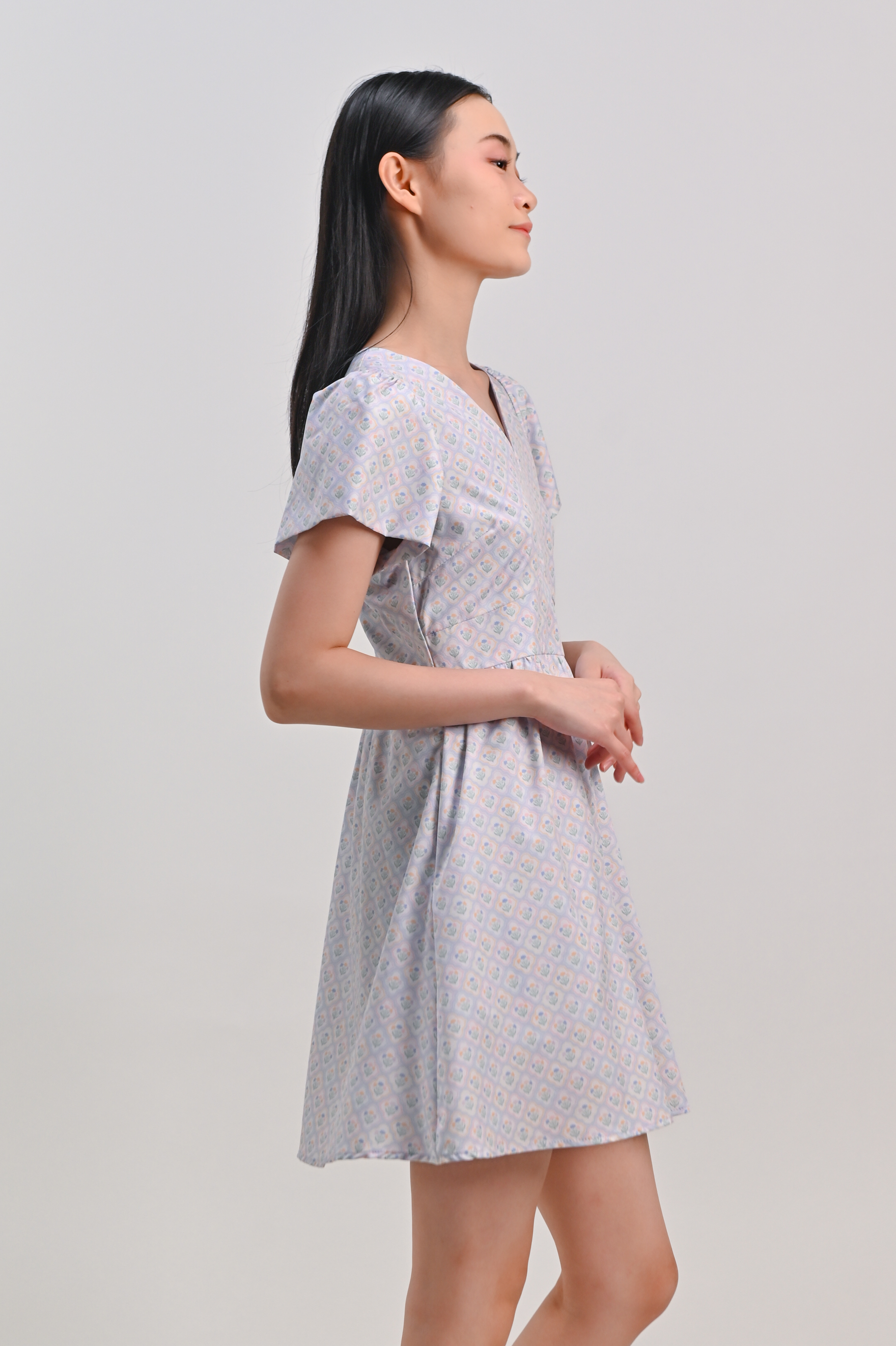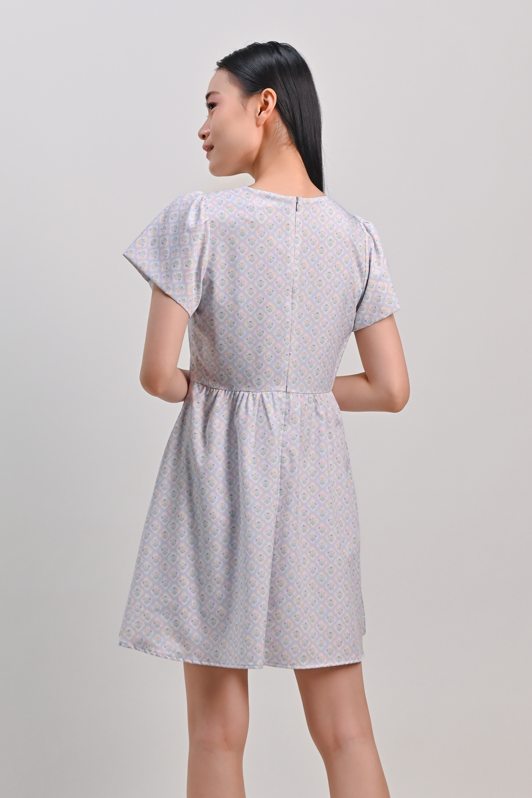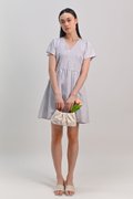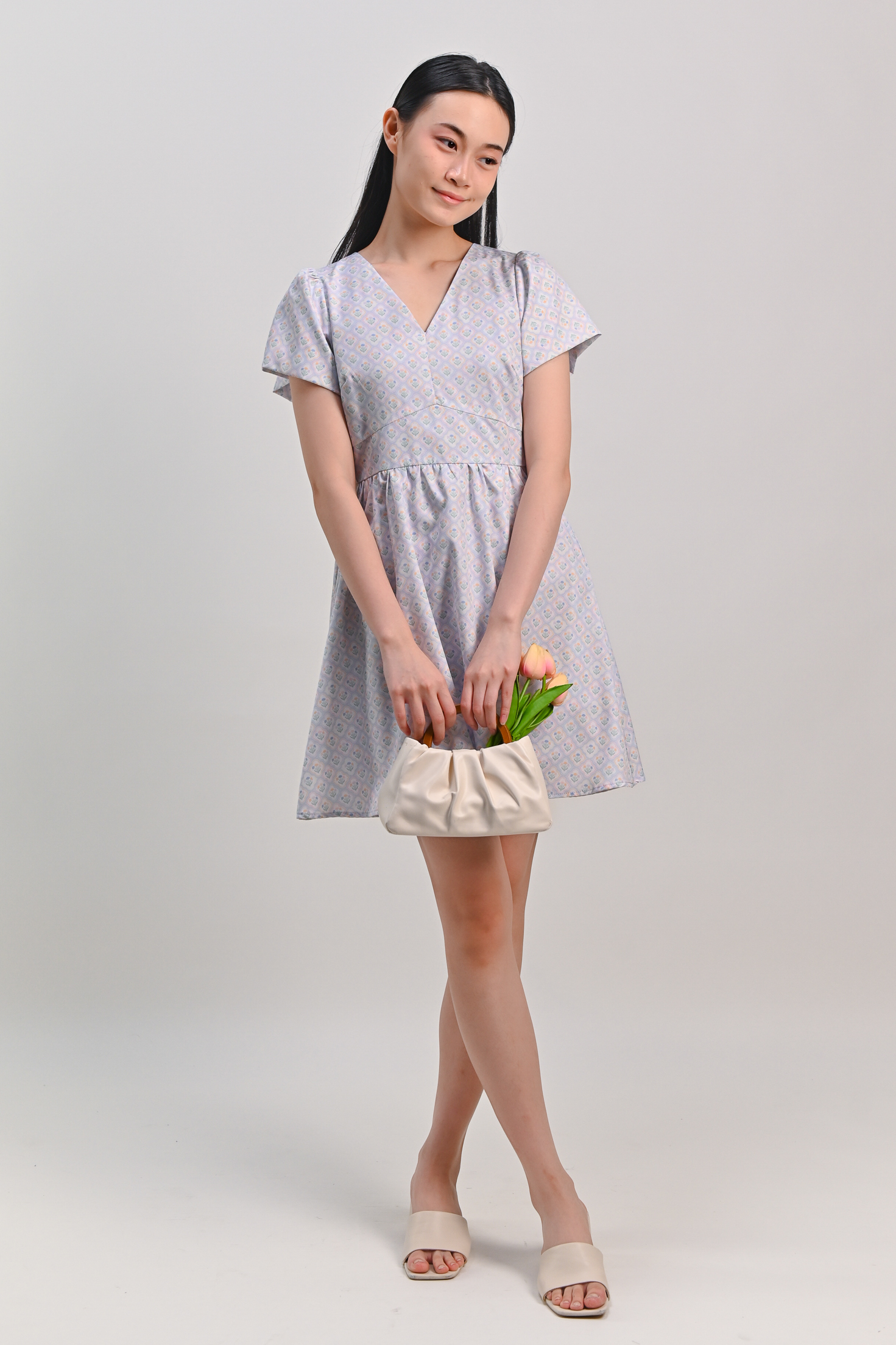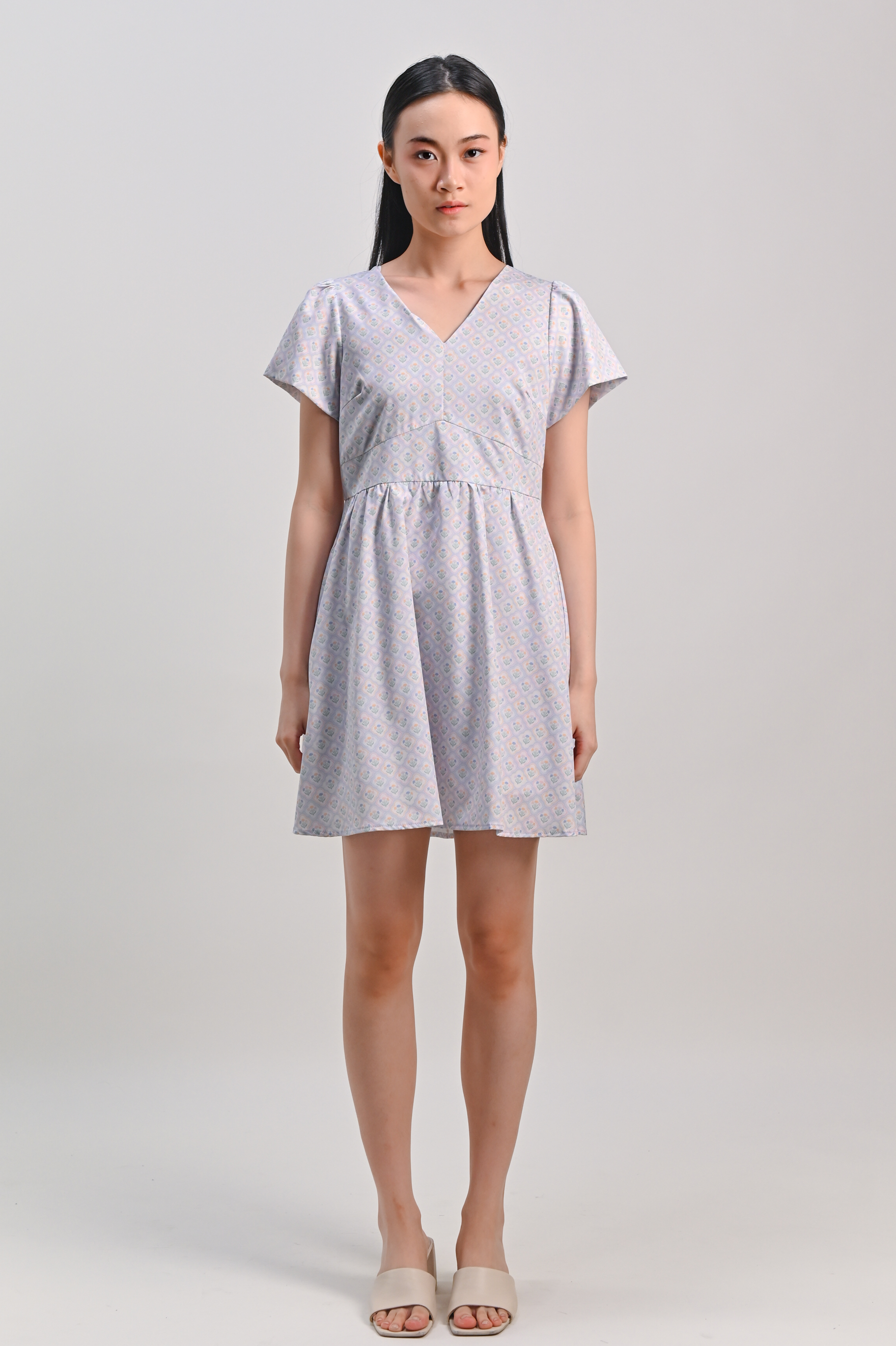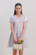 BLUE PASTEL BOUQUET V-NECK SLEEVED DRESS-ROMPER