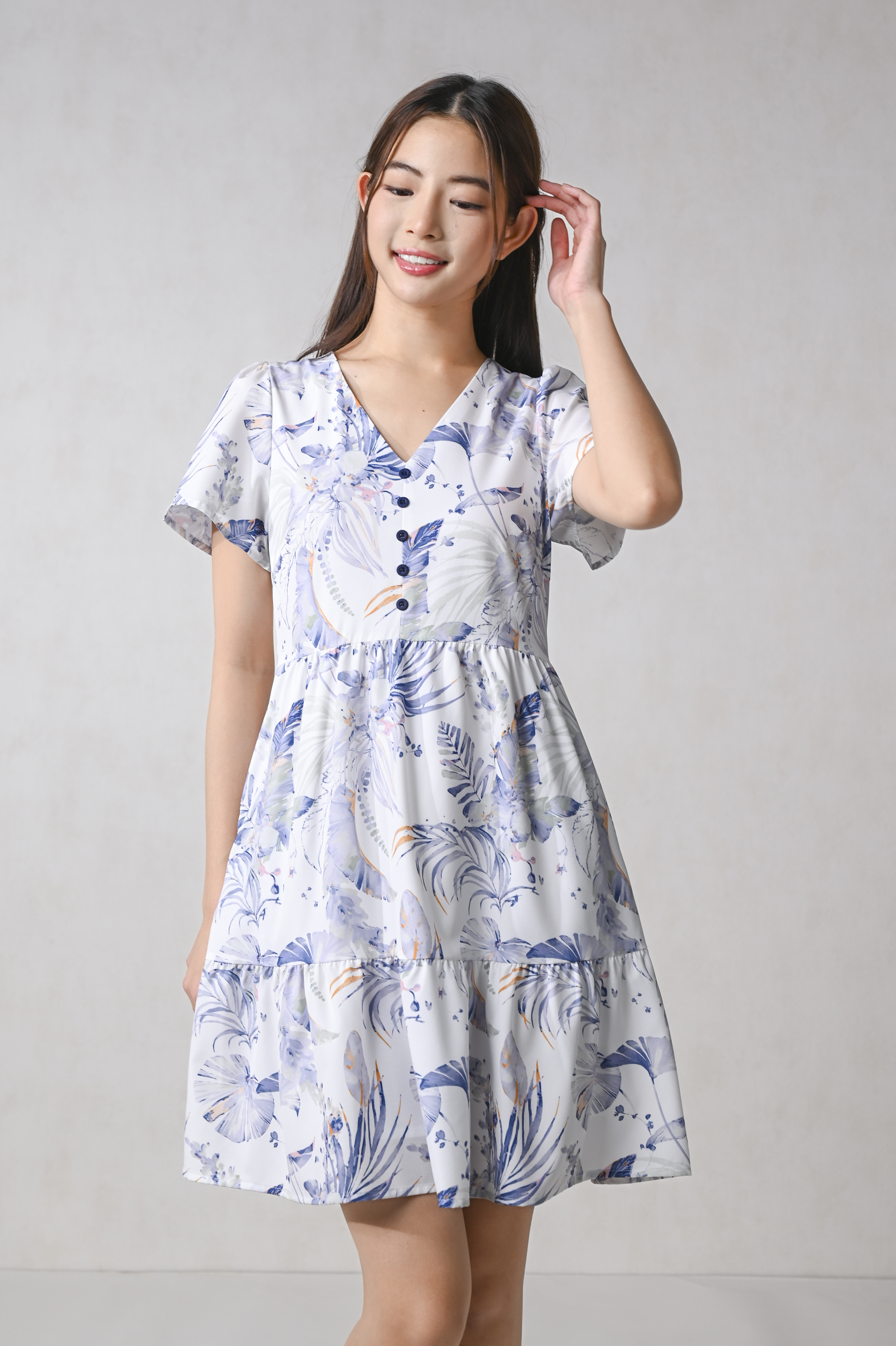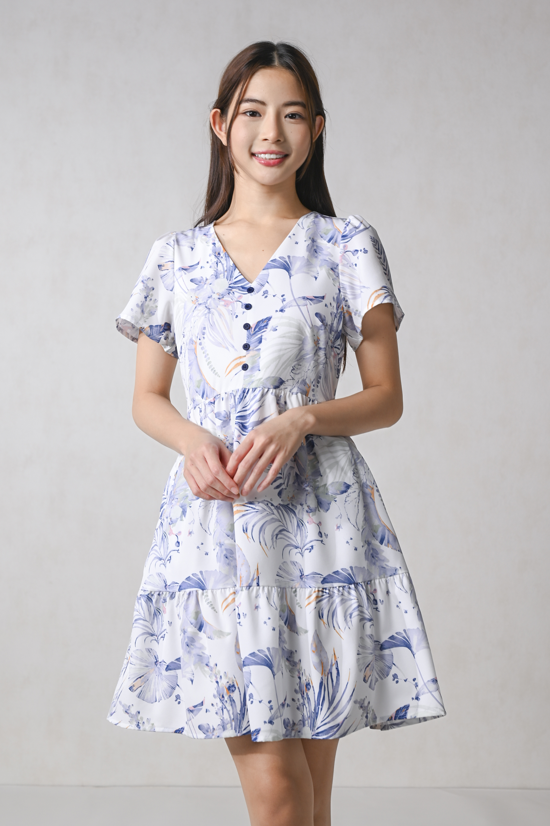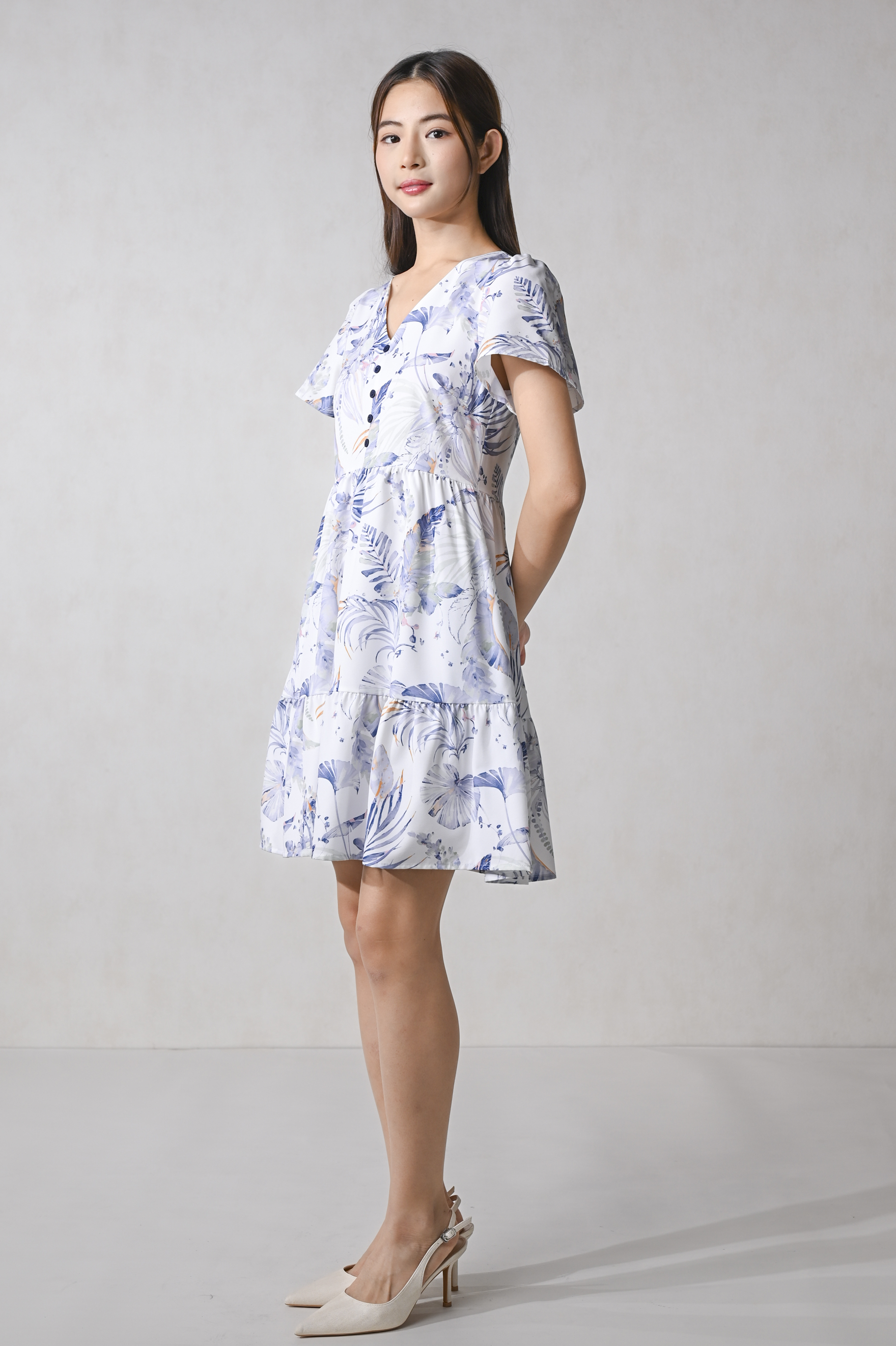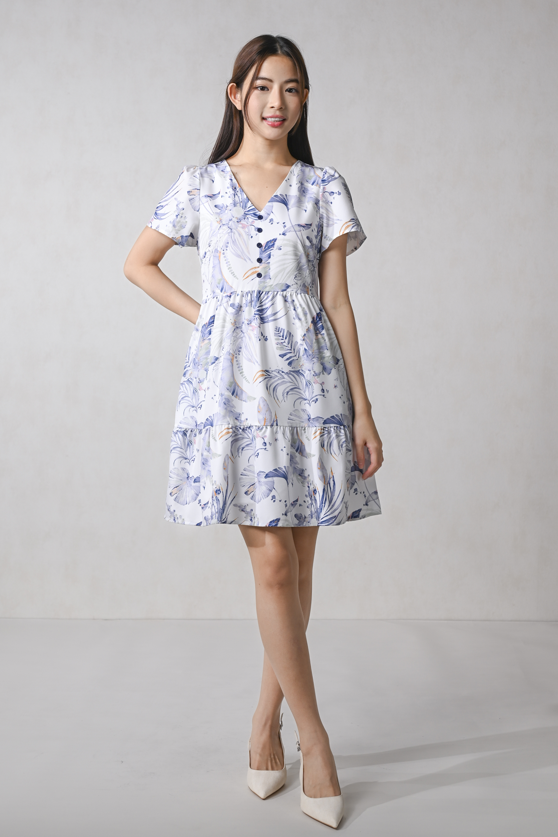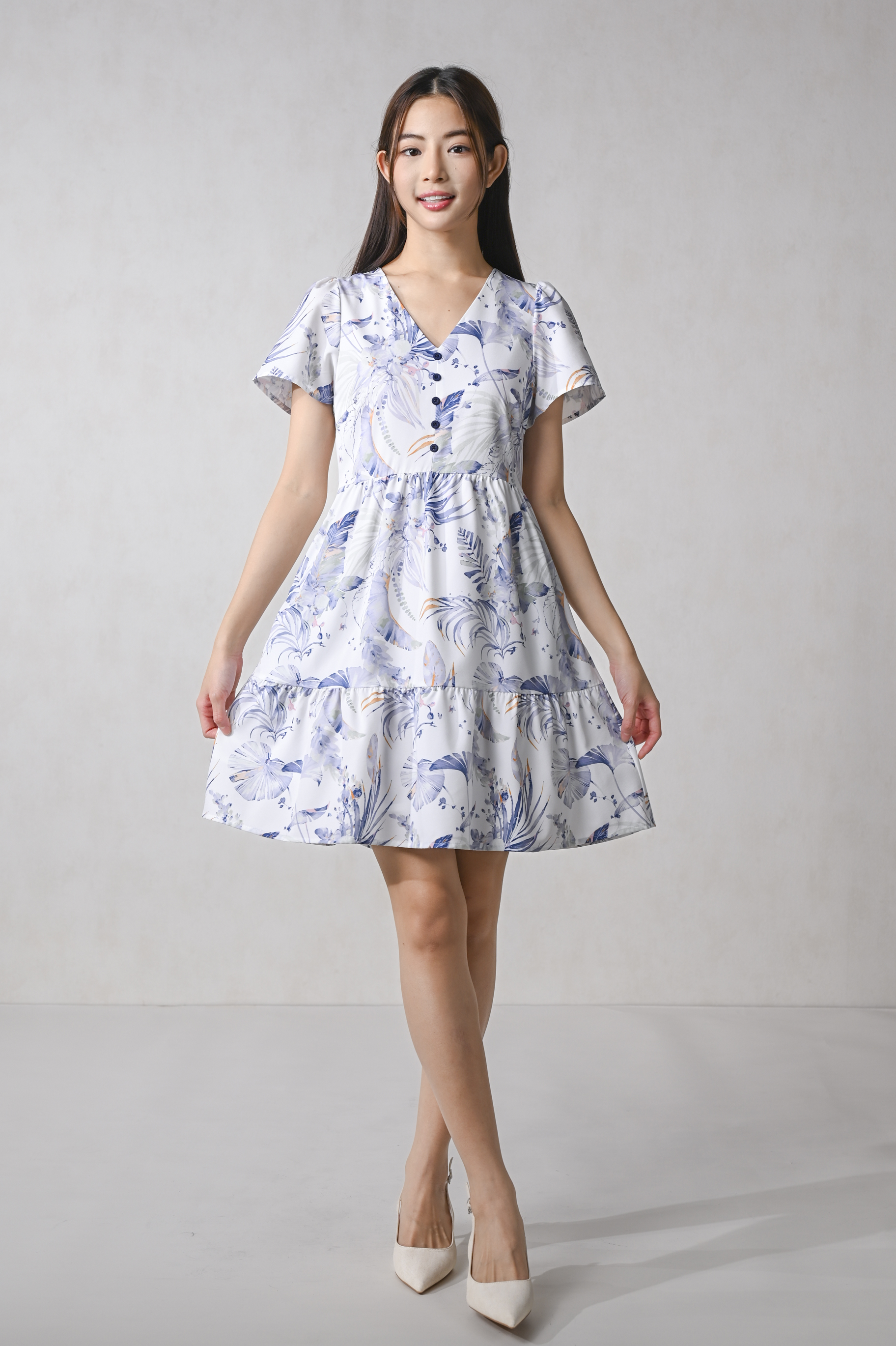 BLUE VALENTINE SLEEVED BUTTON FLOUNCE DRESS