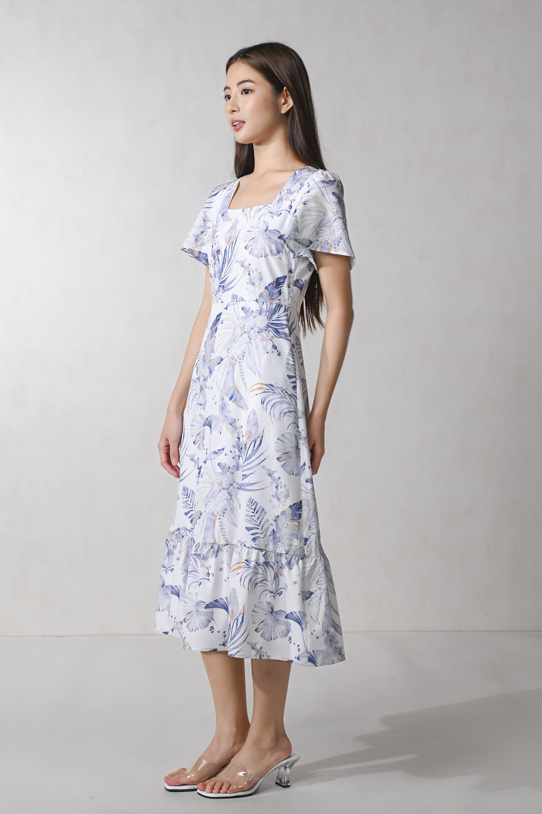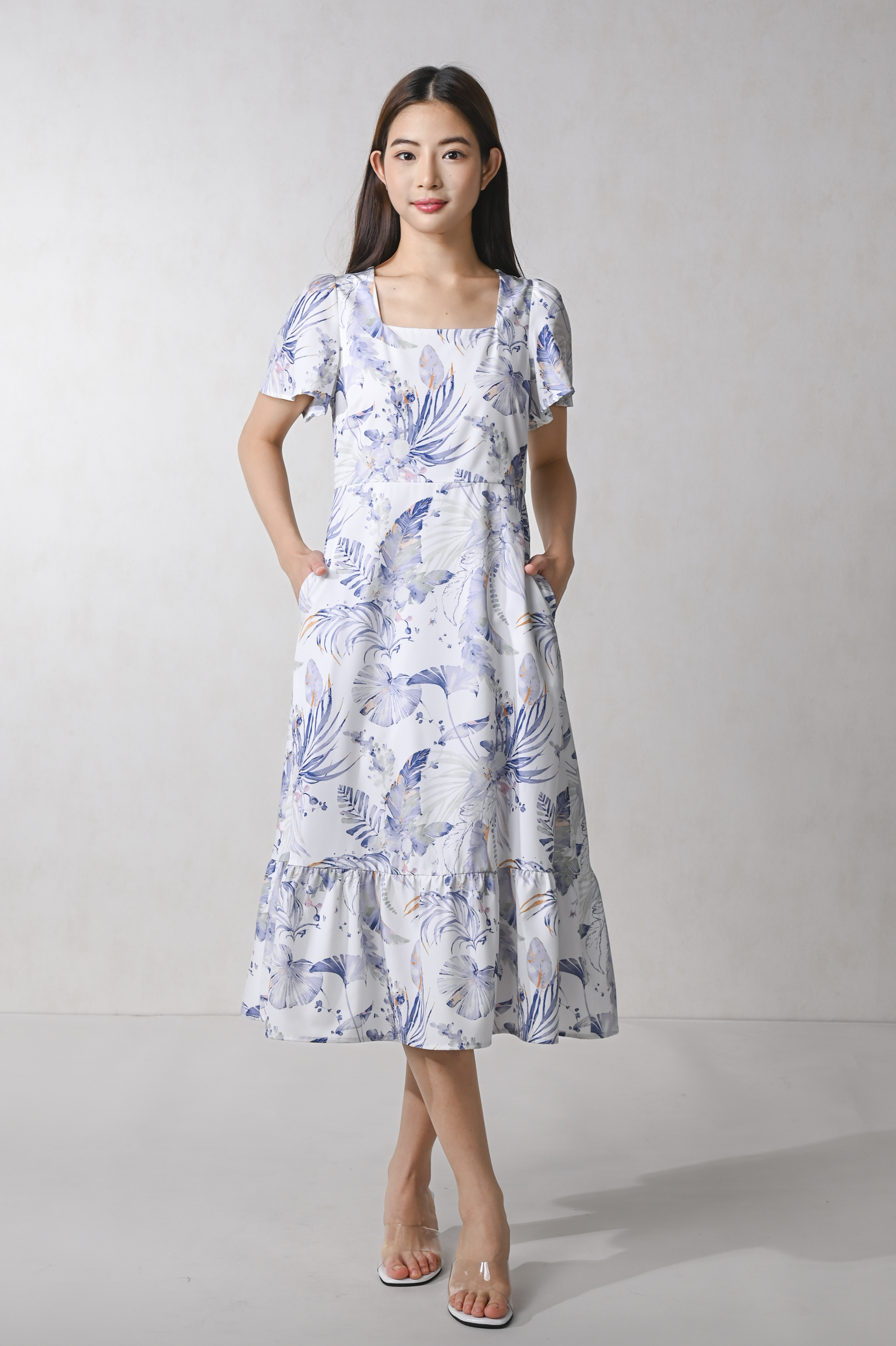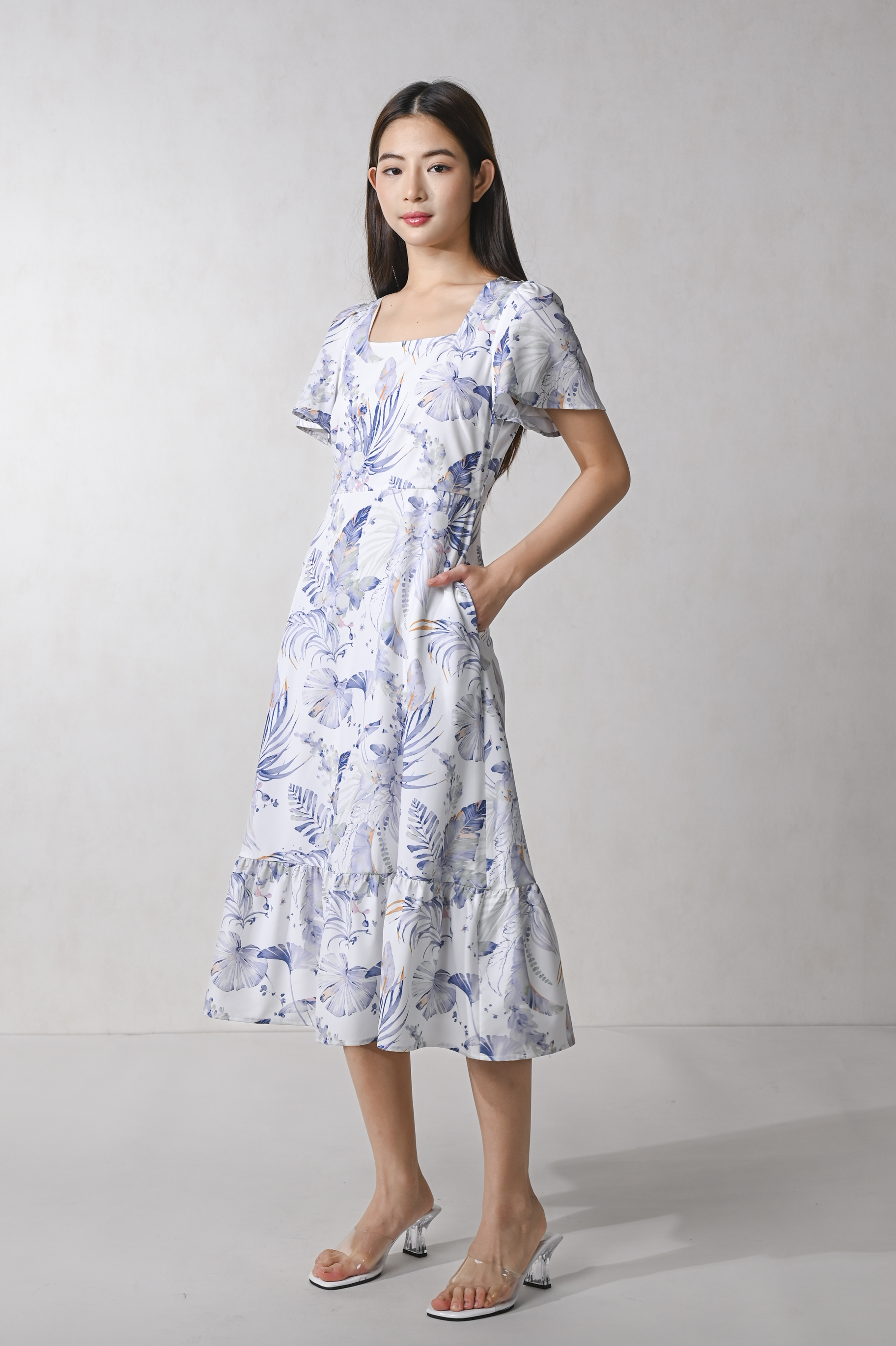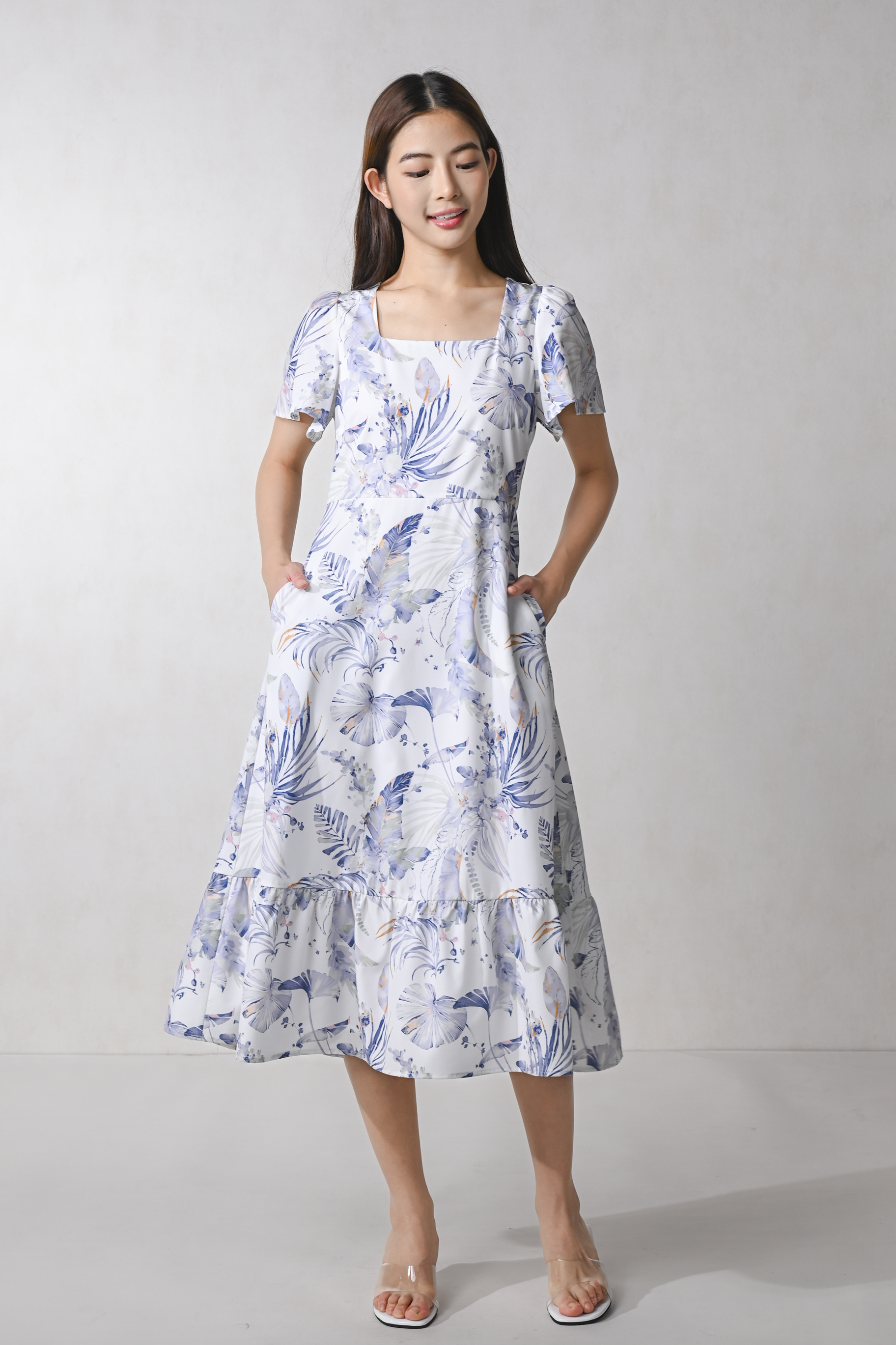 BLUE VALENTINE SQUARE-NECK SLEEVED MIDI DRESS