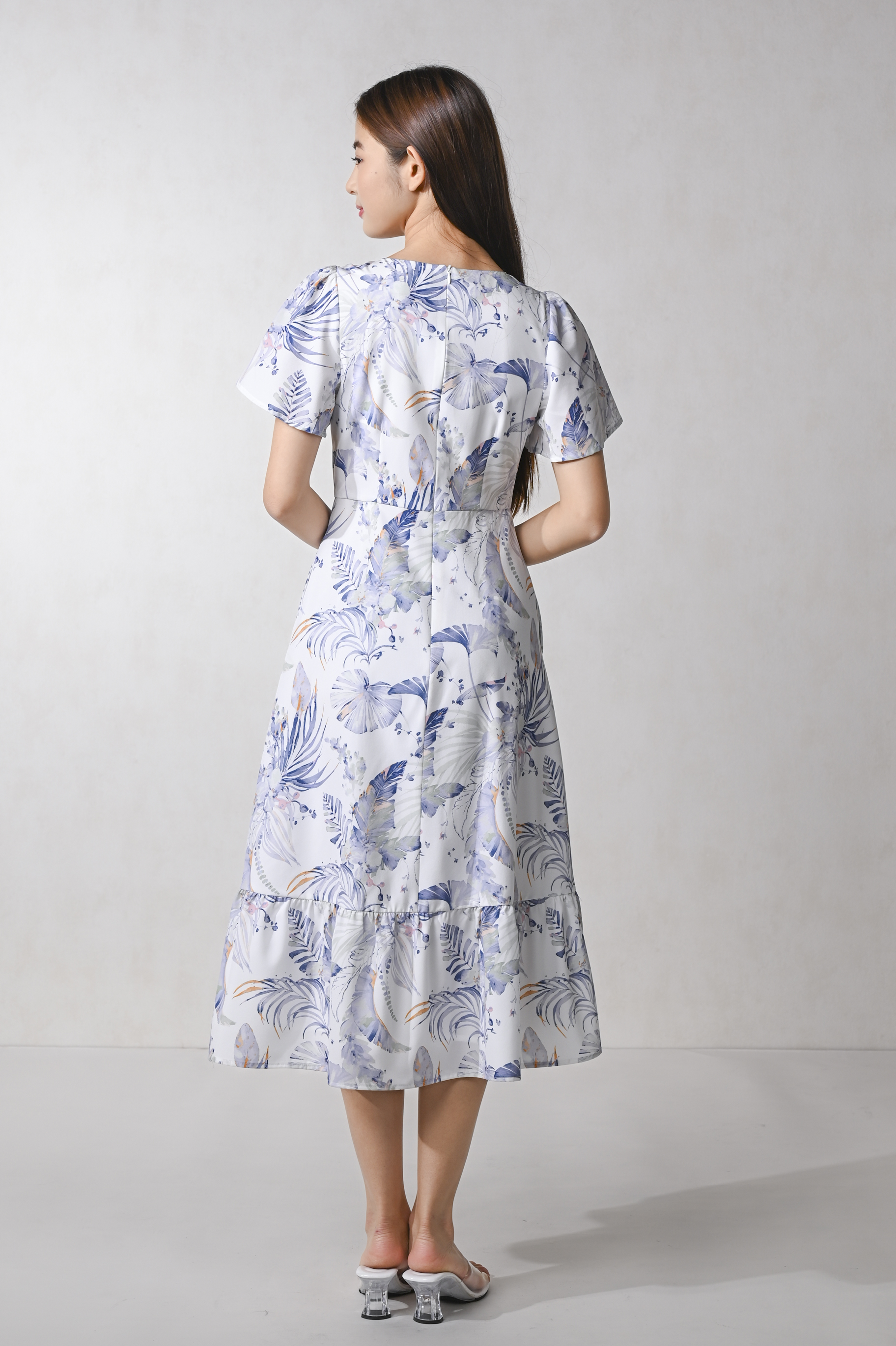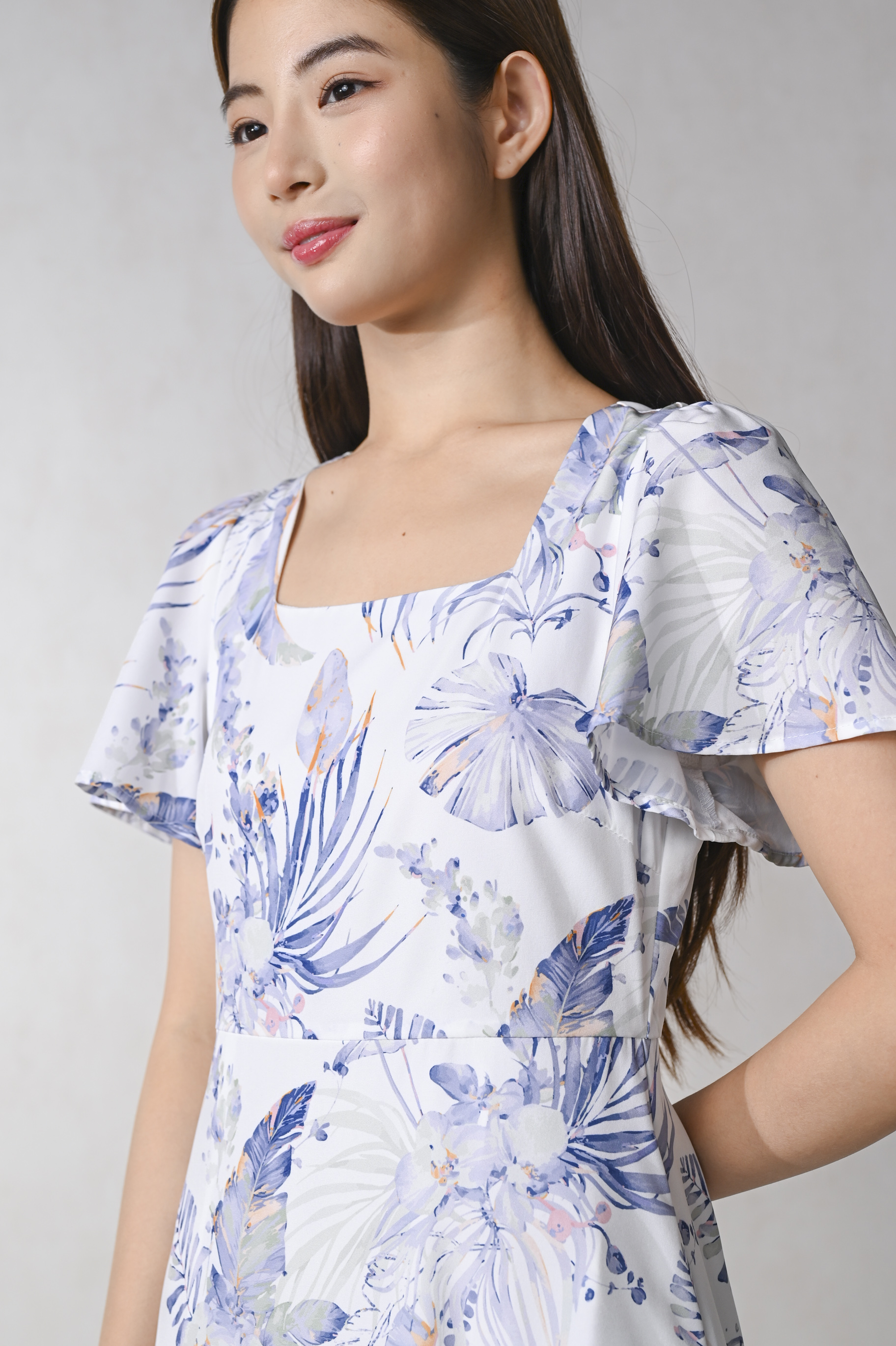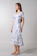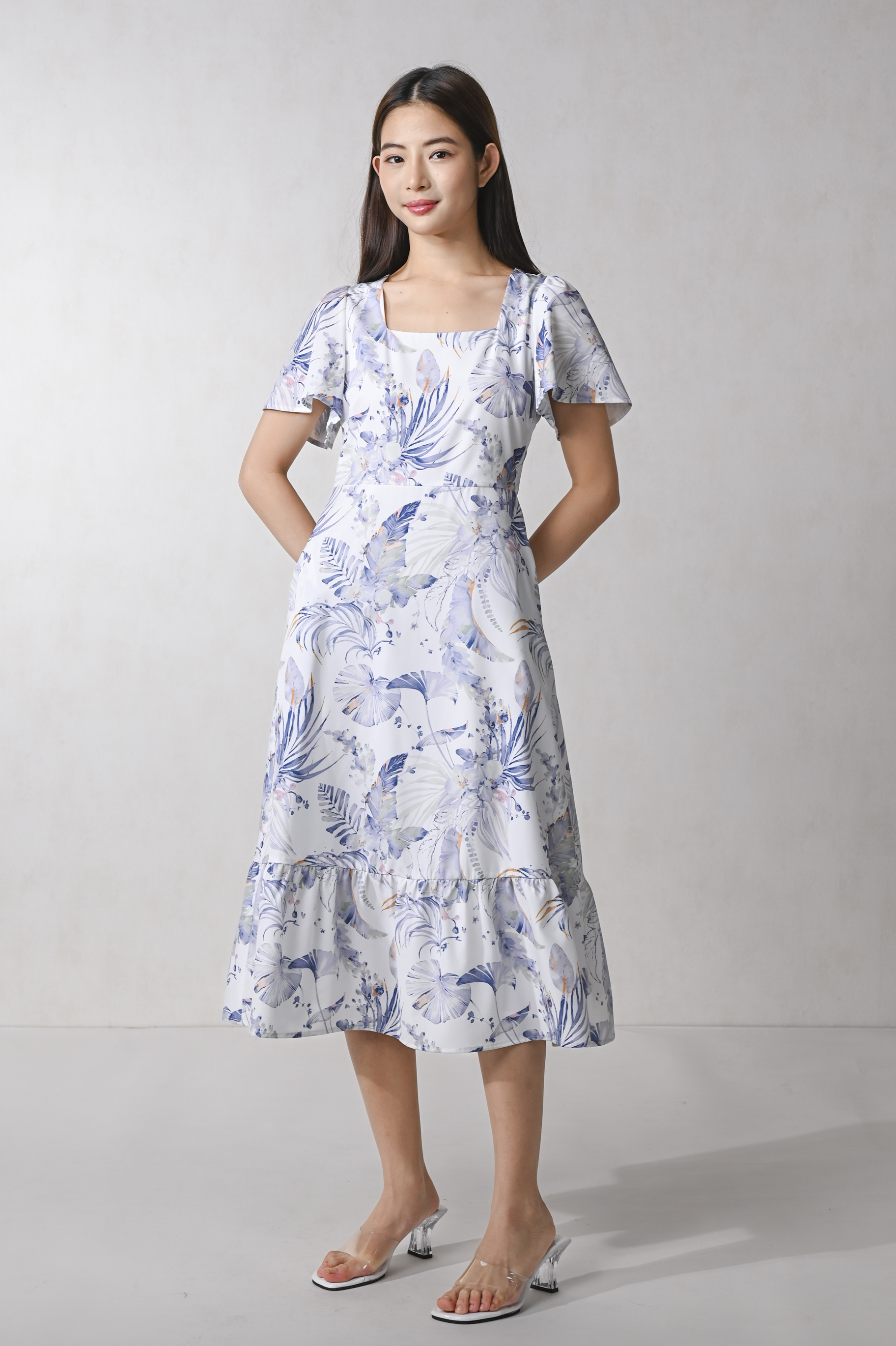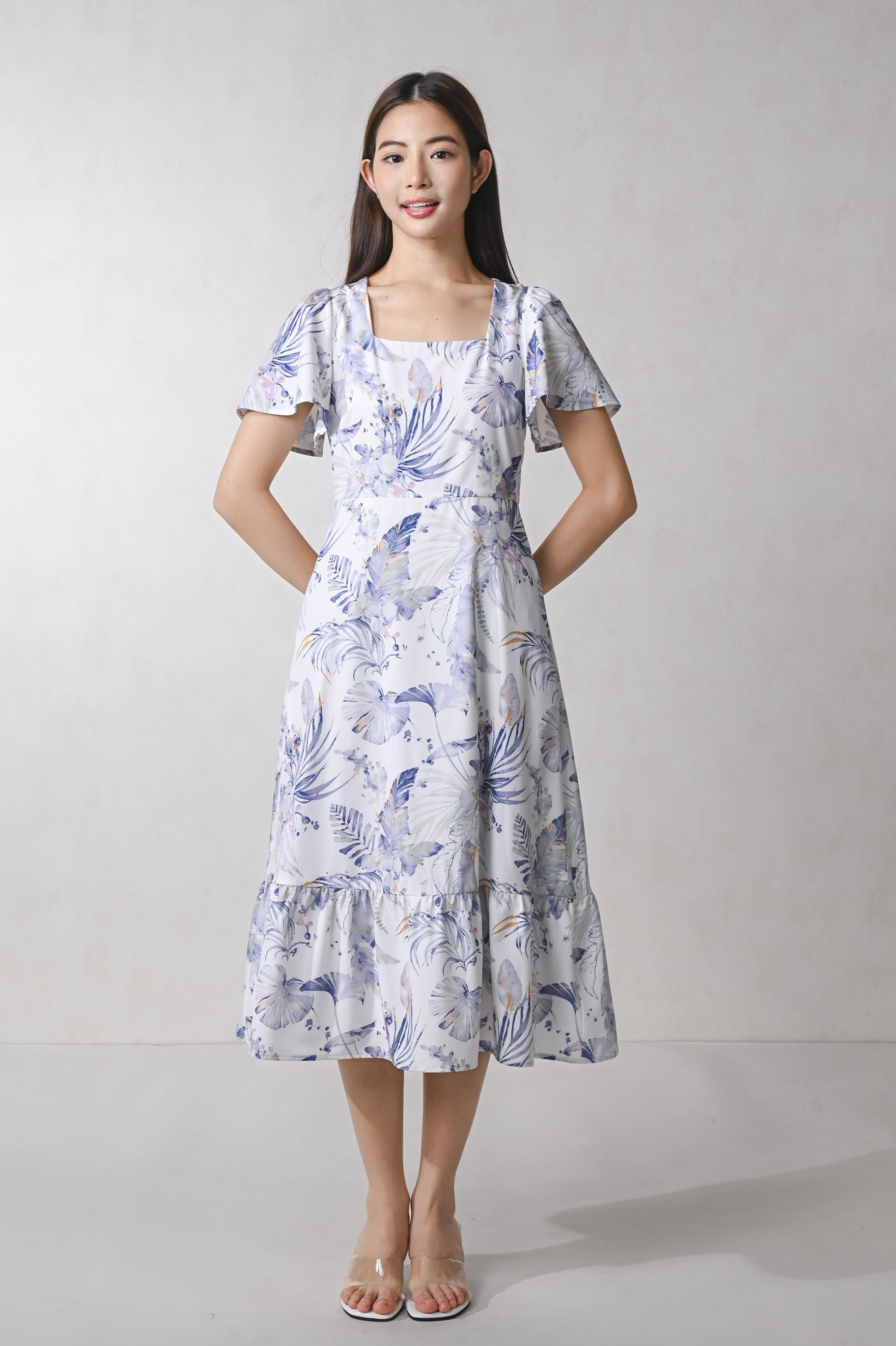 BLUE VALENTINE SQUARE-NECK SLEEVED MIDI DRESS