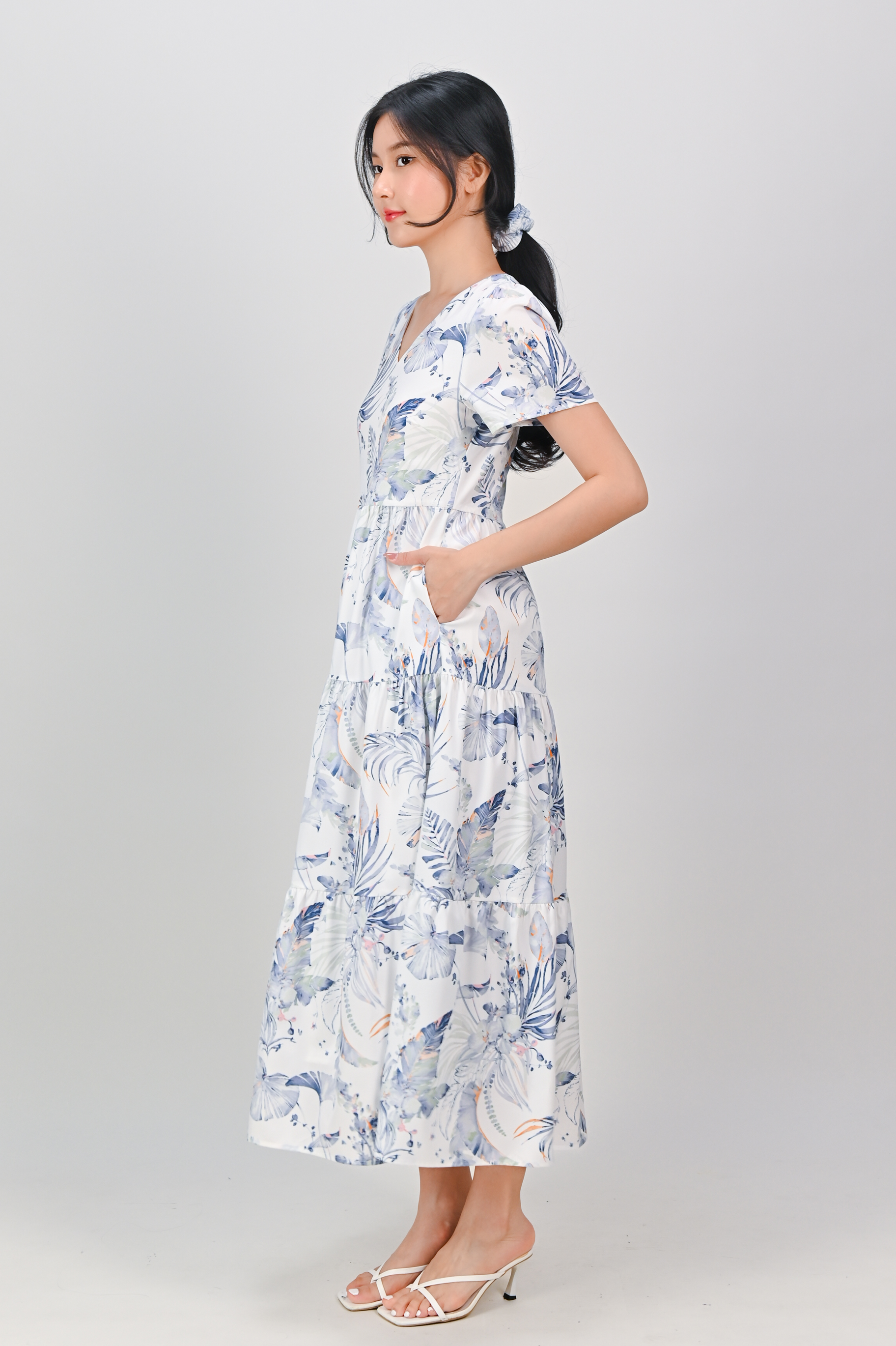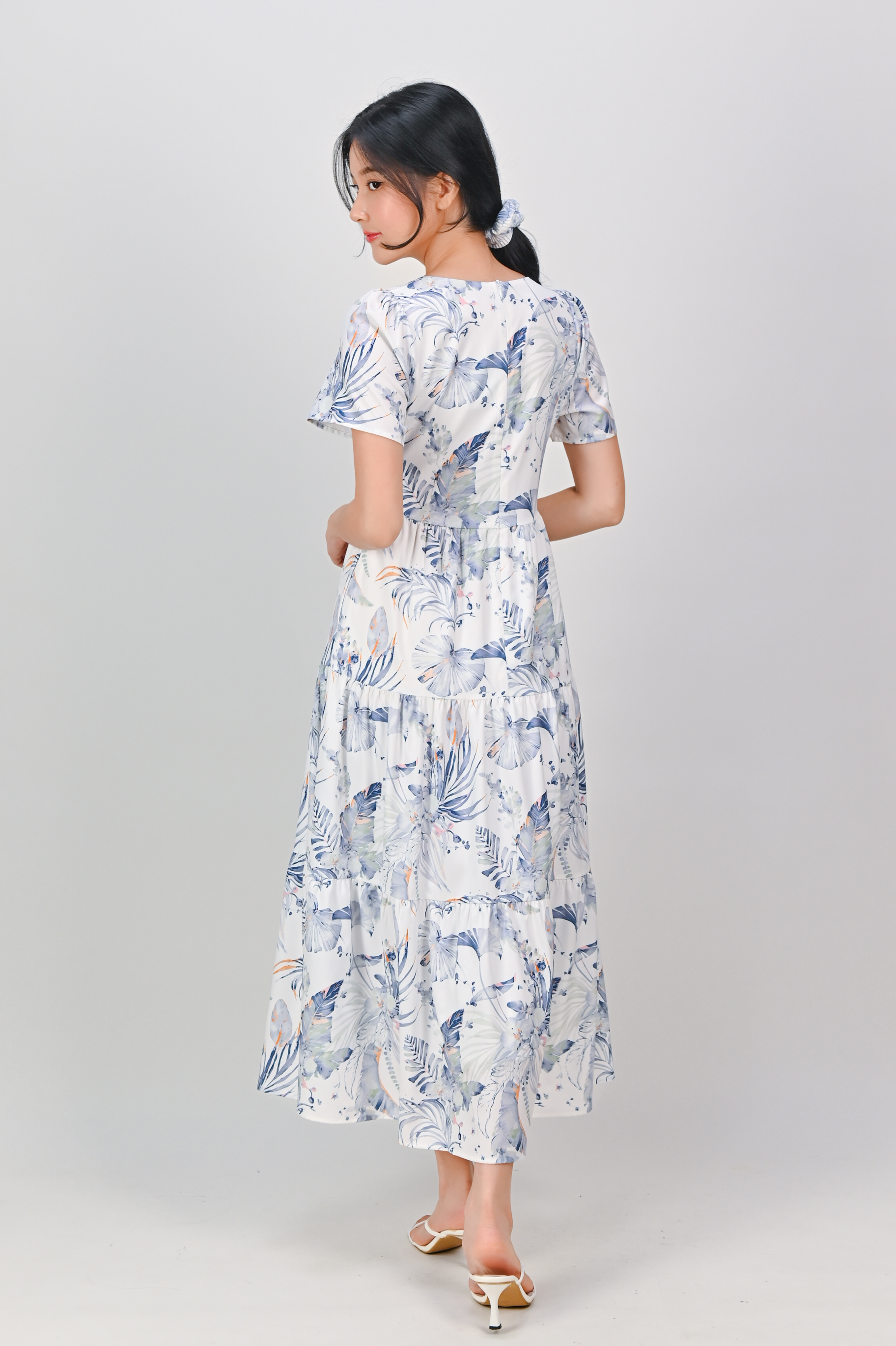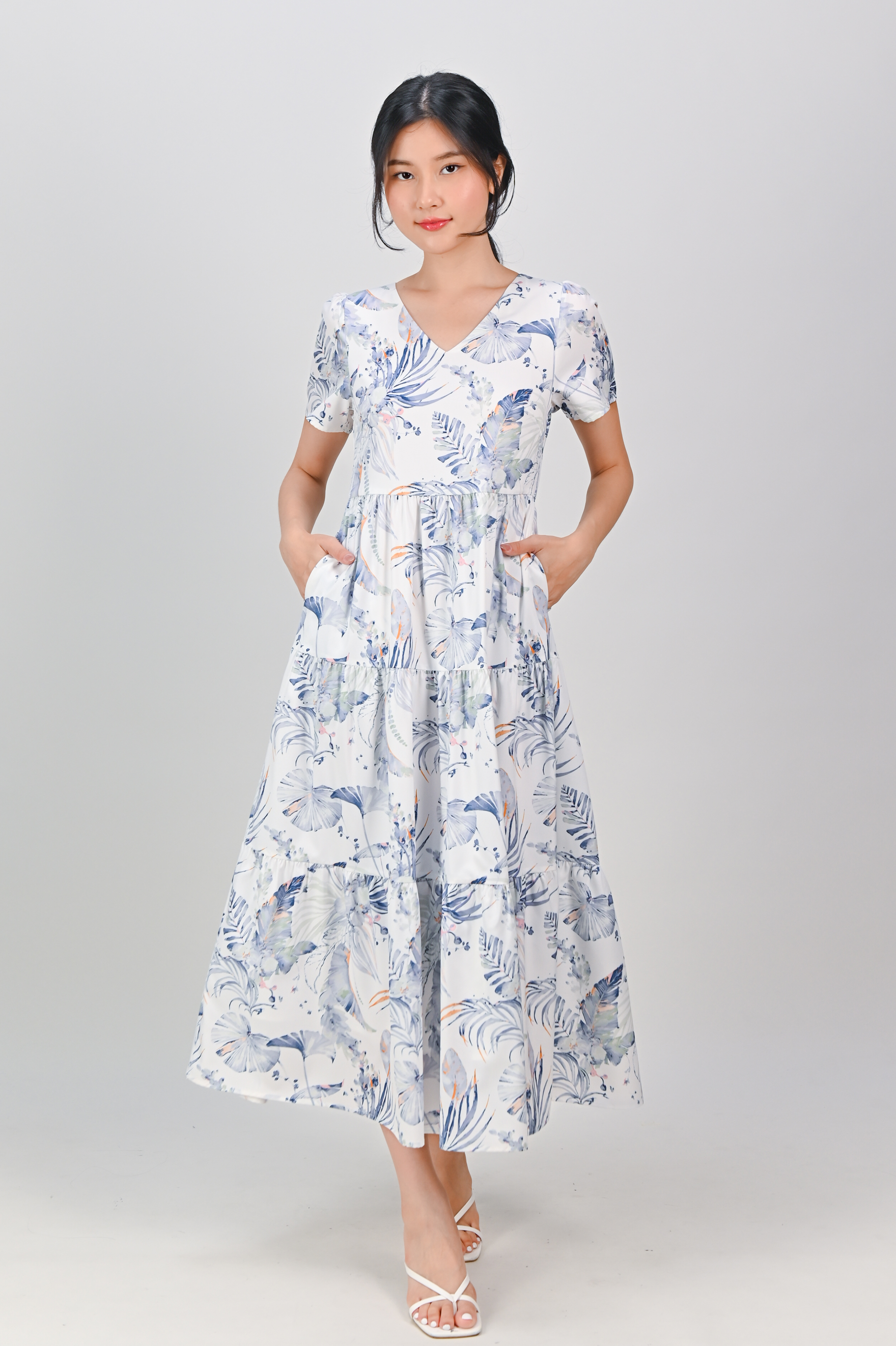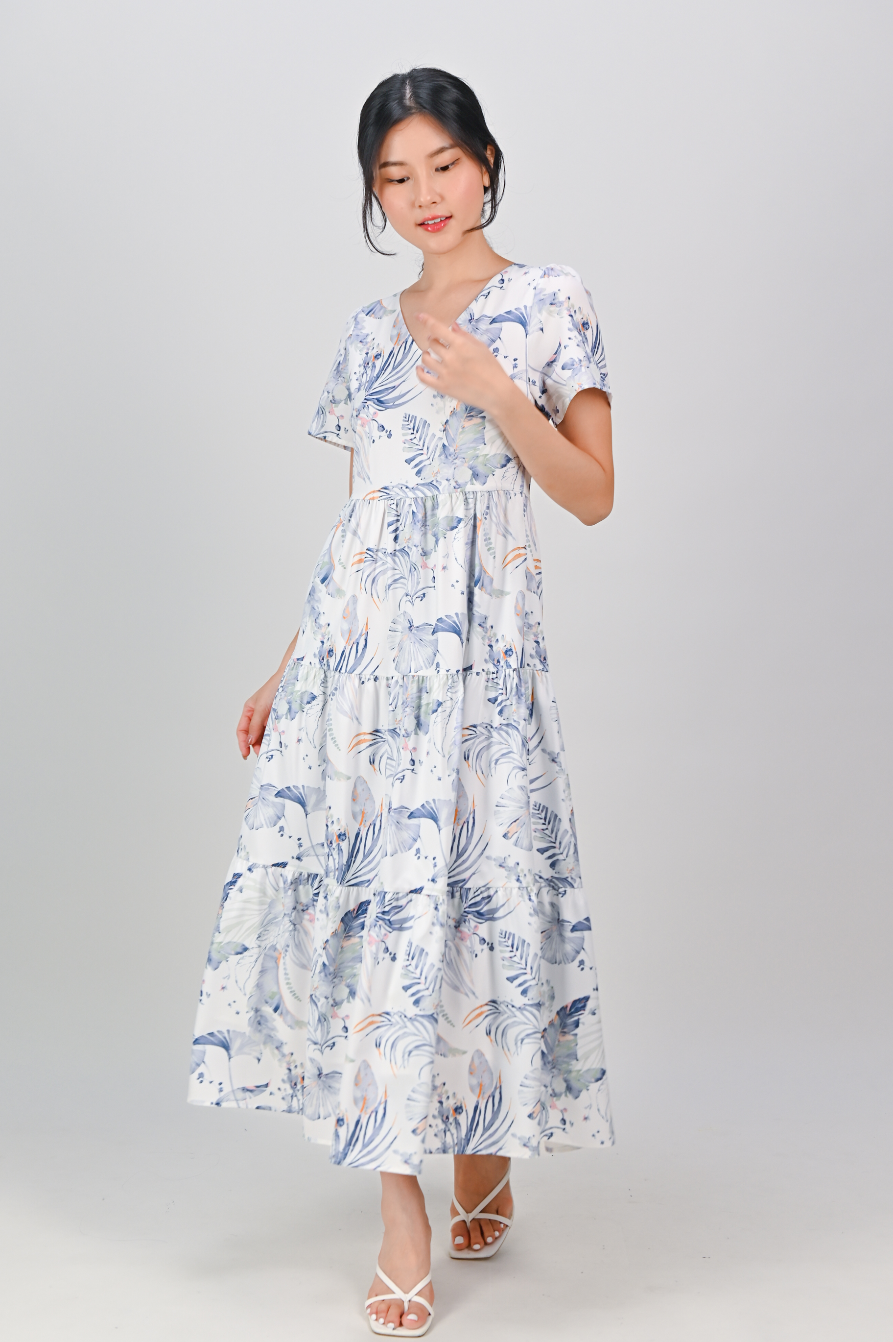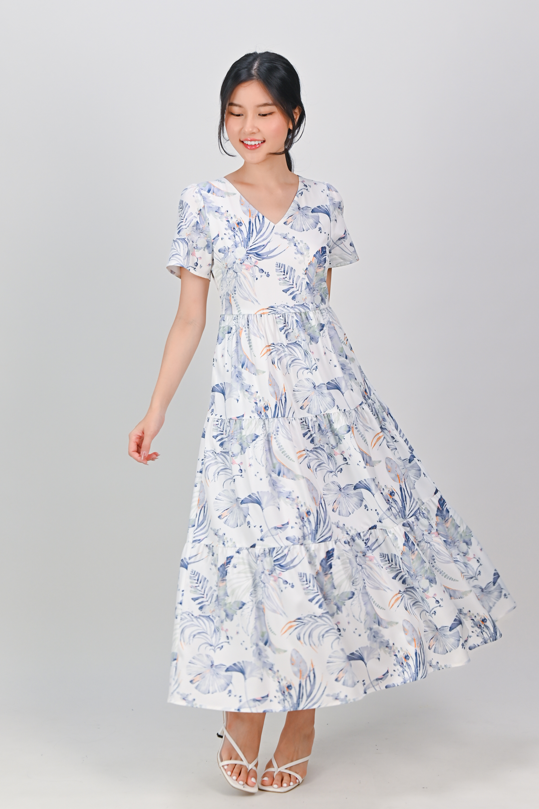 BLUE VALENTINE V-NECK TIERED MIDAXI DRESS