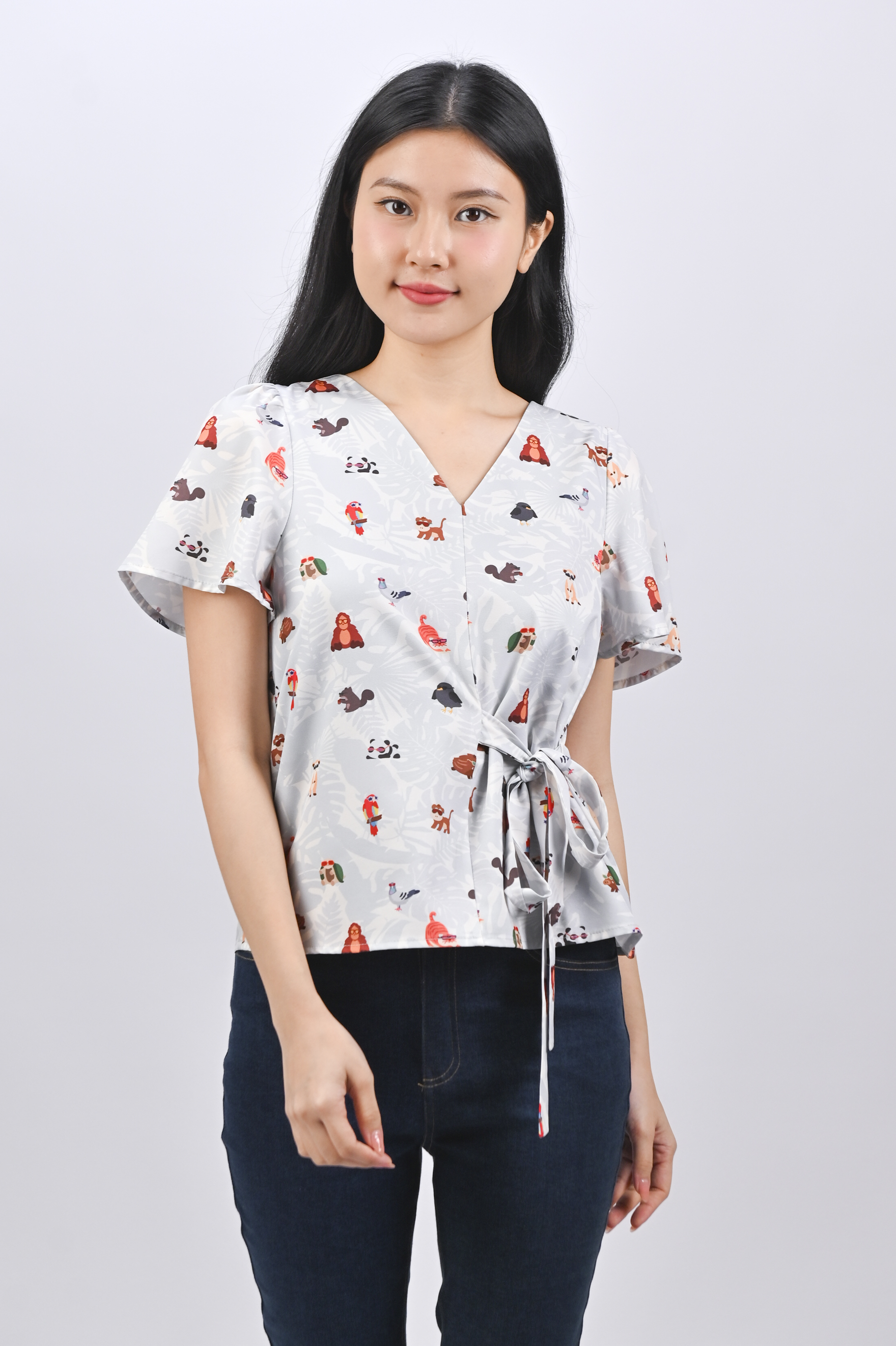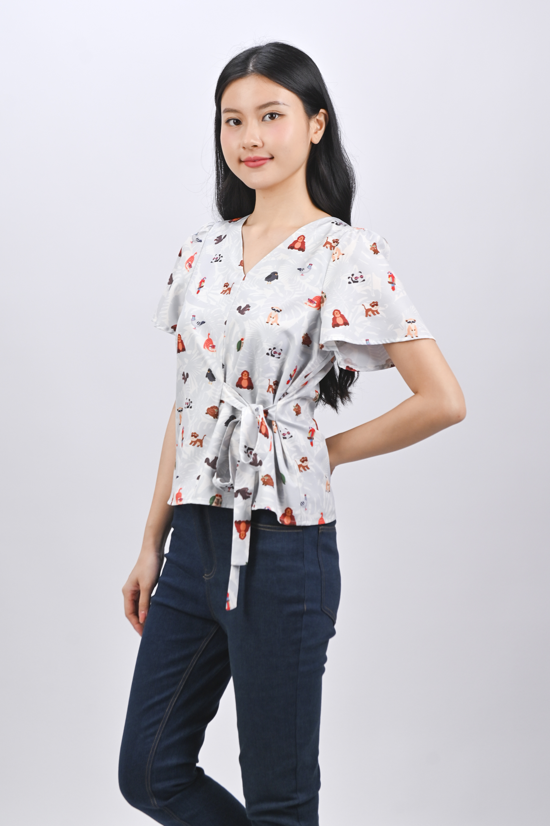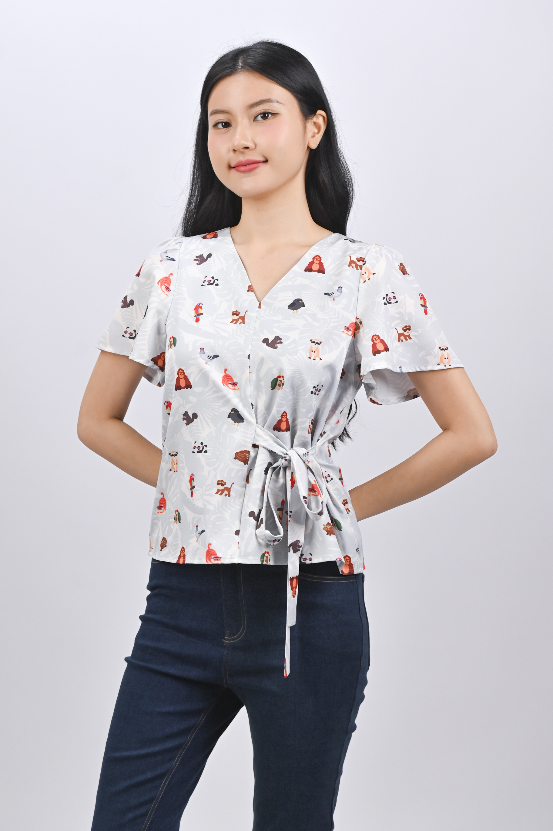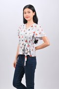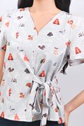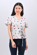 BLUE ZOOPERSTARS SLEEVED TIE-SASH TOP