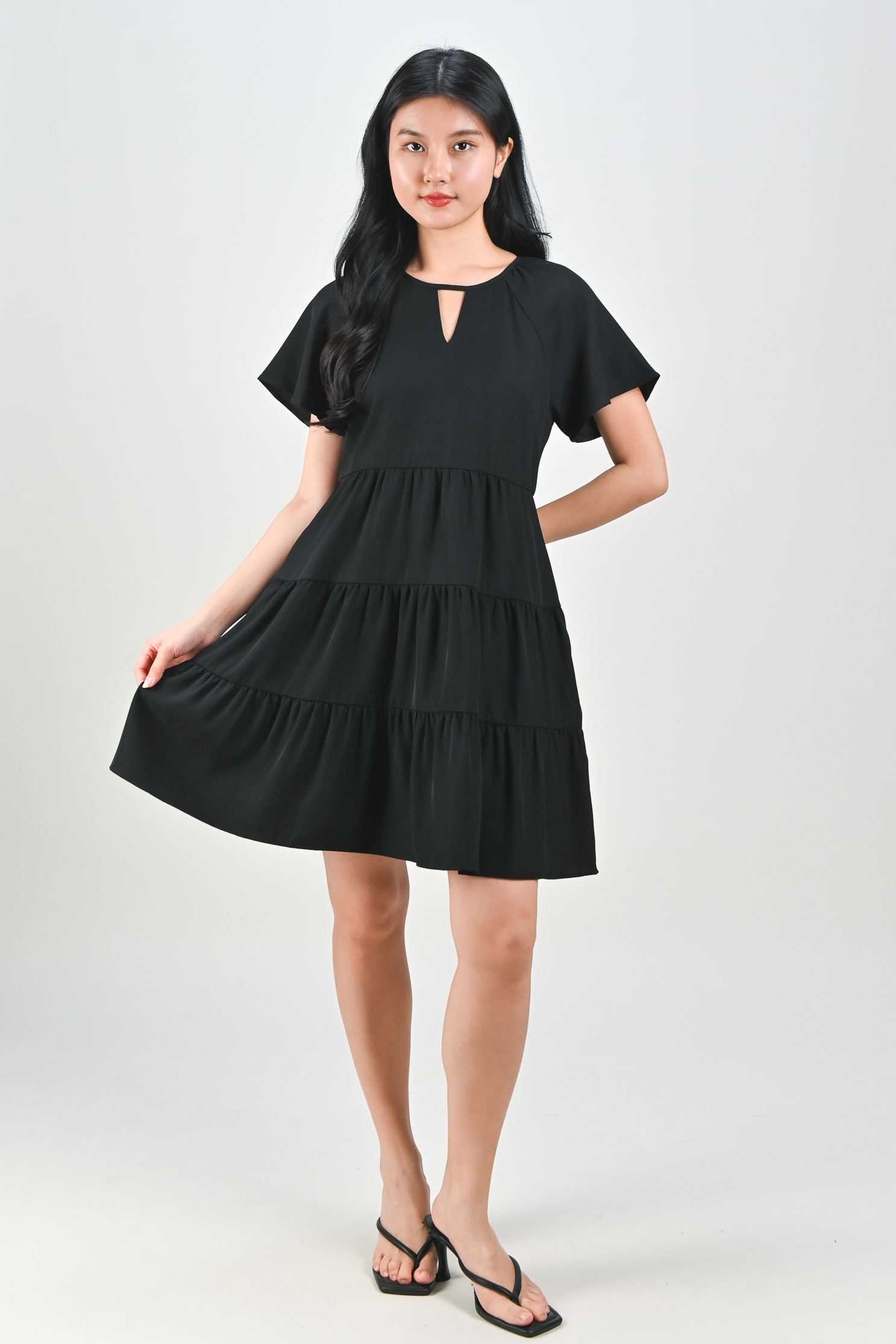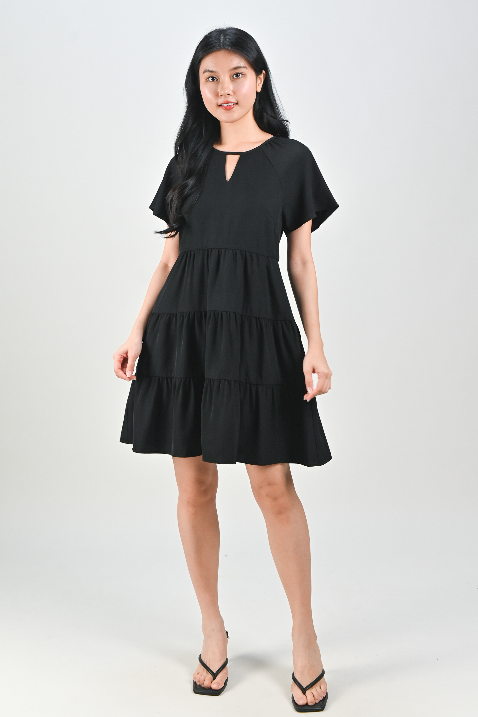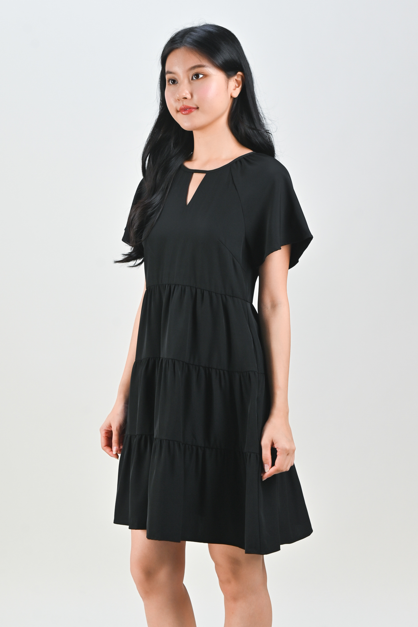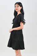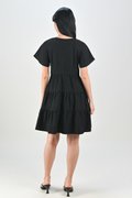 BONNA SLEEVED KEYHOLE TIERED DRESS IN BLACK