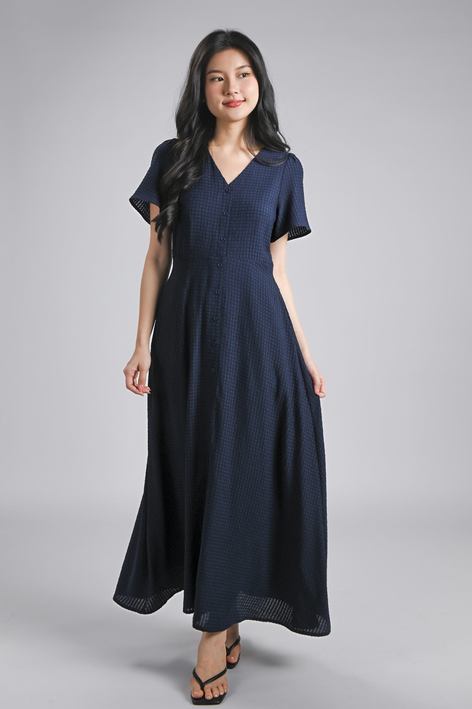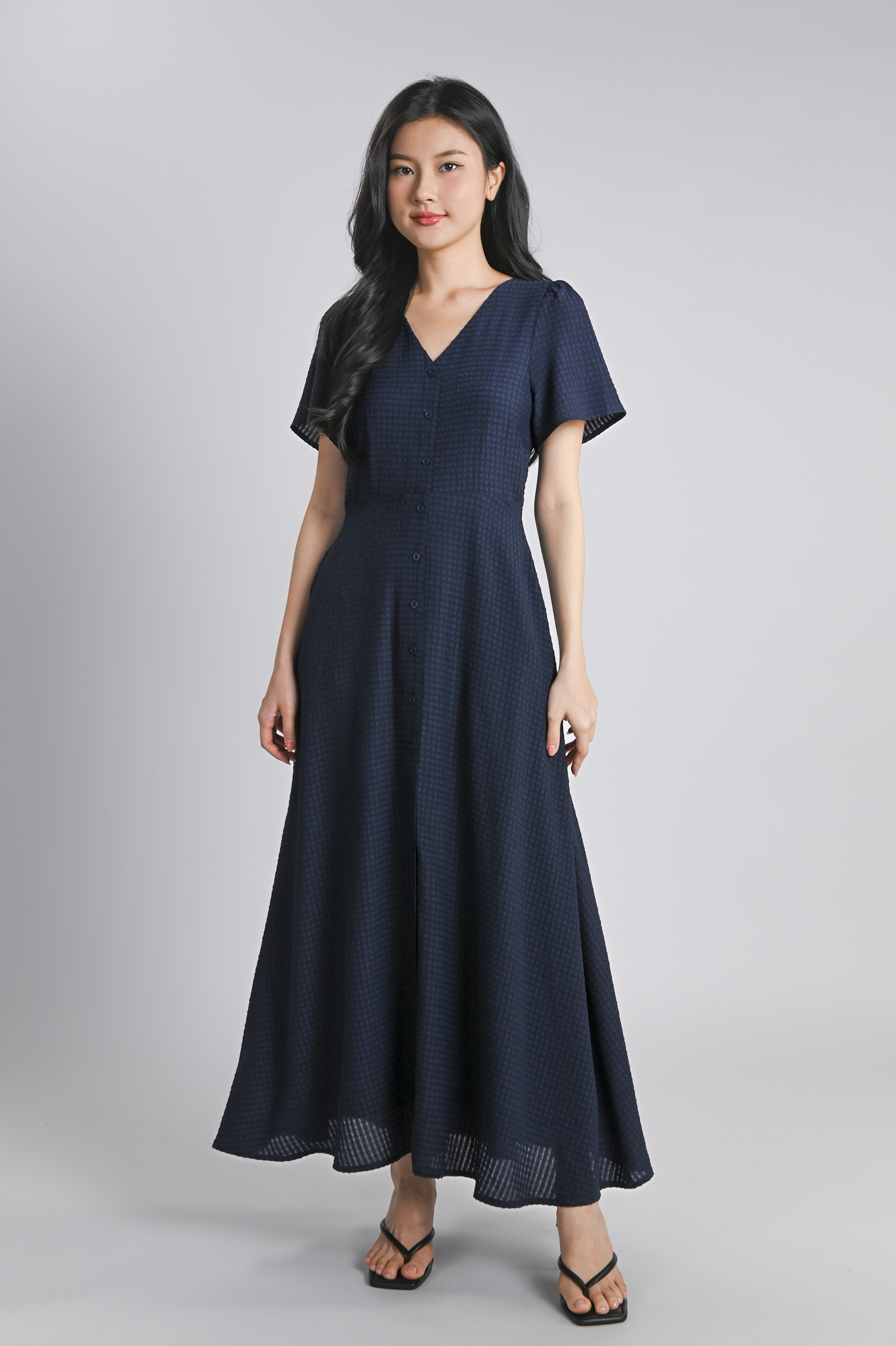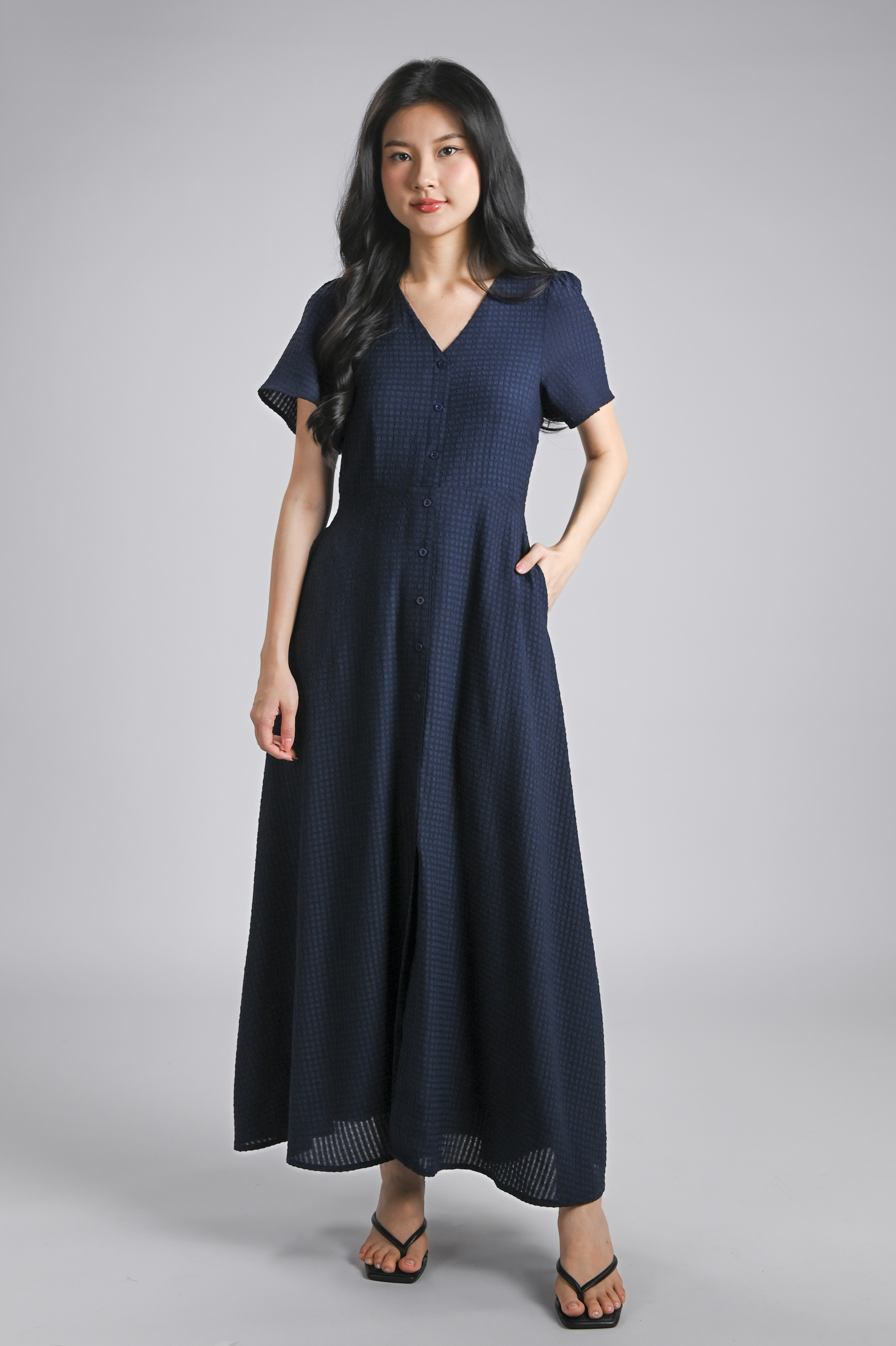 BRANDIE TEXTURED MAXI DRESS IN NAVY
