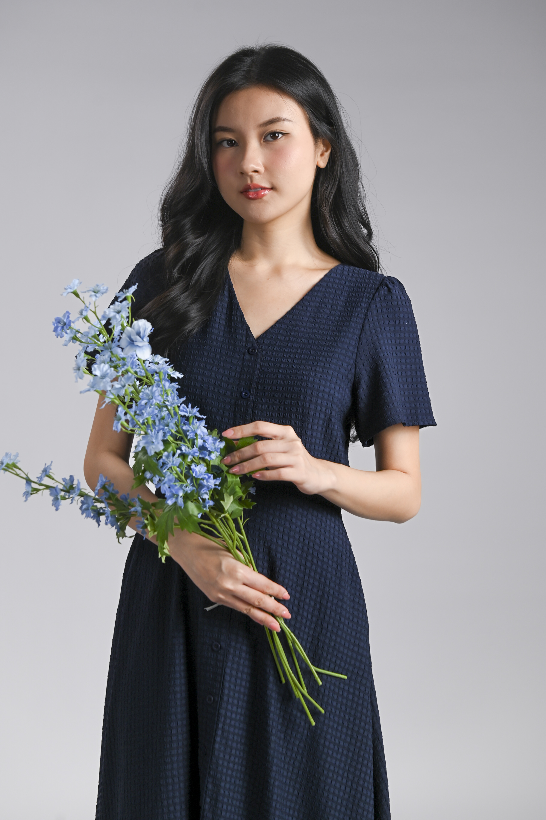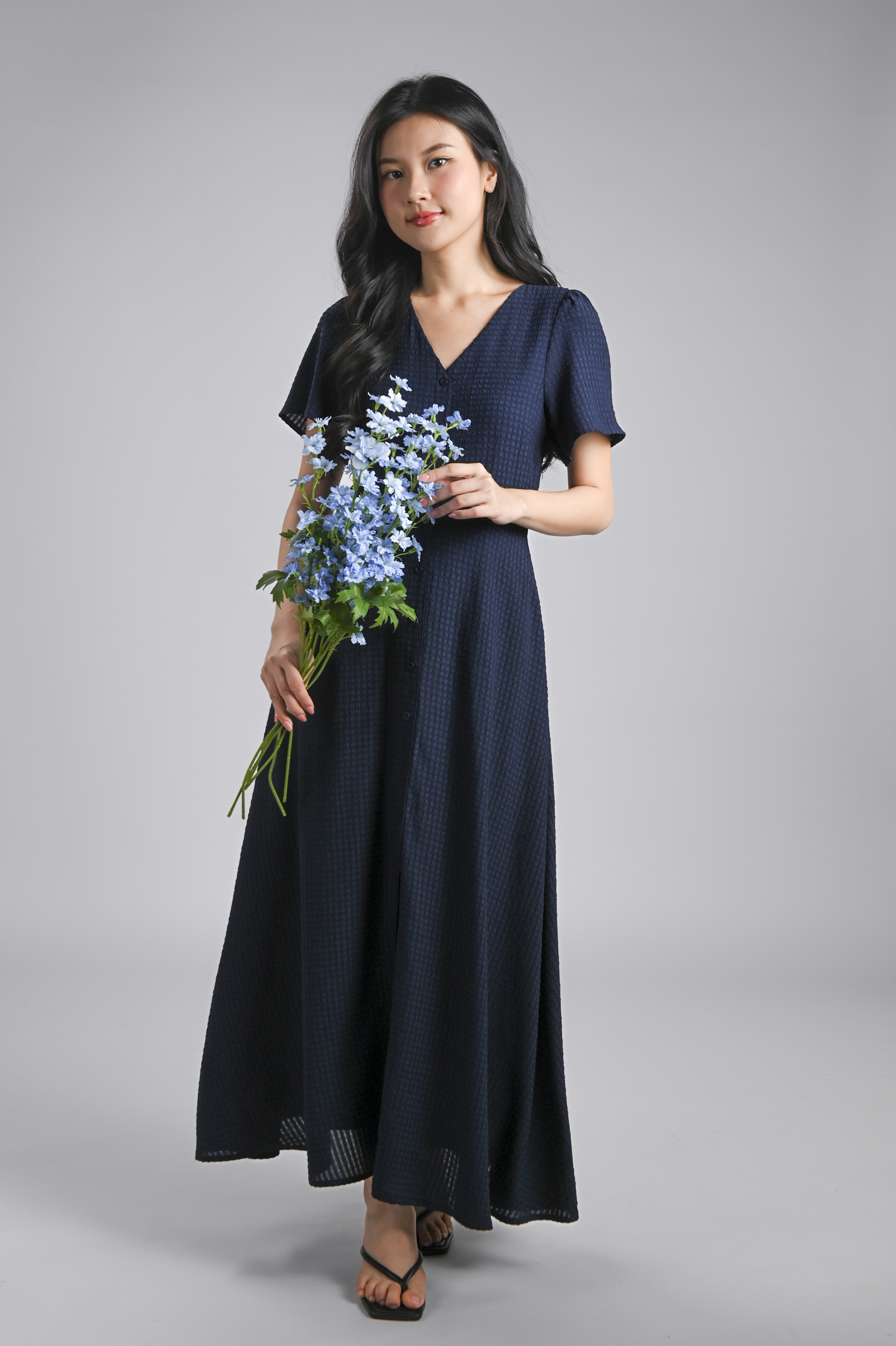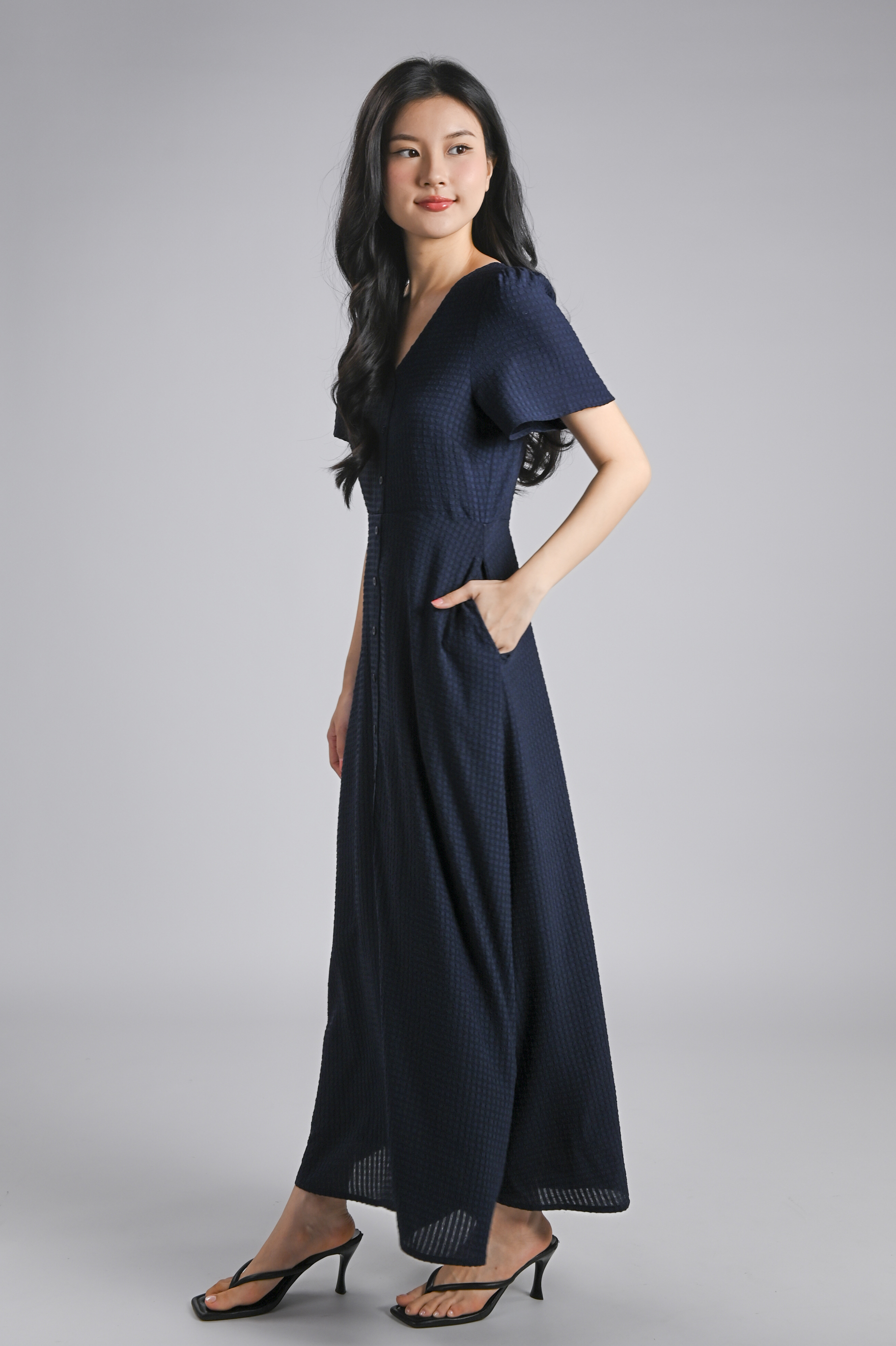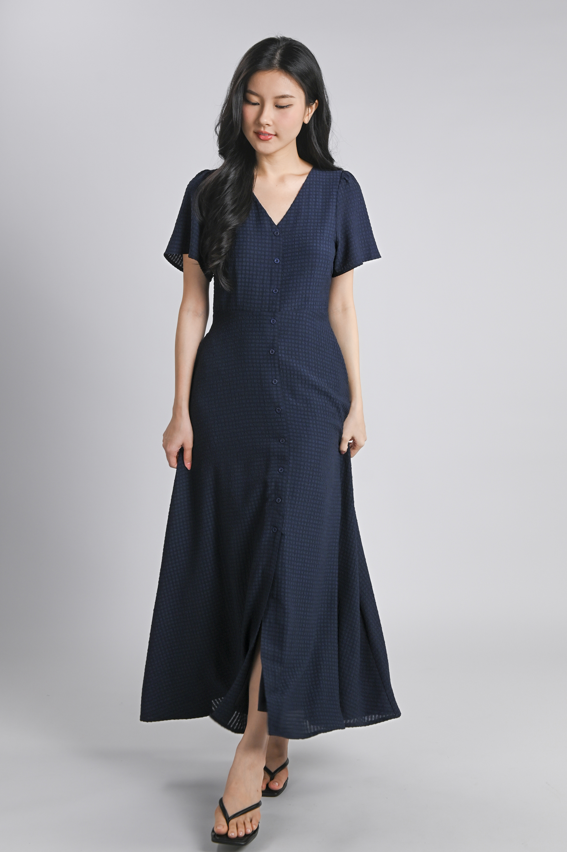 BRANDIE TEXTURED MAXI DRESS IN NAVY
