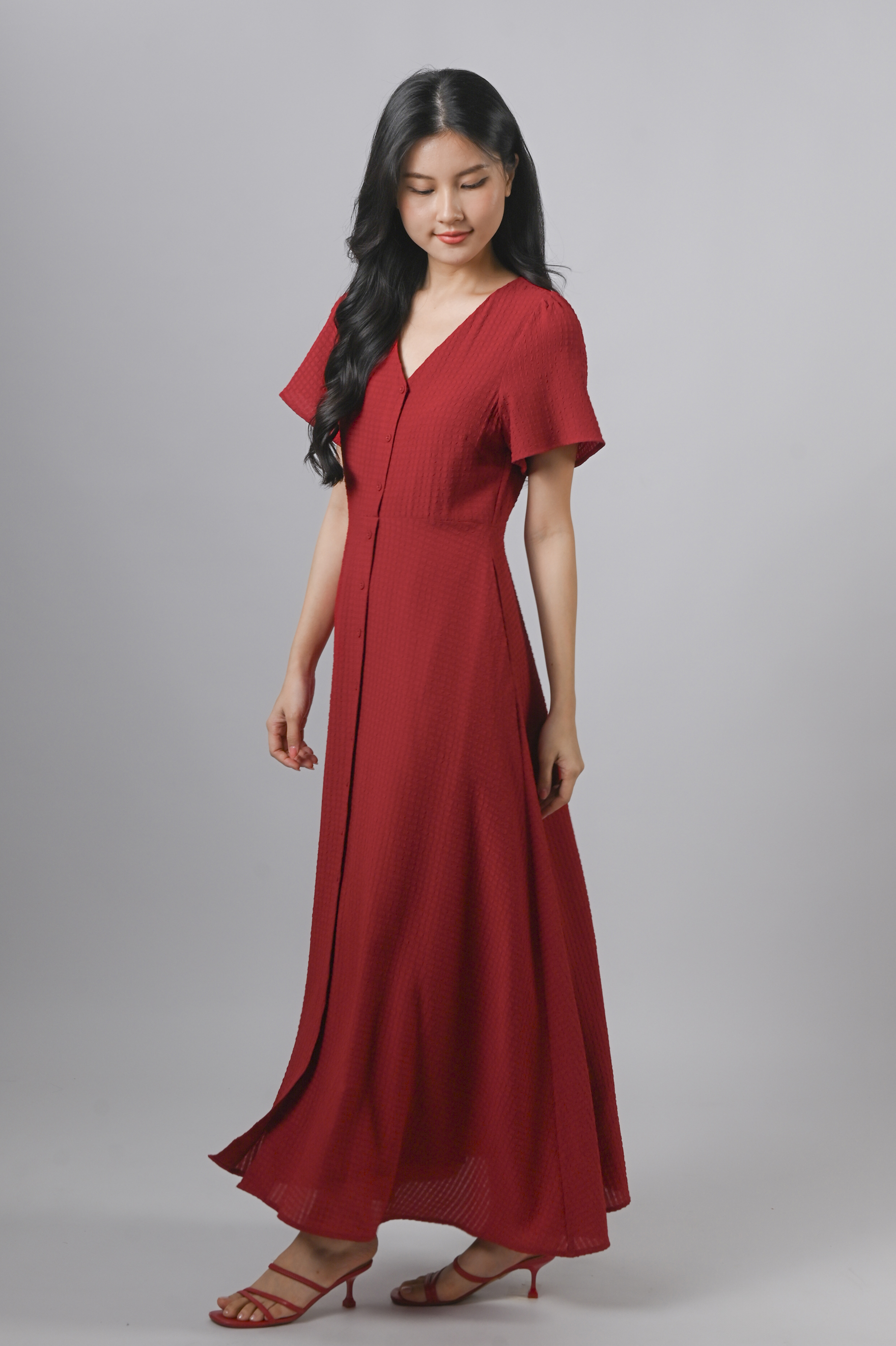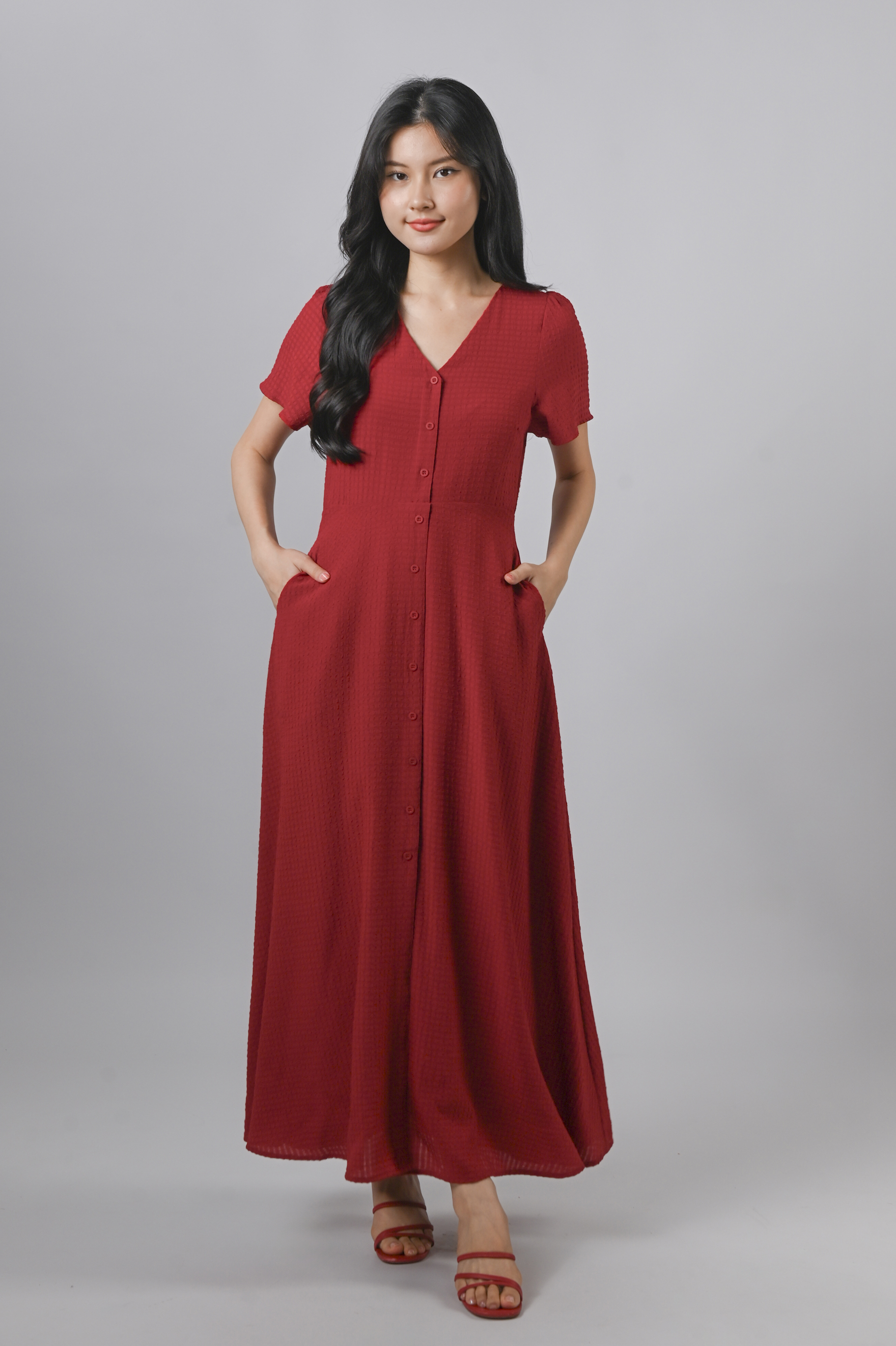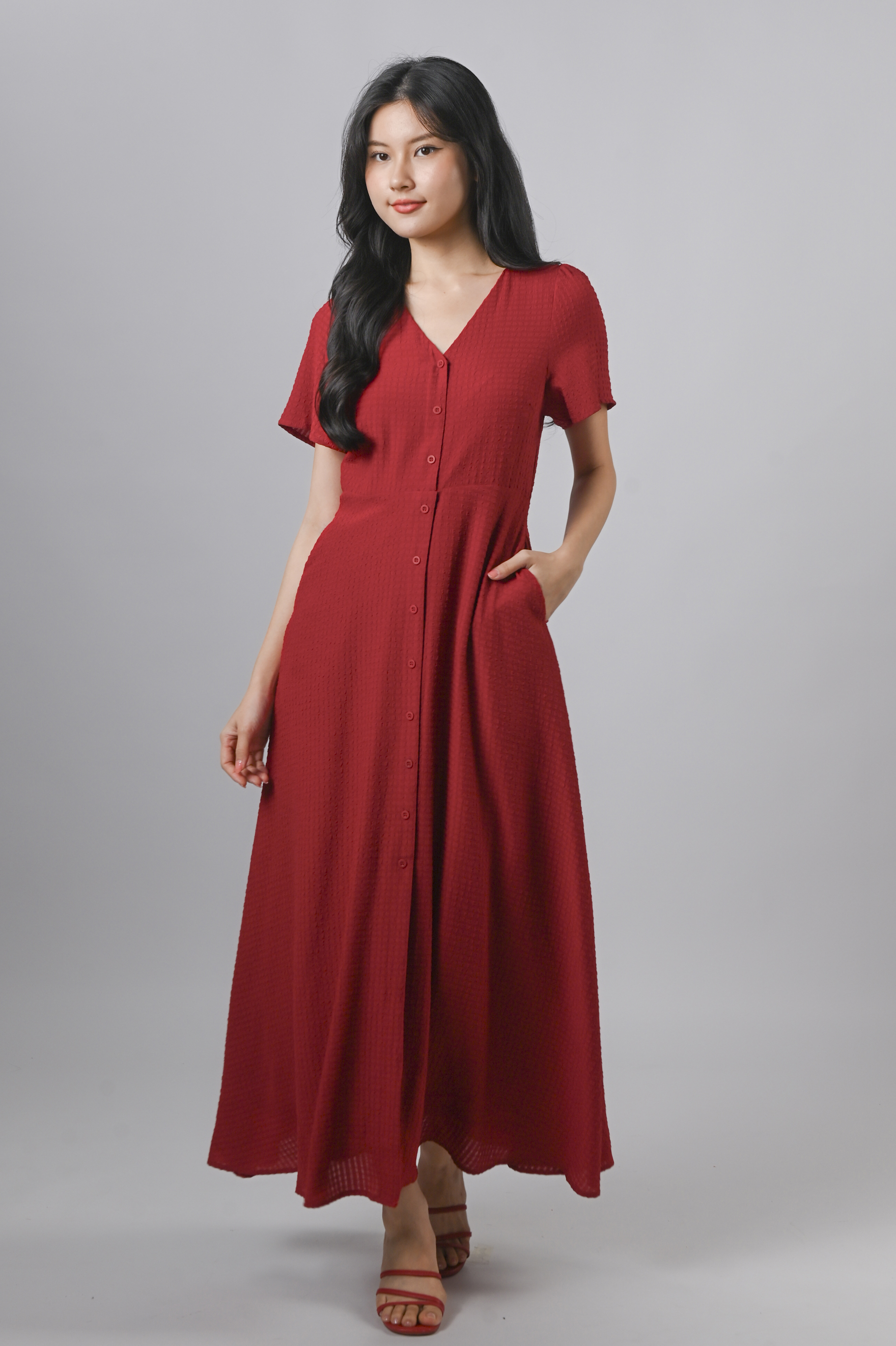 BRANDIE TEXTURED MAXI DRESS IN RED