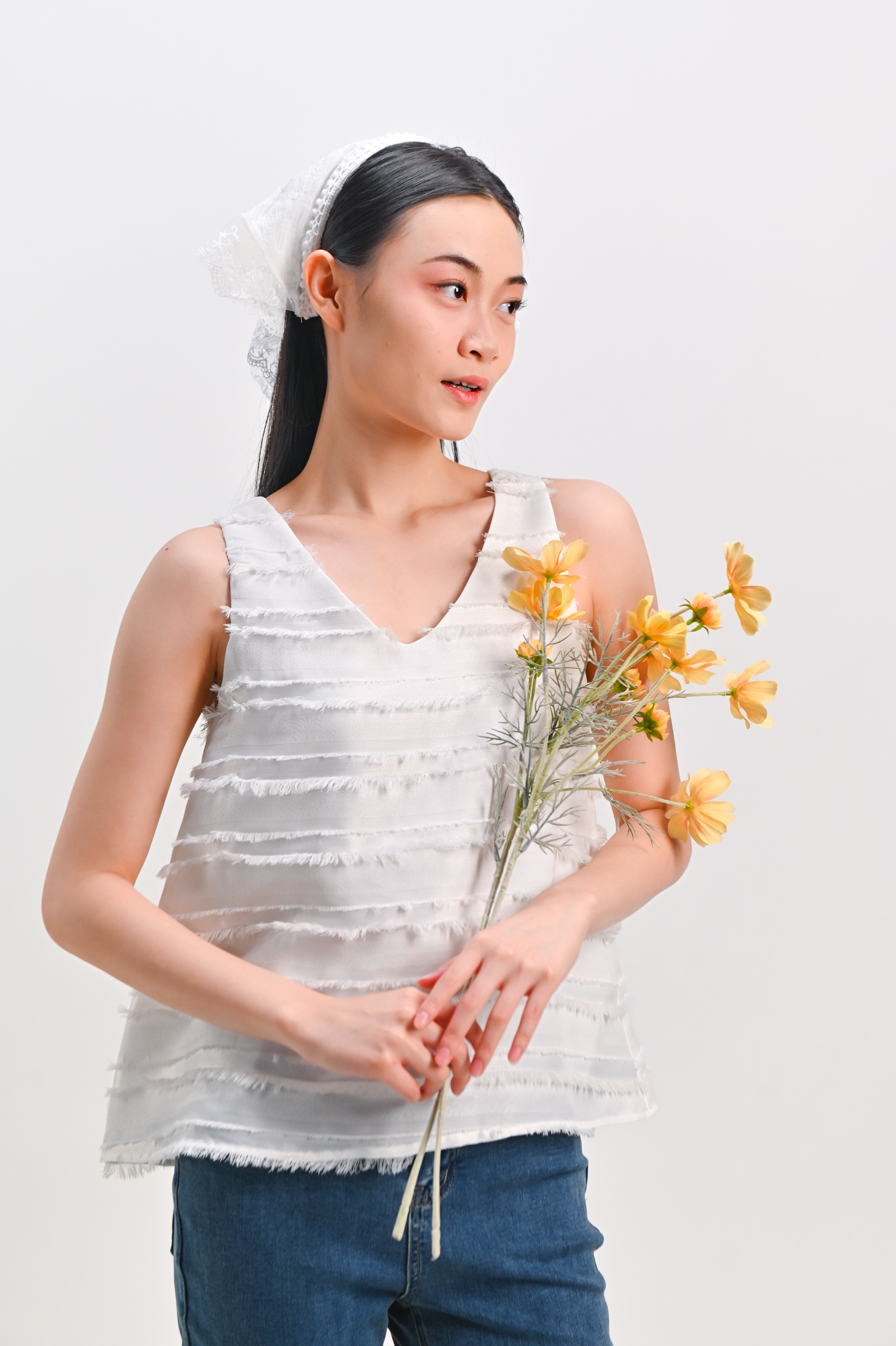BRIA TEXTURED TWO-WAY TOP IN WHITE