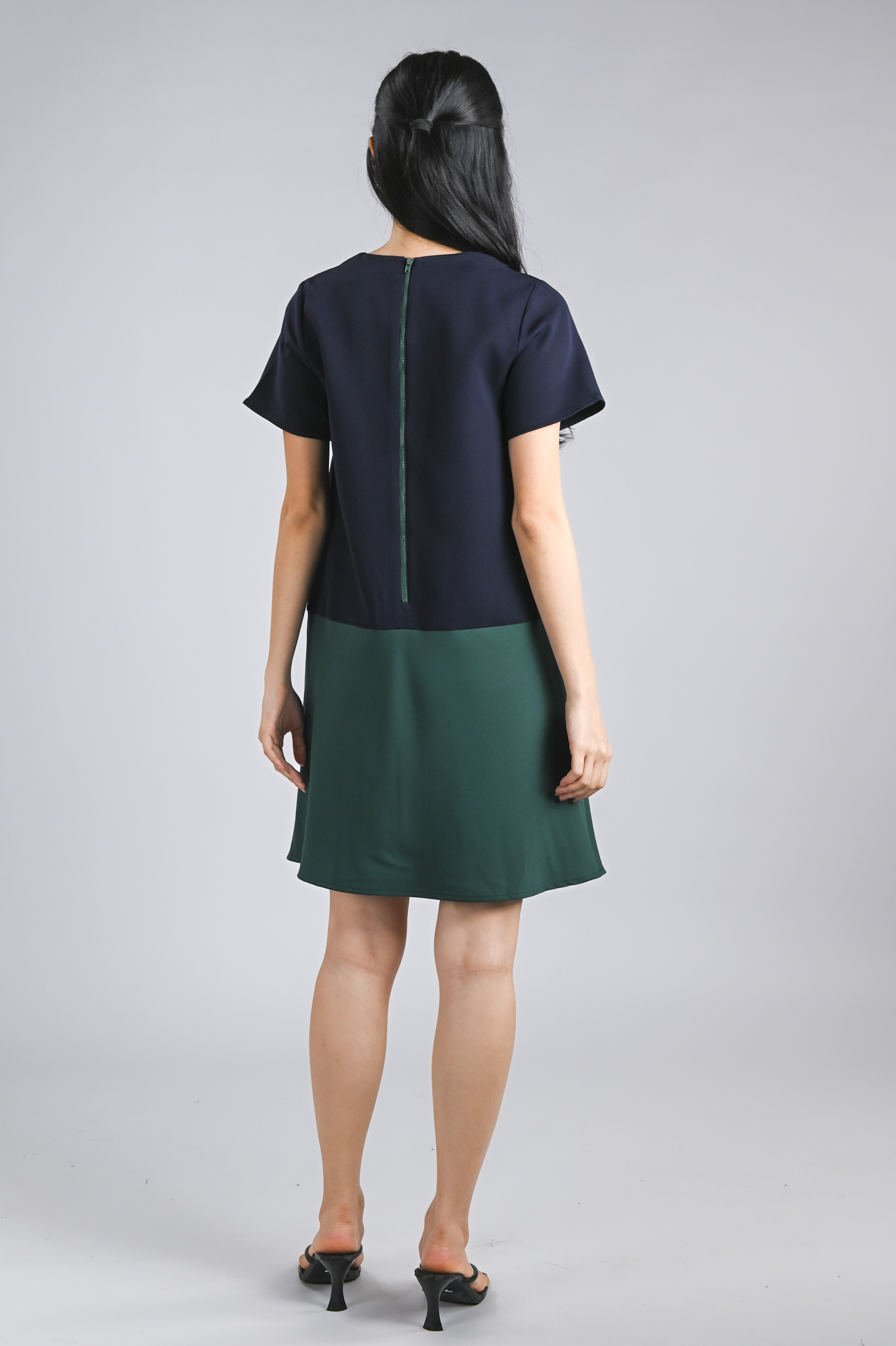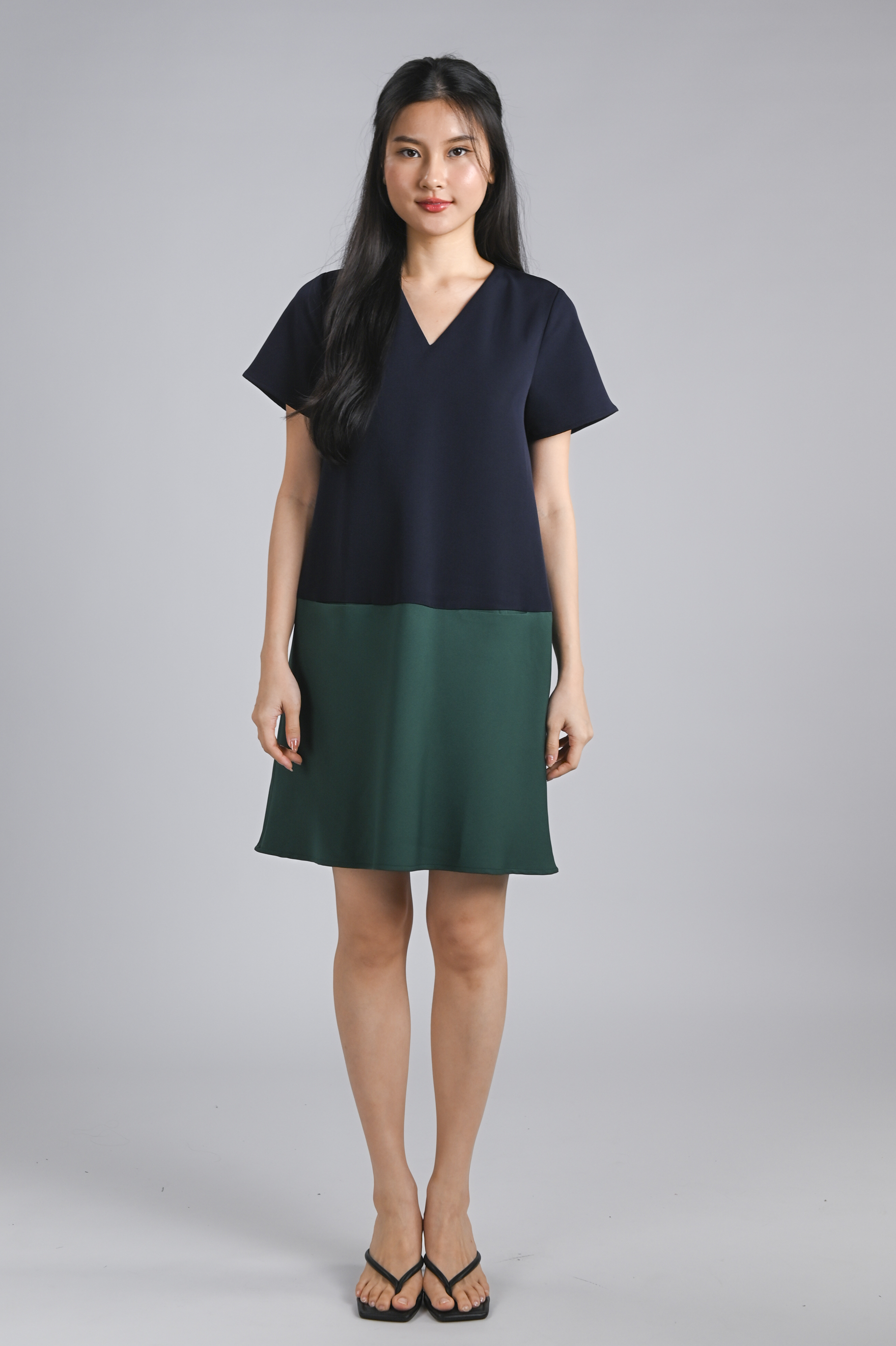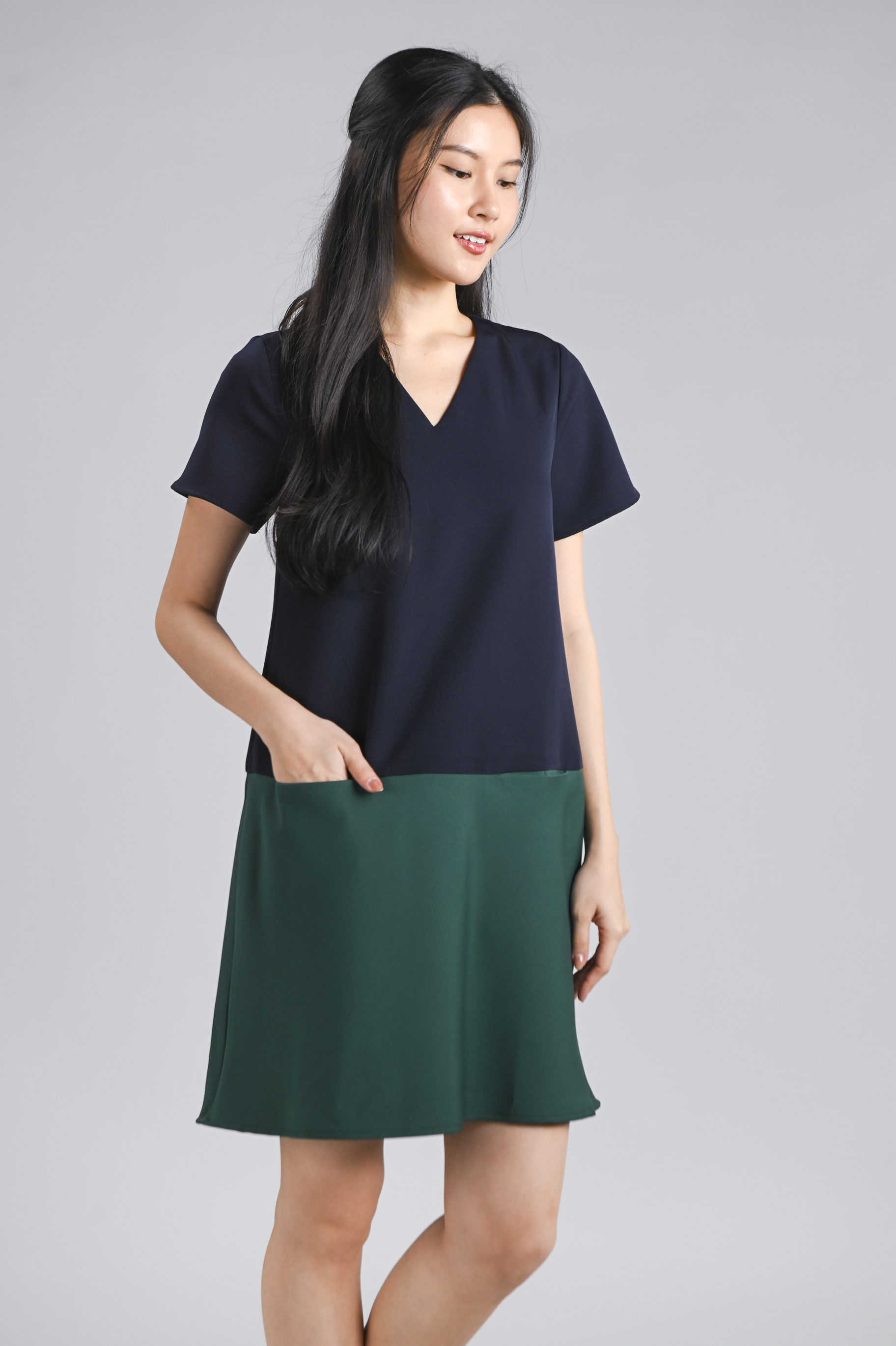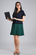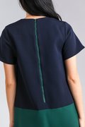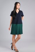 BRIGHTON SLEEVED SHIFT DRESS IN NAVY+GREEN