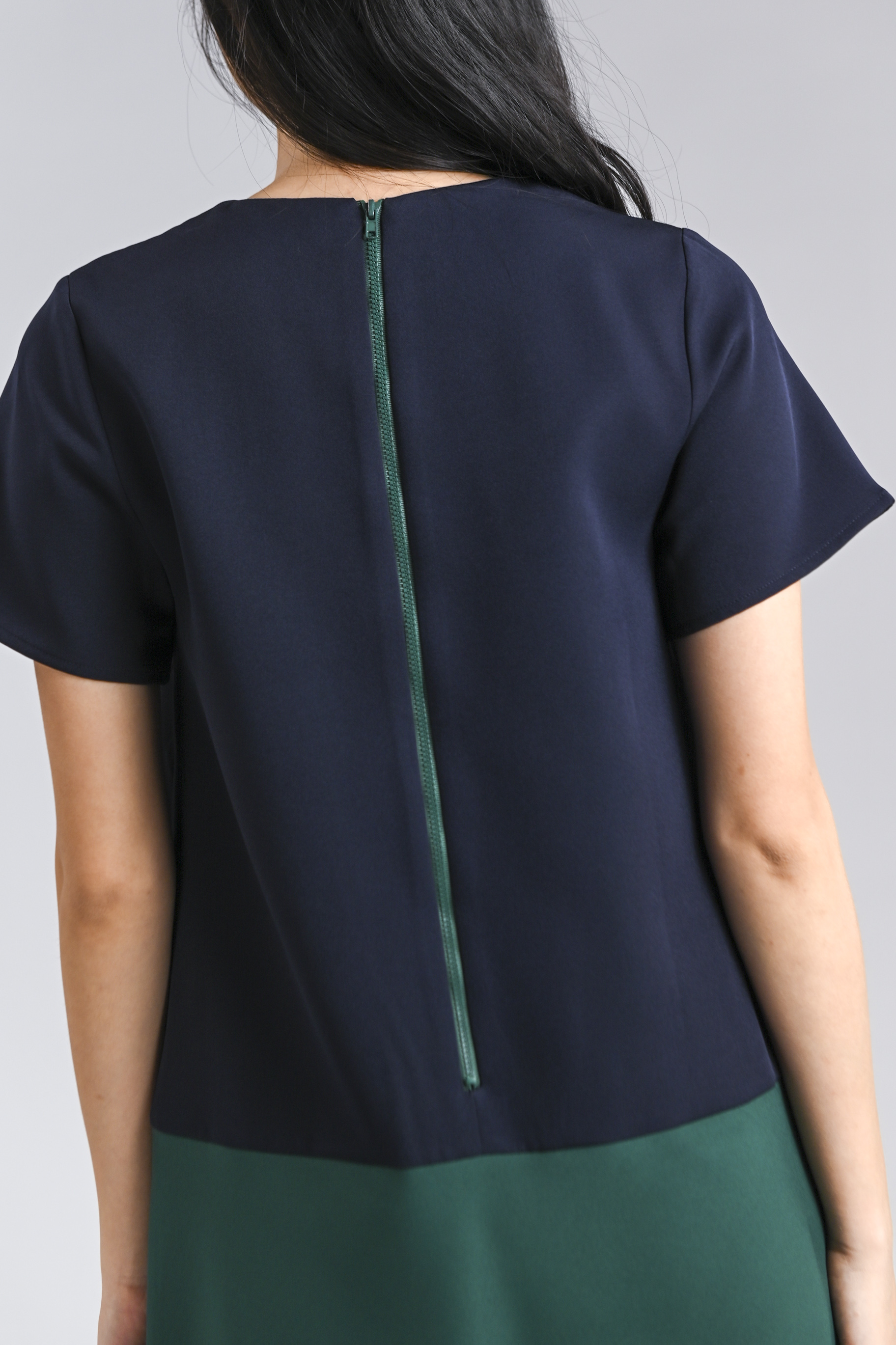 - Exposed back zip