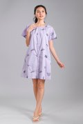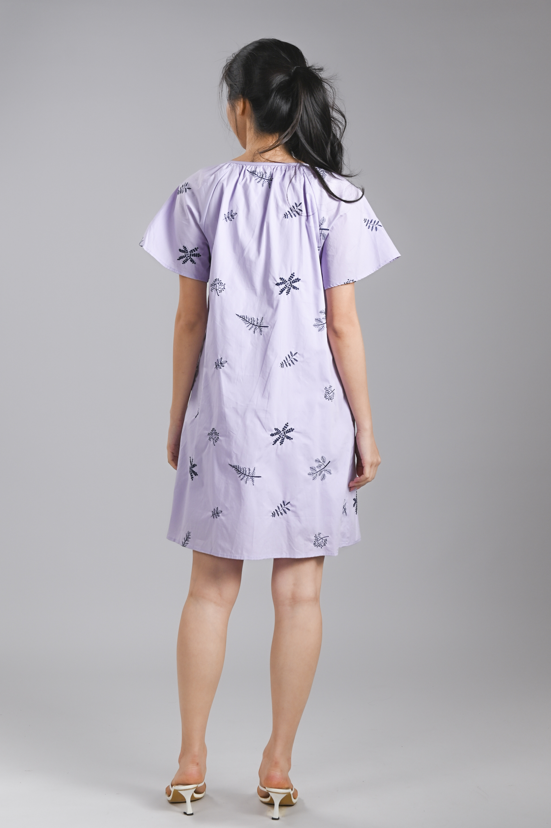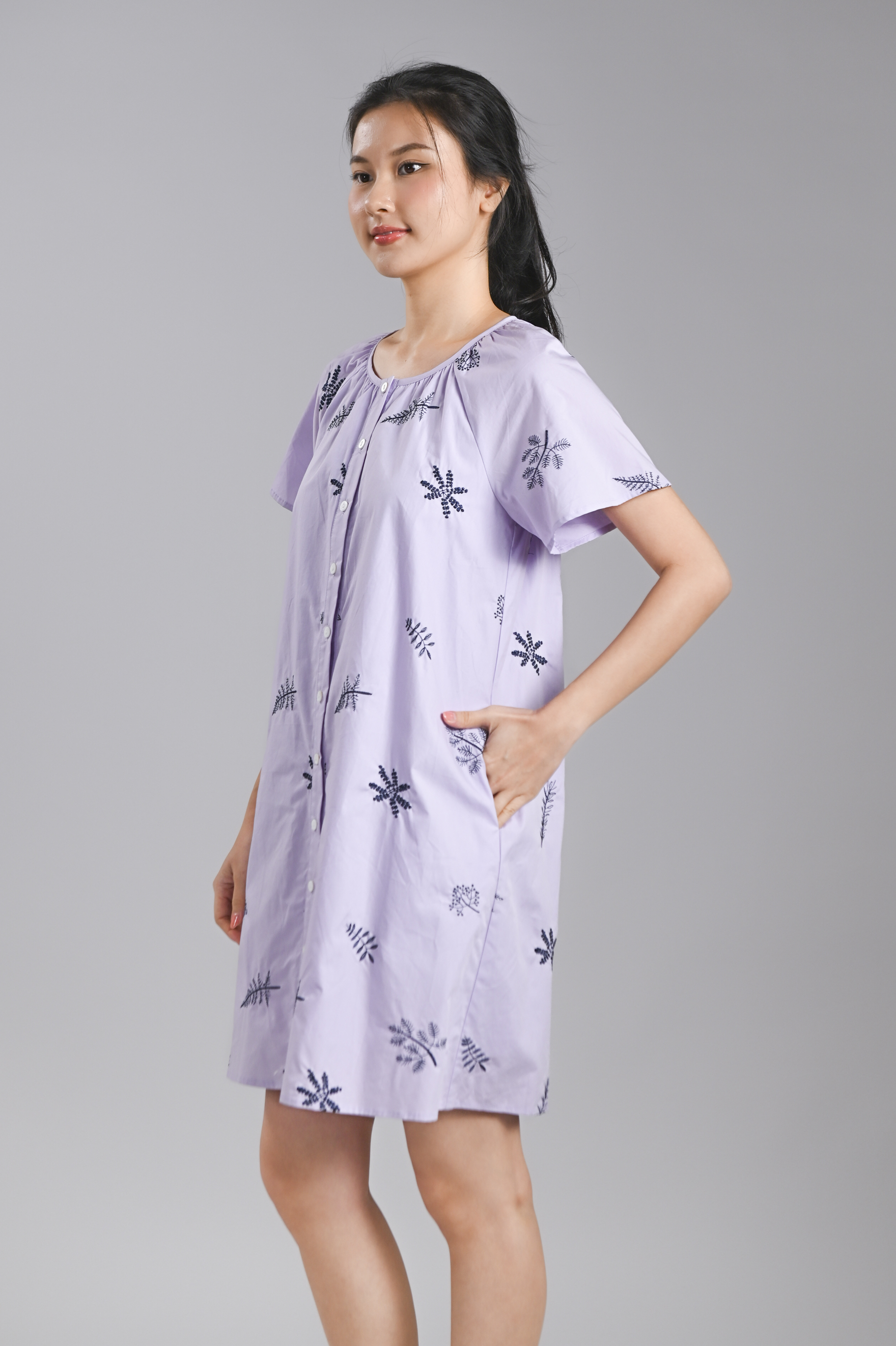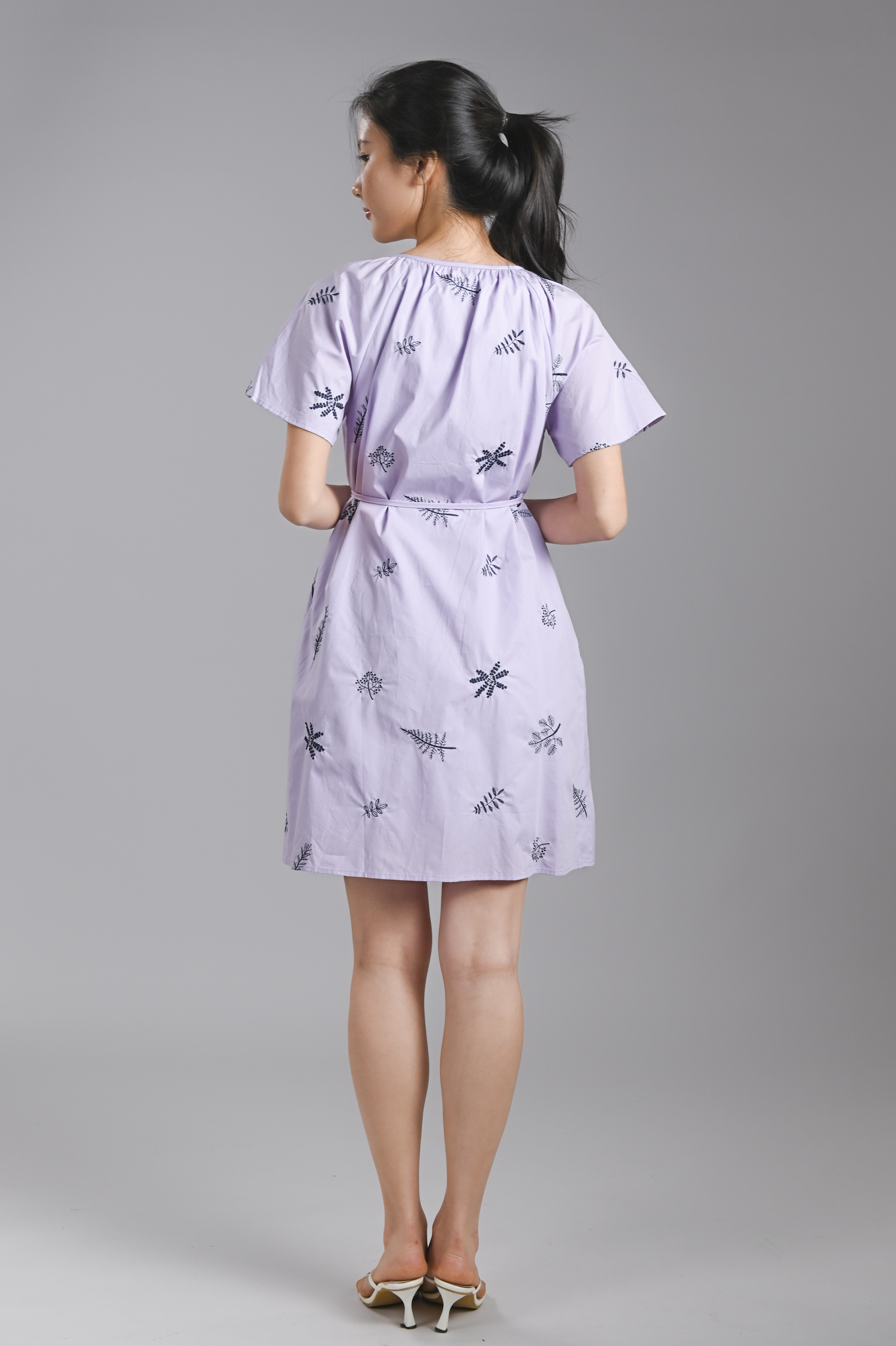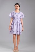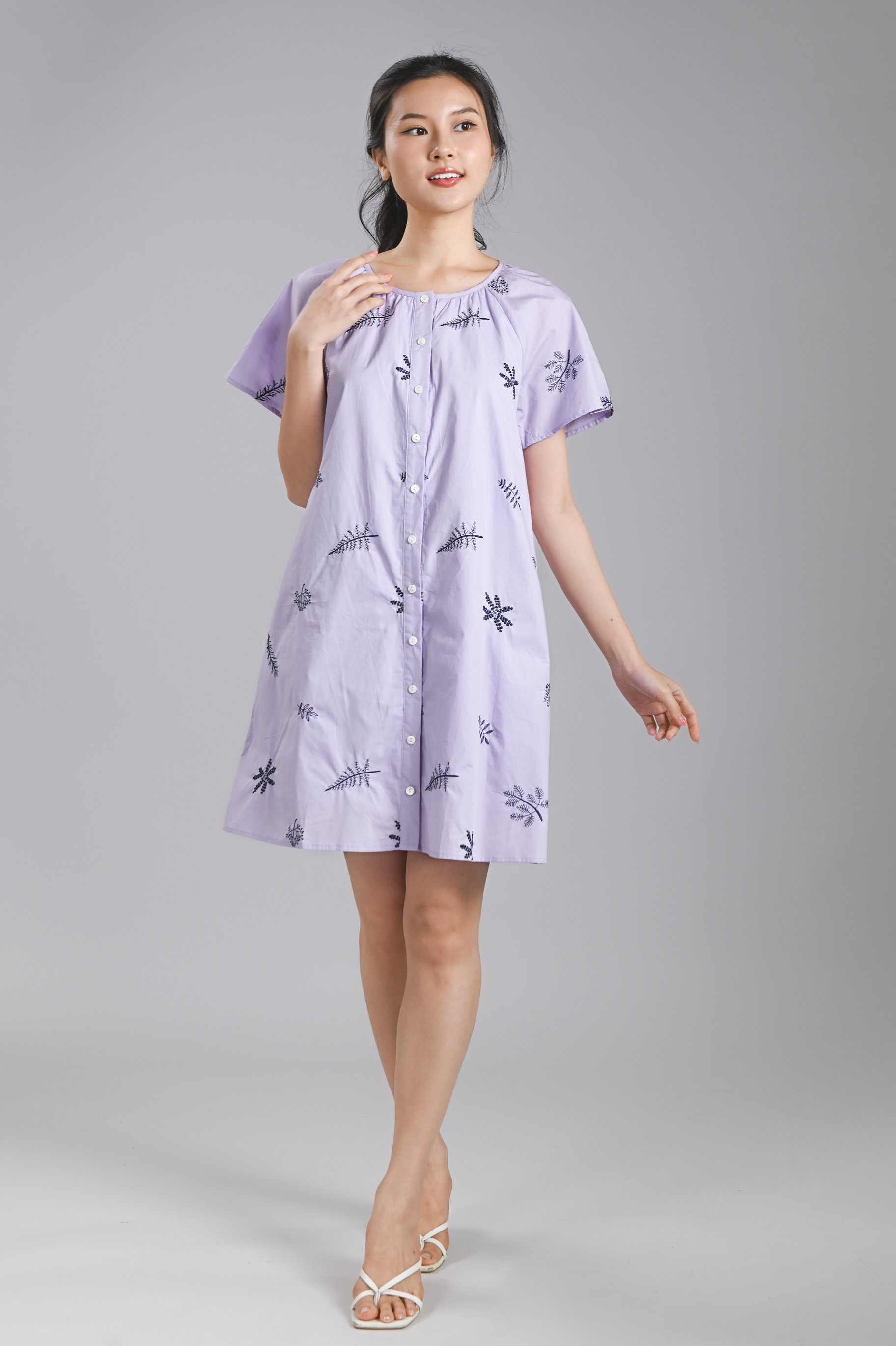 BRYELLE EMB. SLEEVED BUTTON DRESS IN LILAC