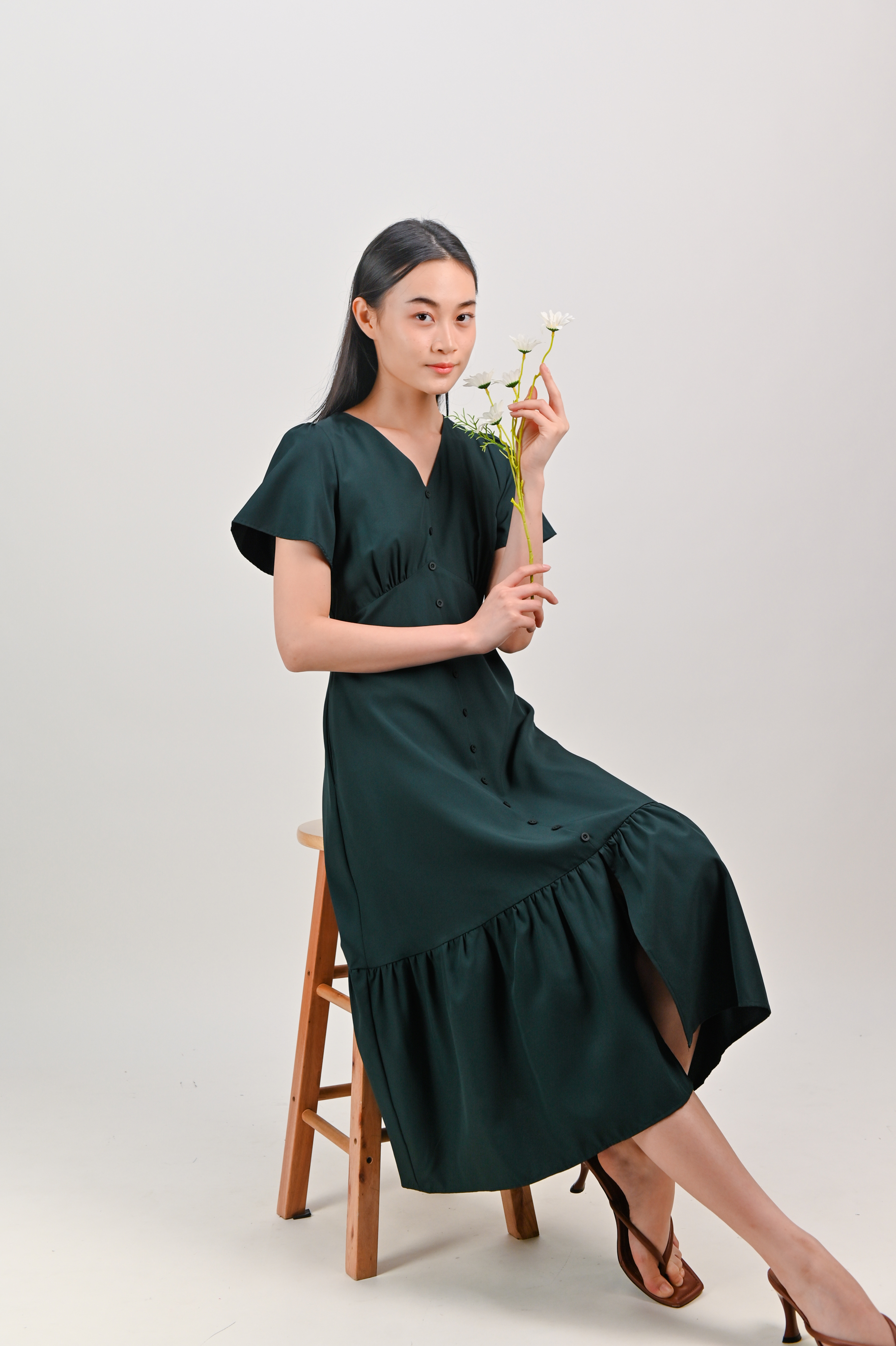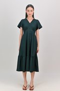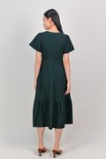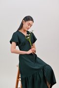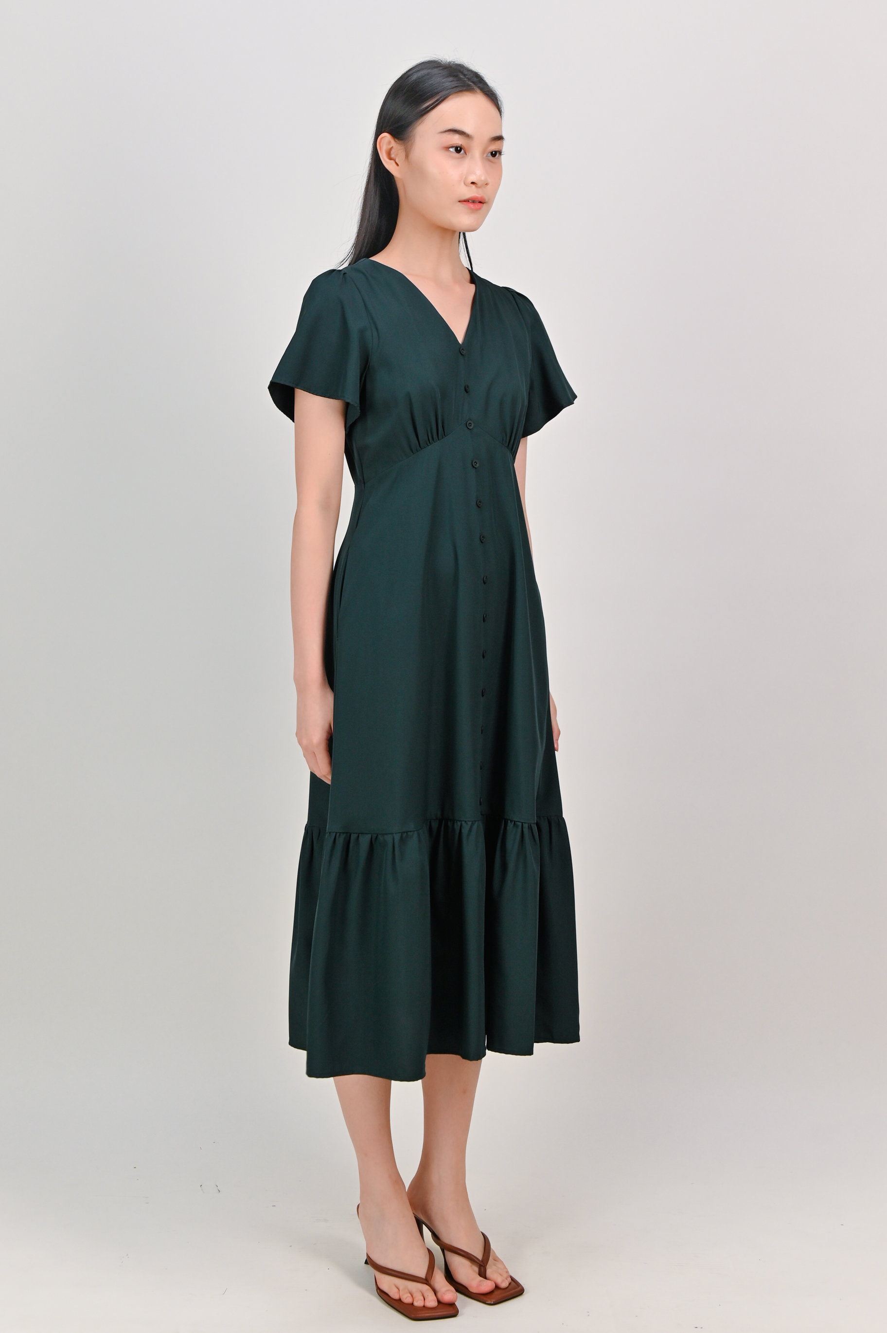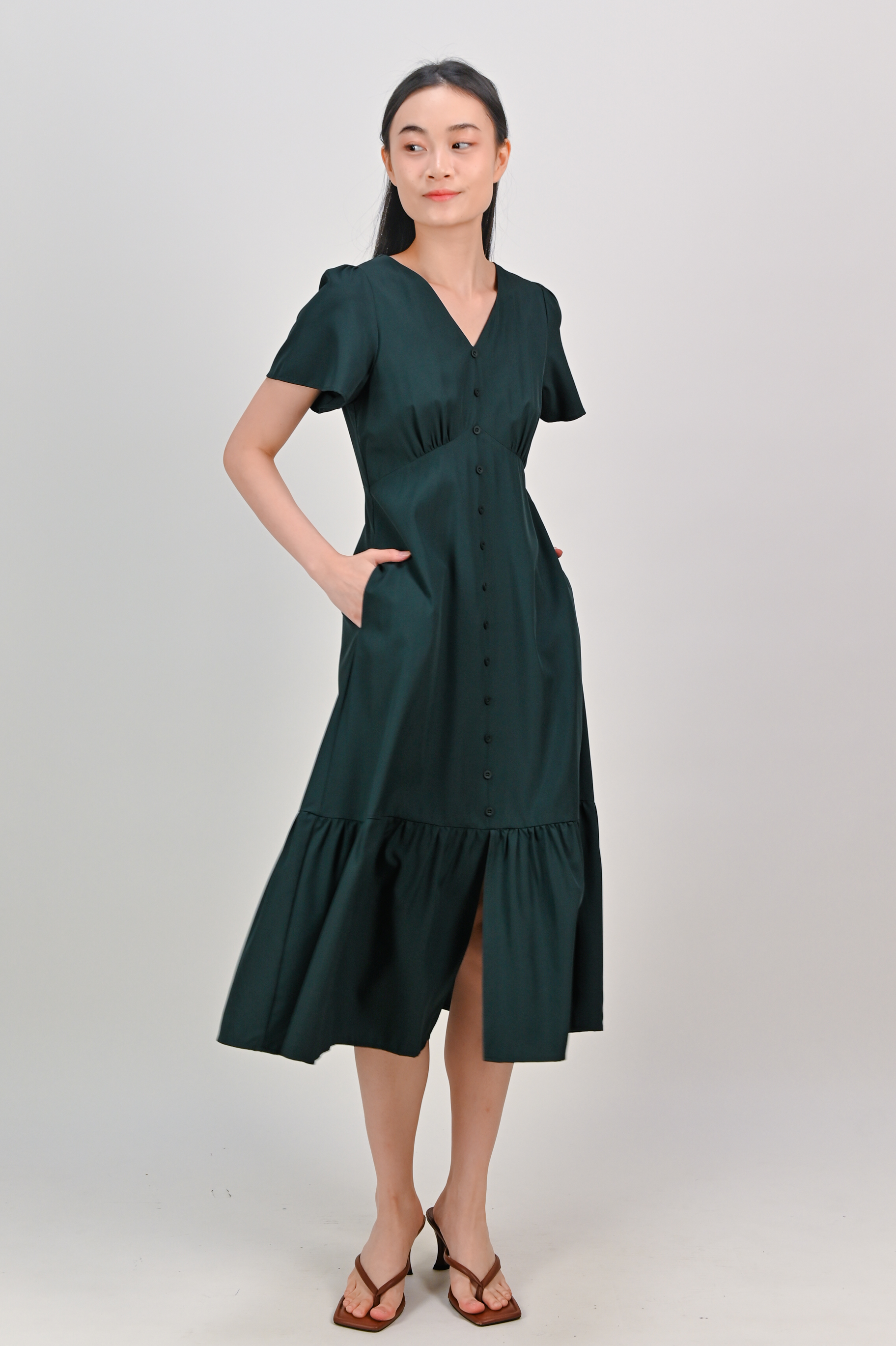 BYRNE SLEEVED BUTTON MIDI DRESS IN FOREST