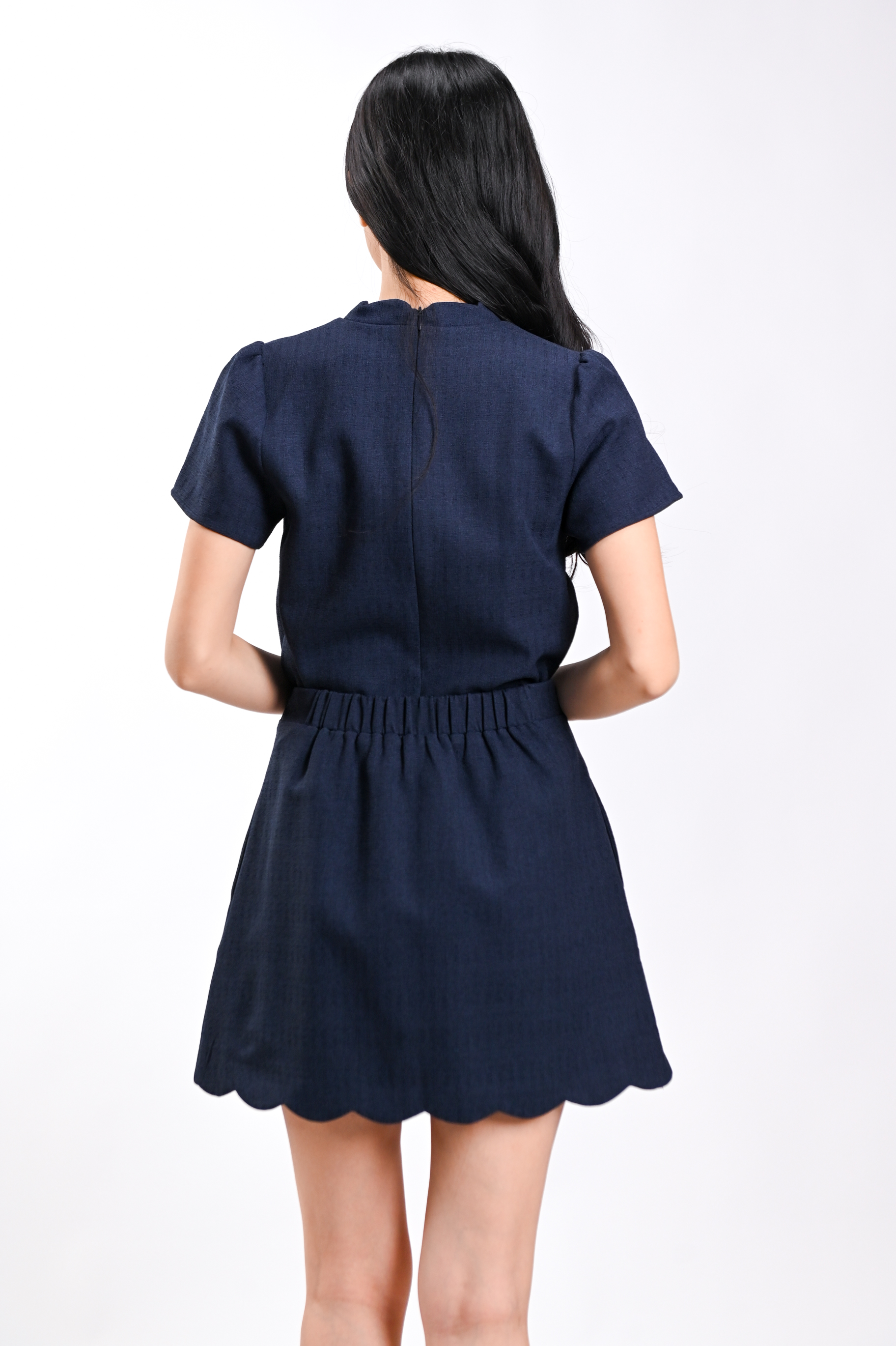 CAILIN SCALLOP ELASTIC-BACK SKORTS IN NAVY