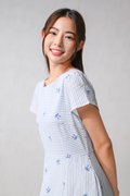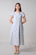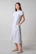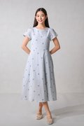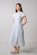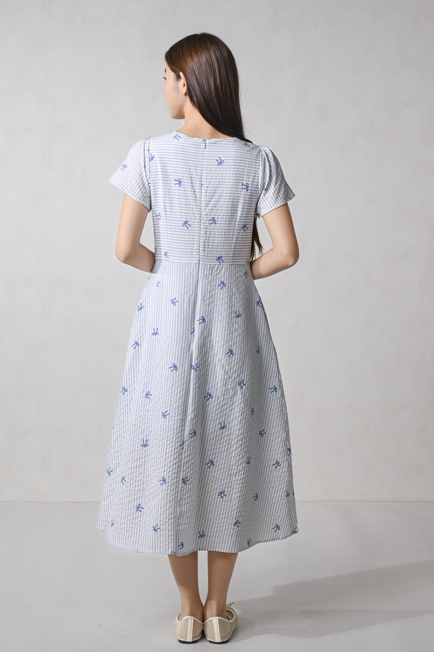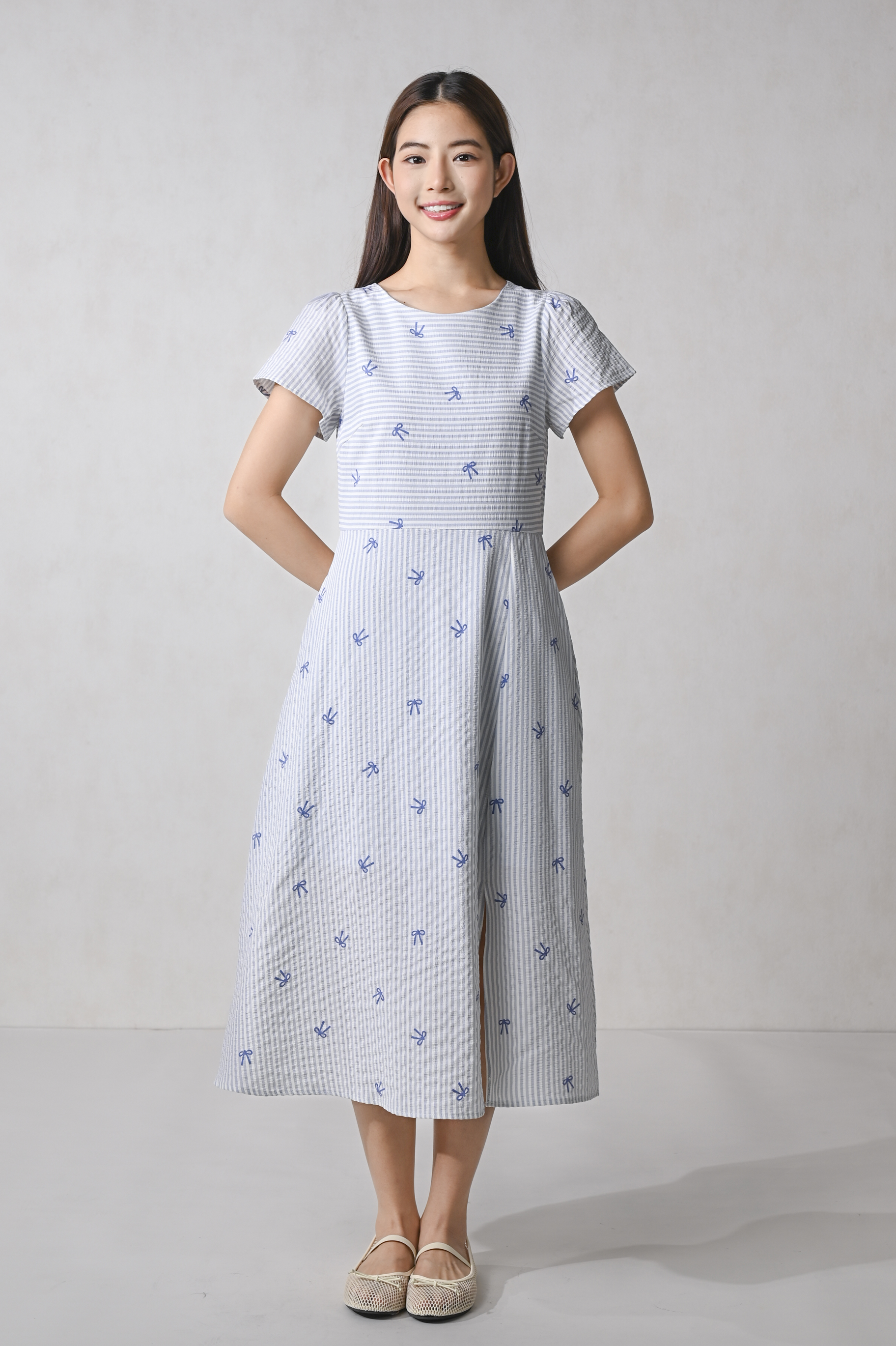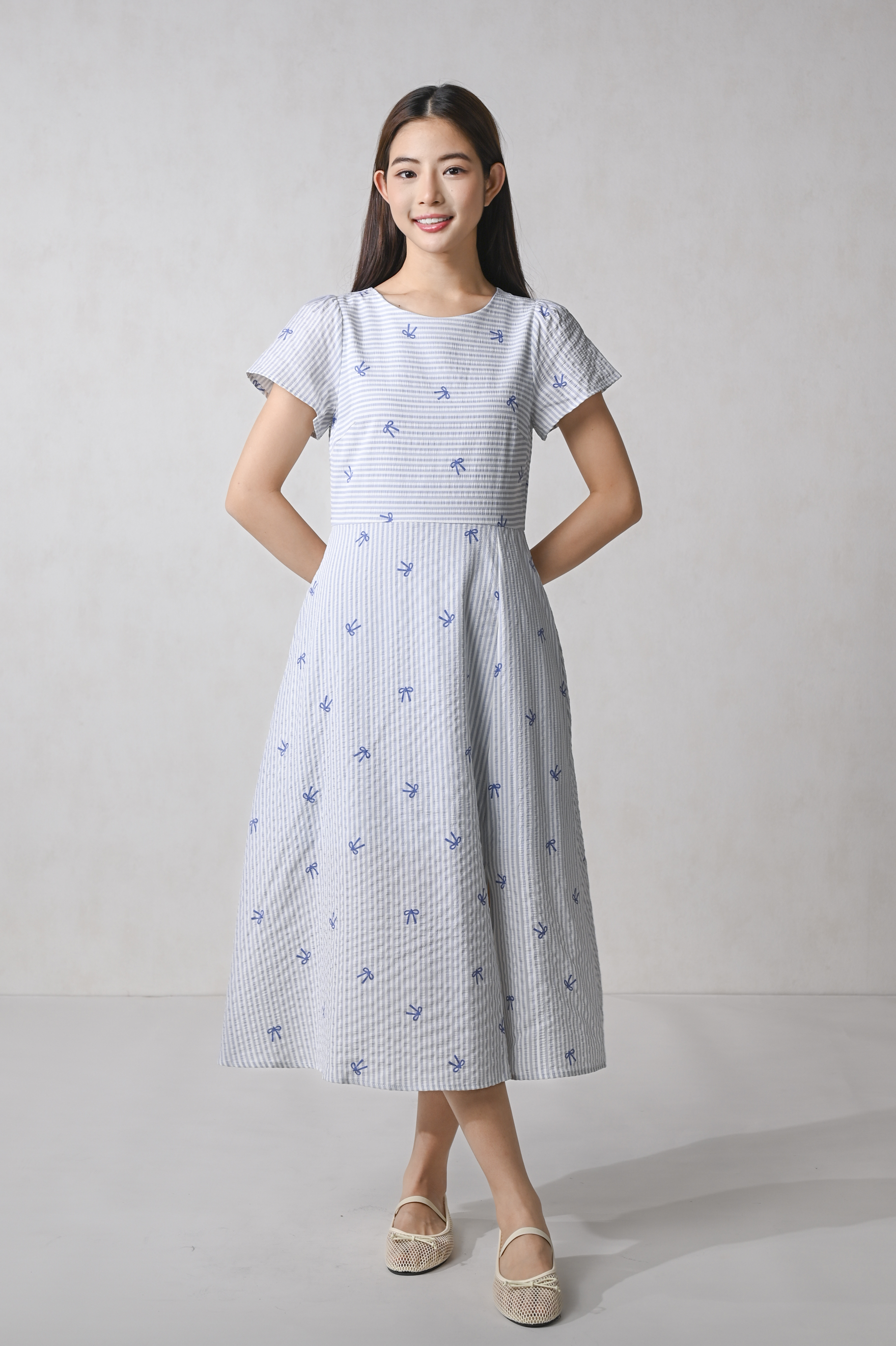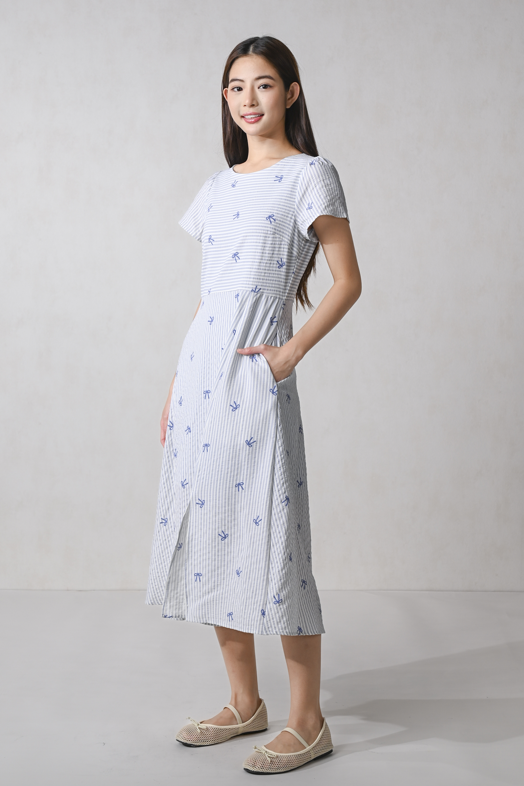 CALLA RIBBON STRIPE SLEEVED MIDI DRESS IN BLUE
