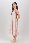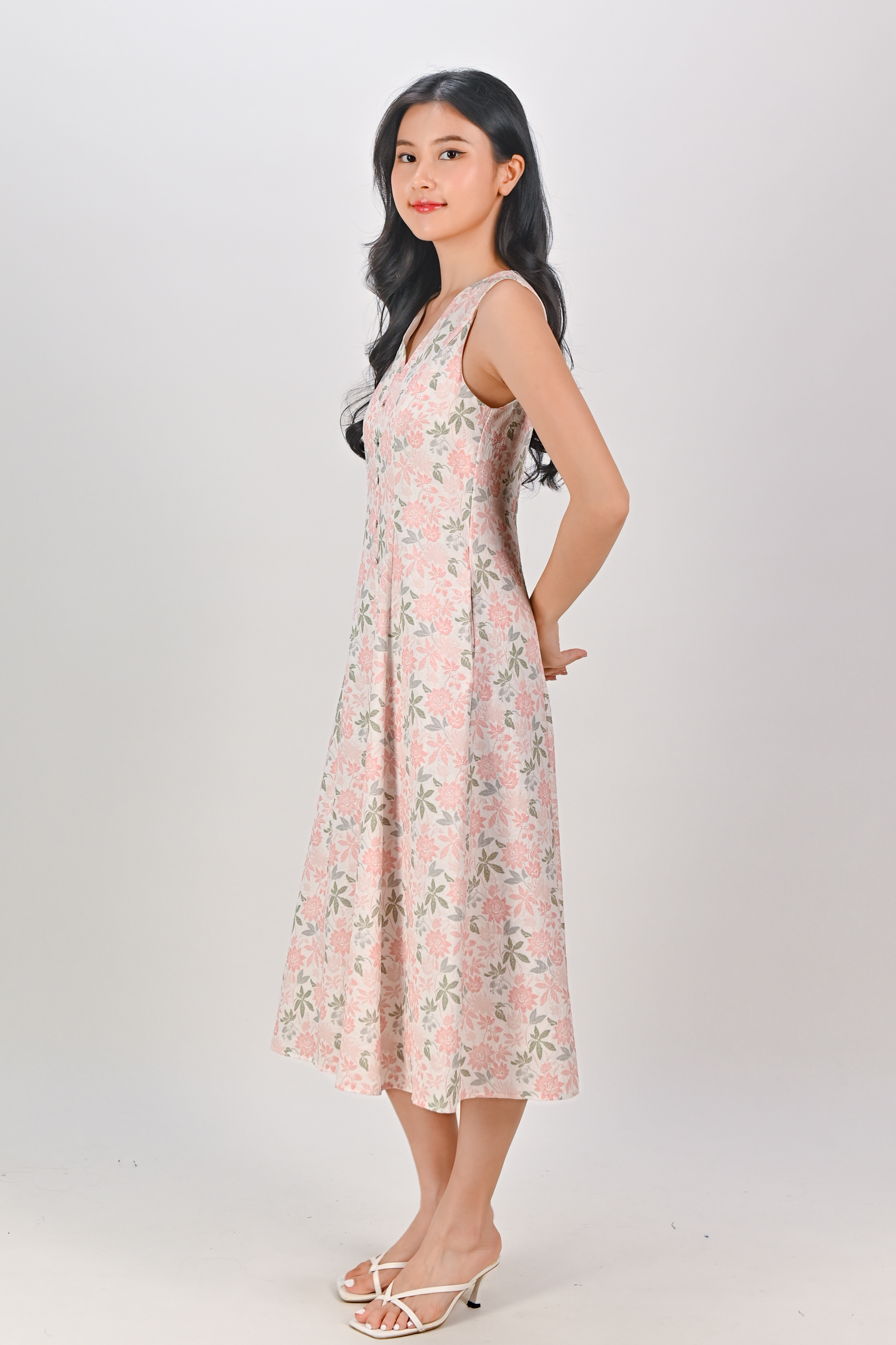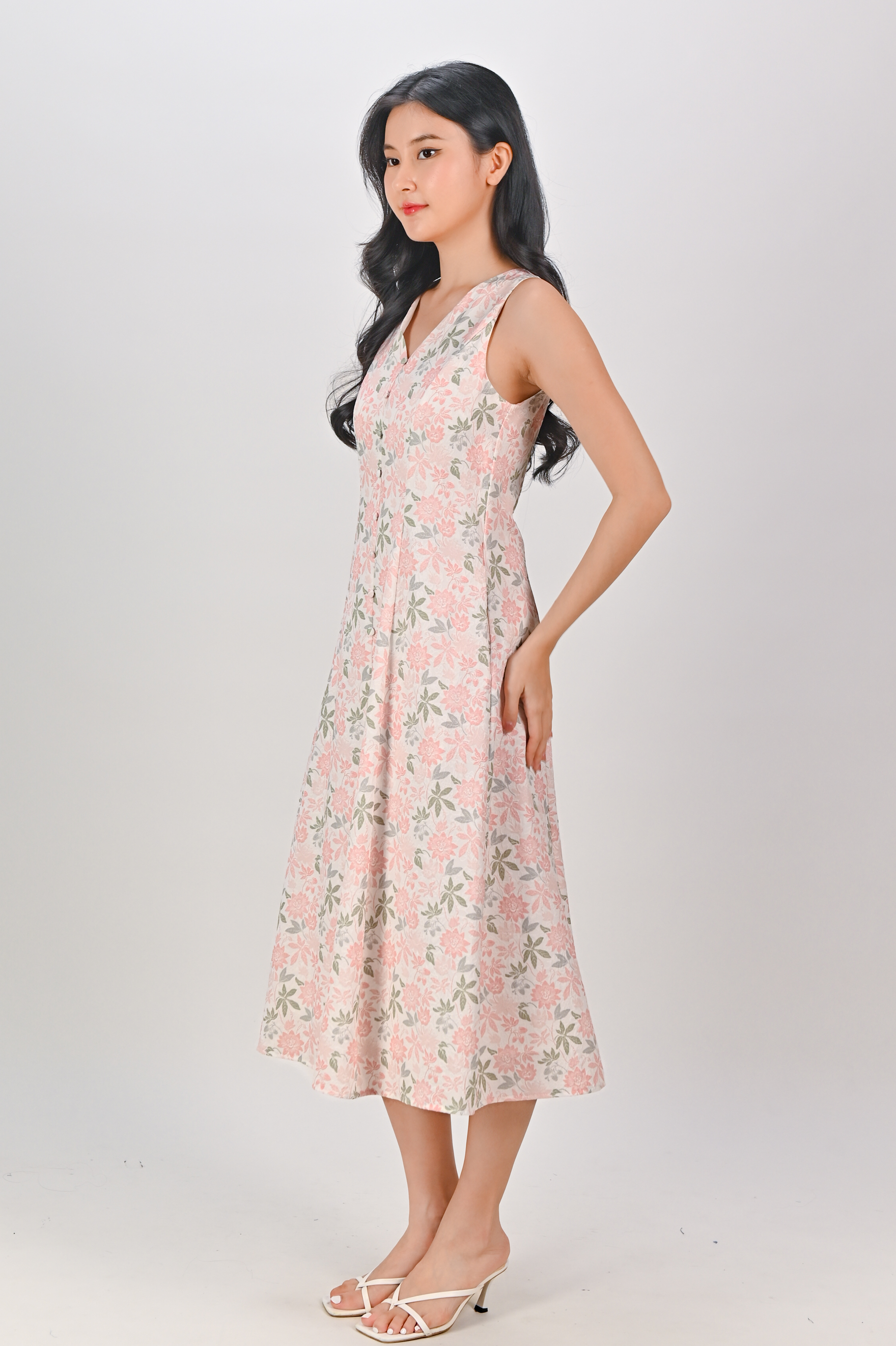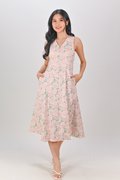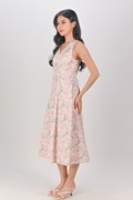 CAMY PEACH GARDEN SLEEVELESS BUTTON MIDI DRESS