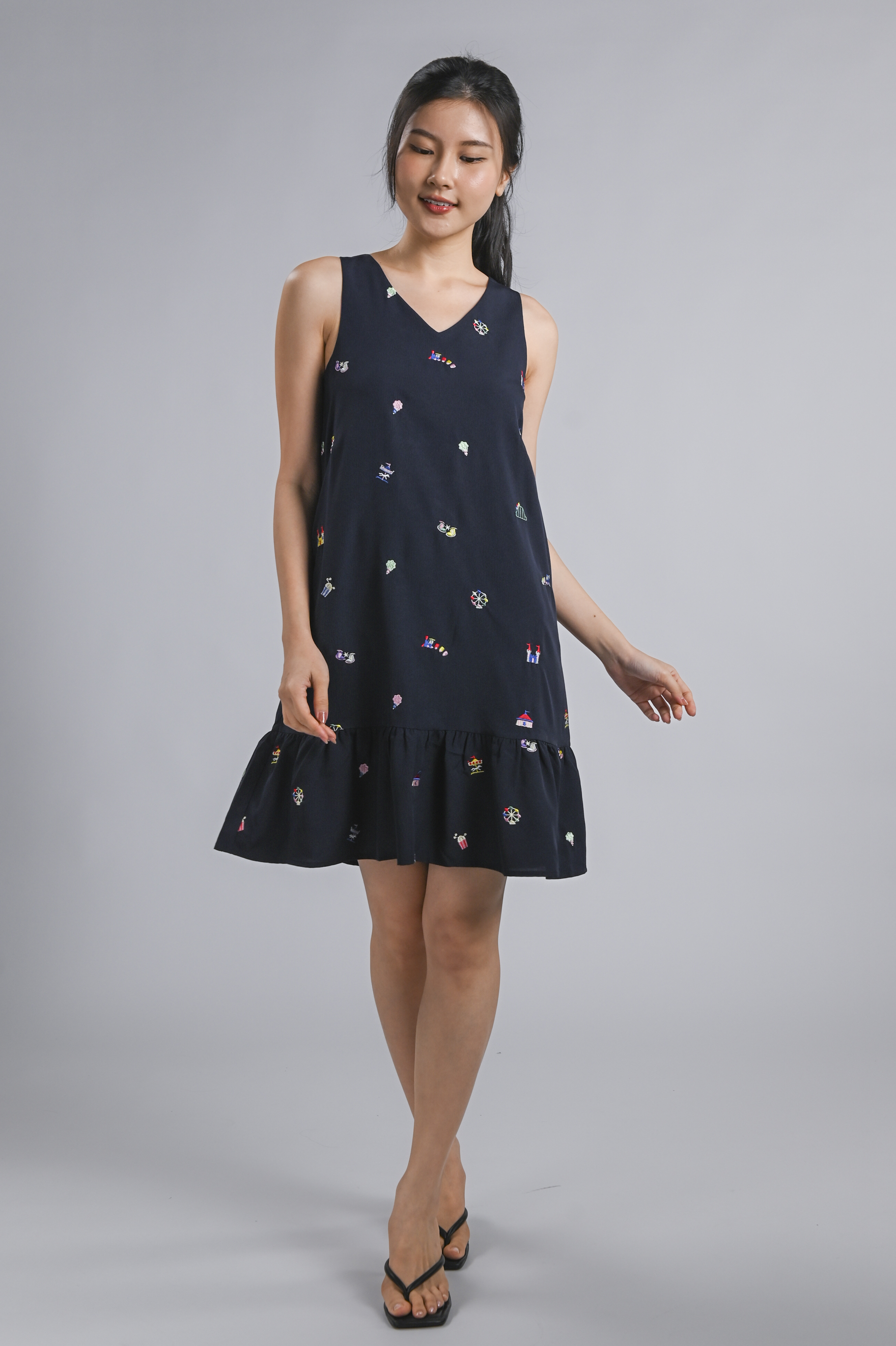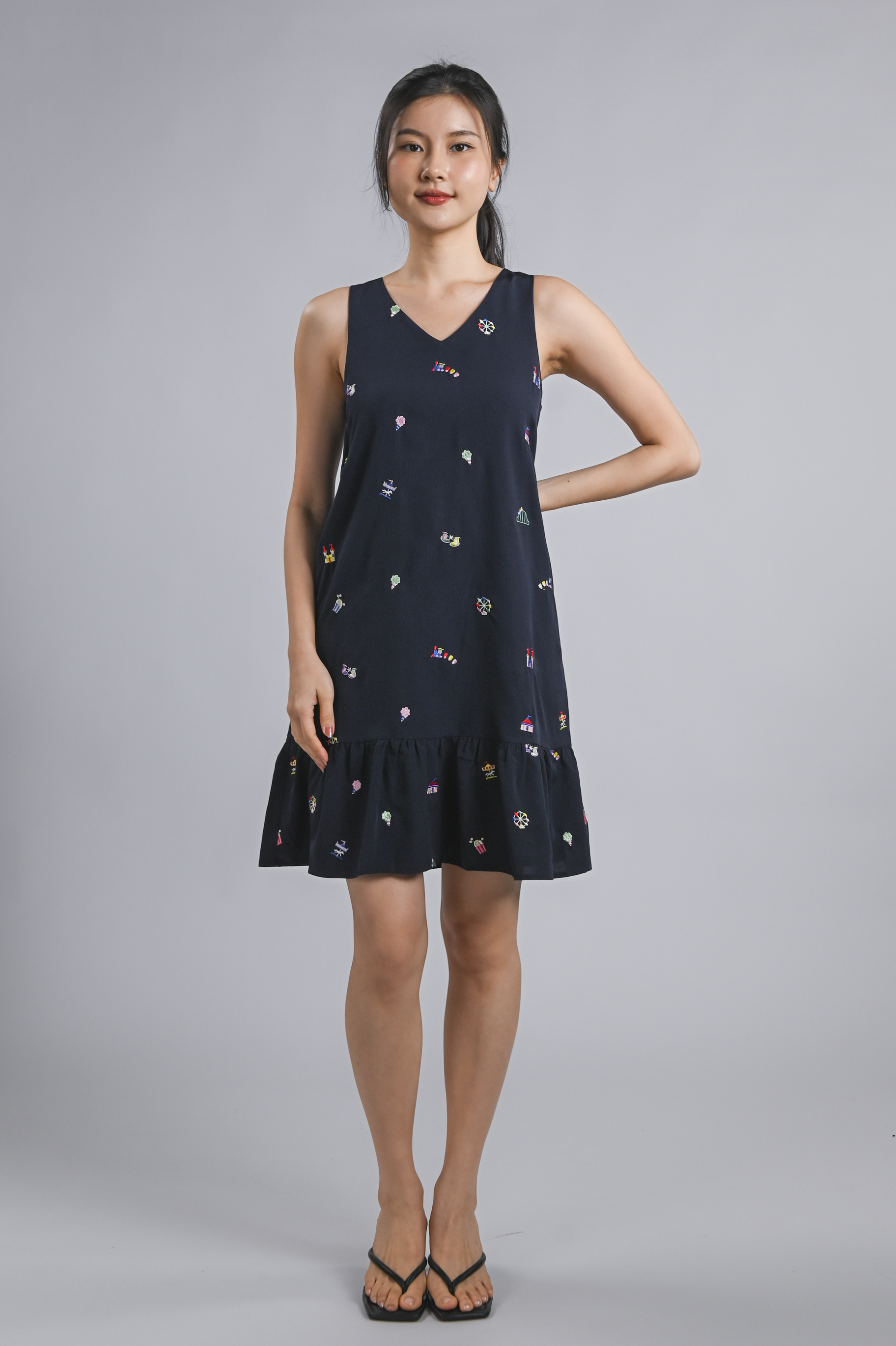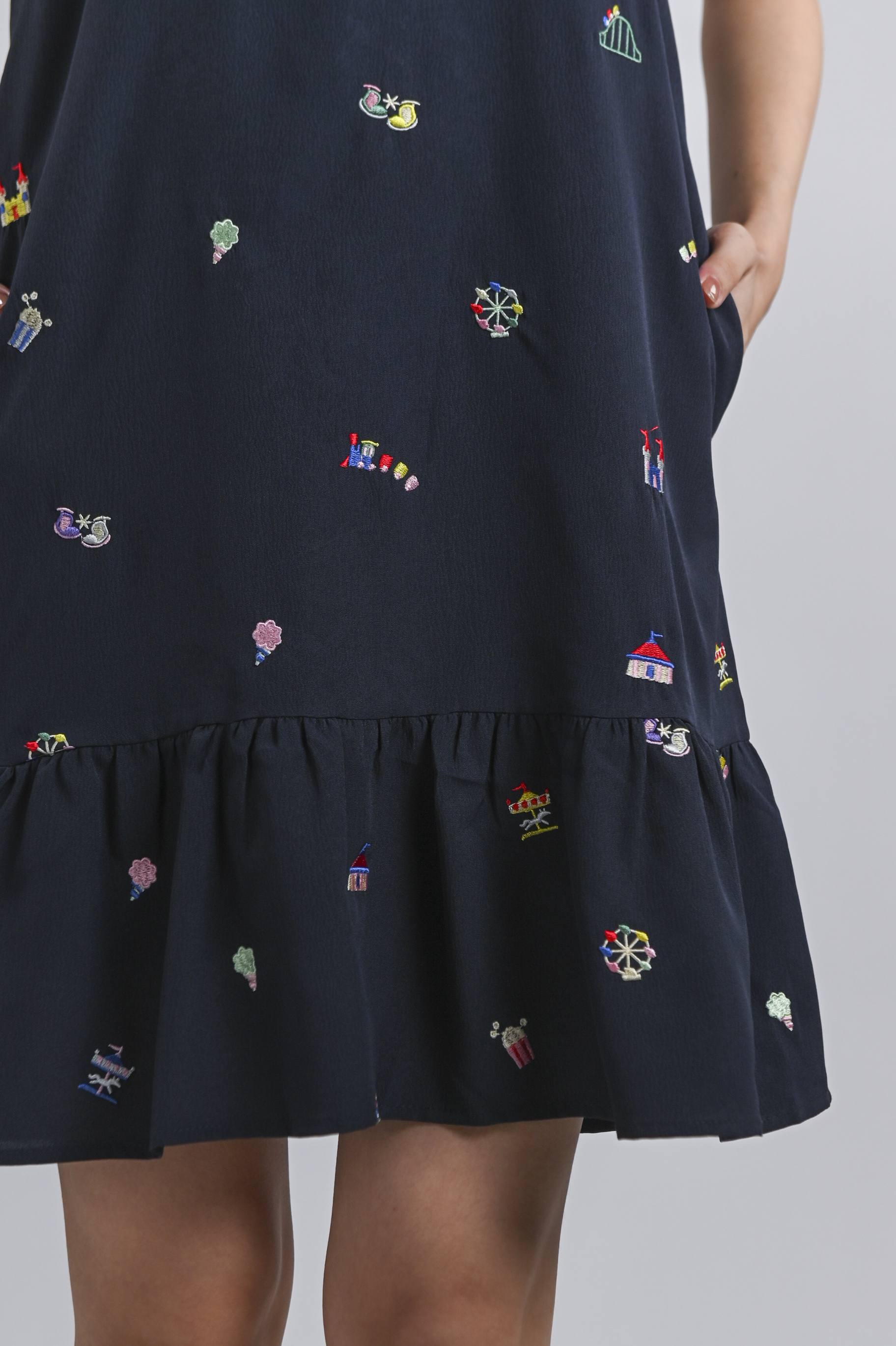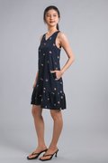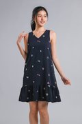 CARNIVAL NAVY EMB. SLEEVELESS DROPWAIST DRESS