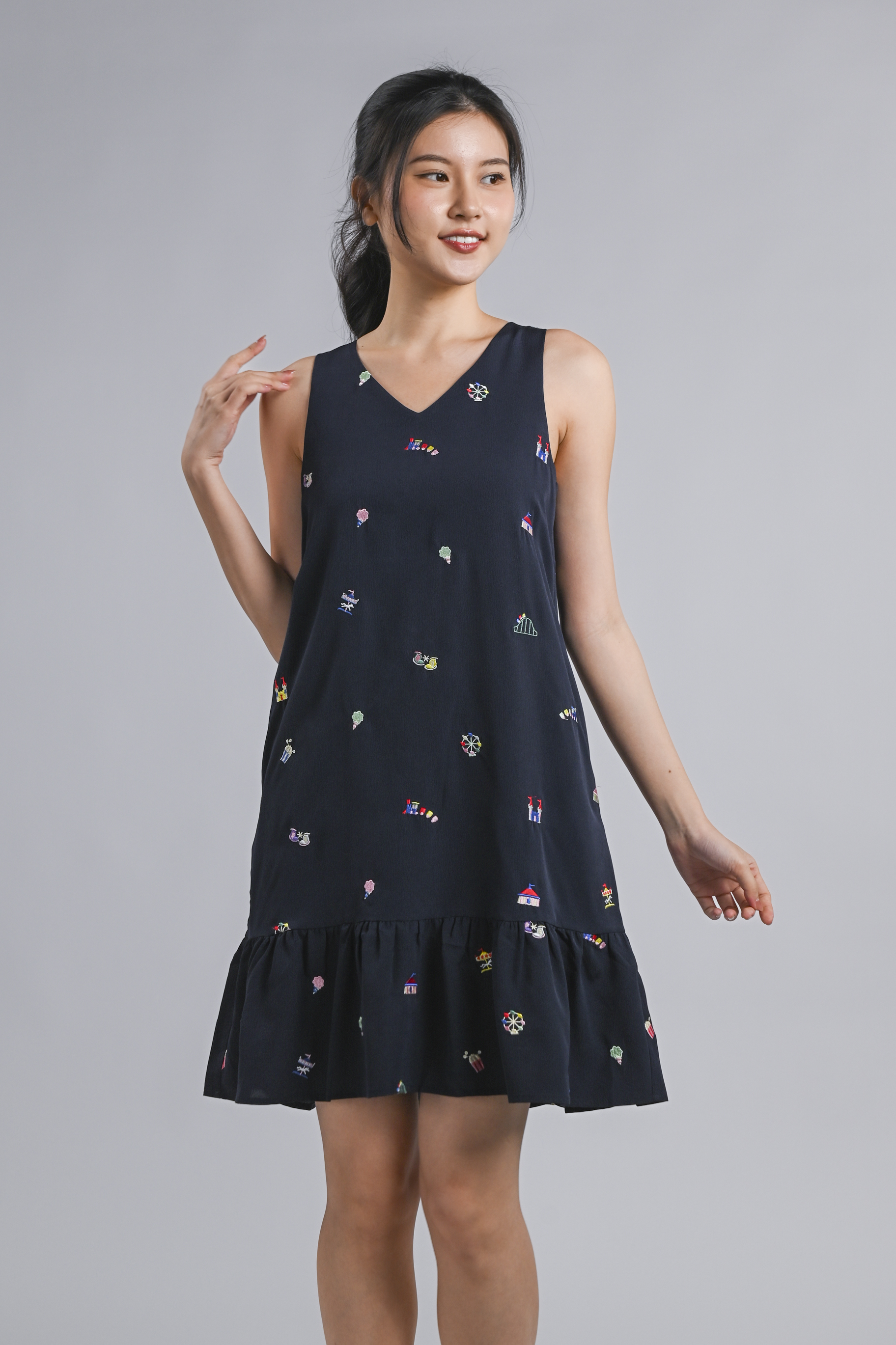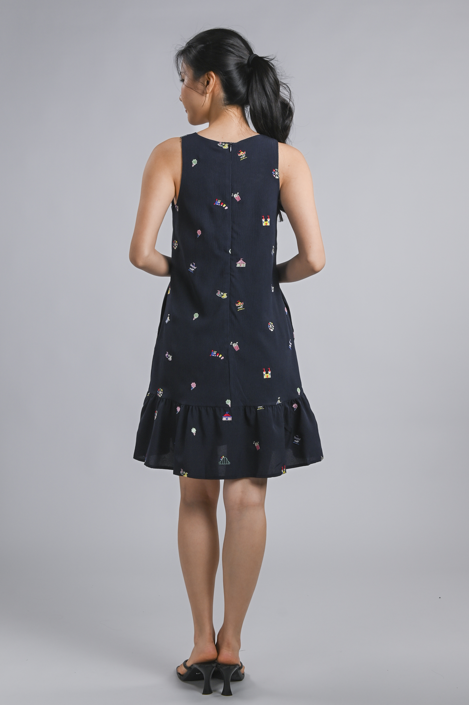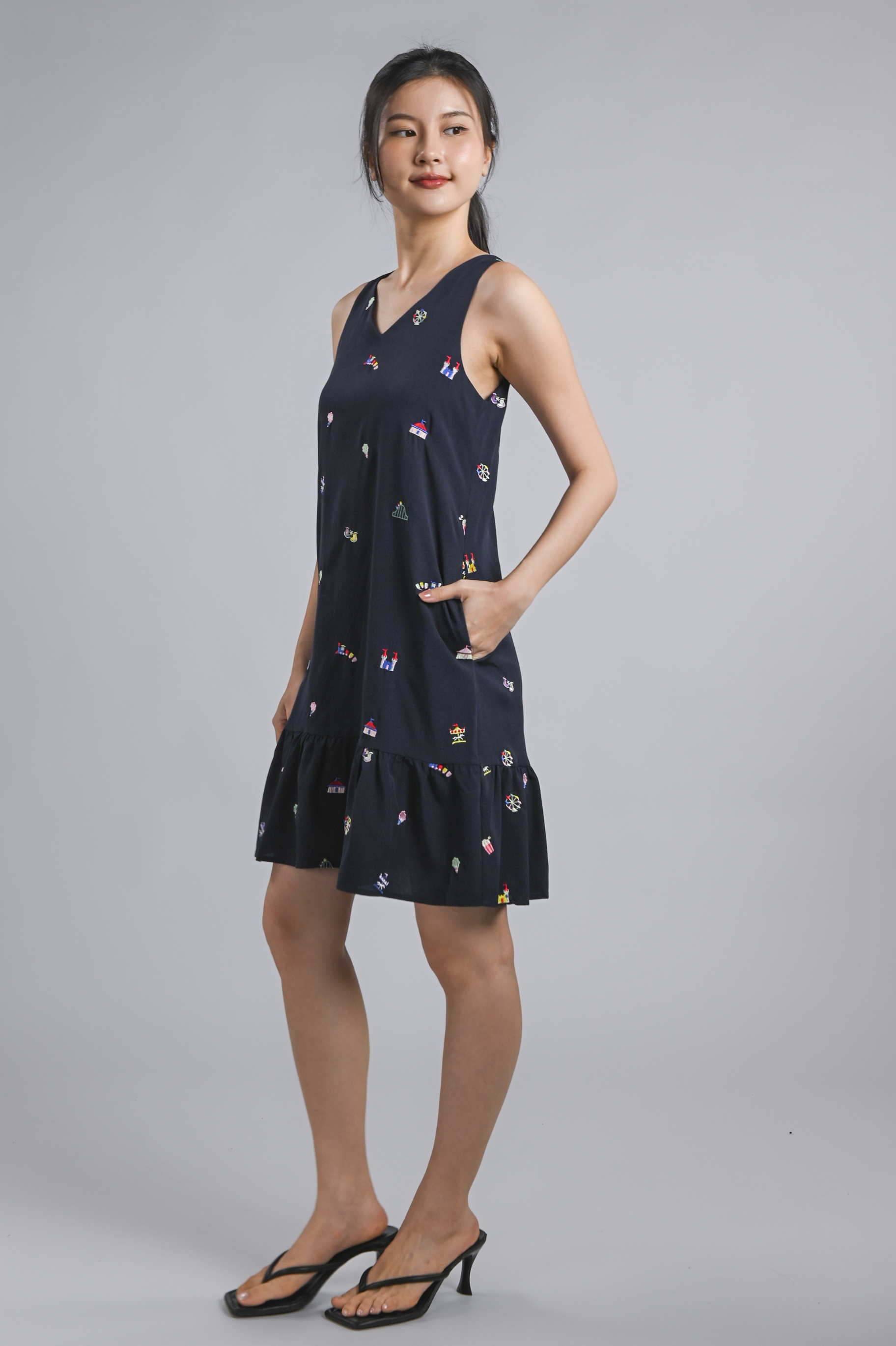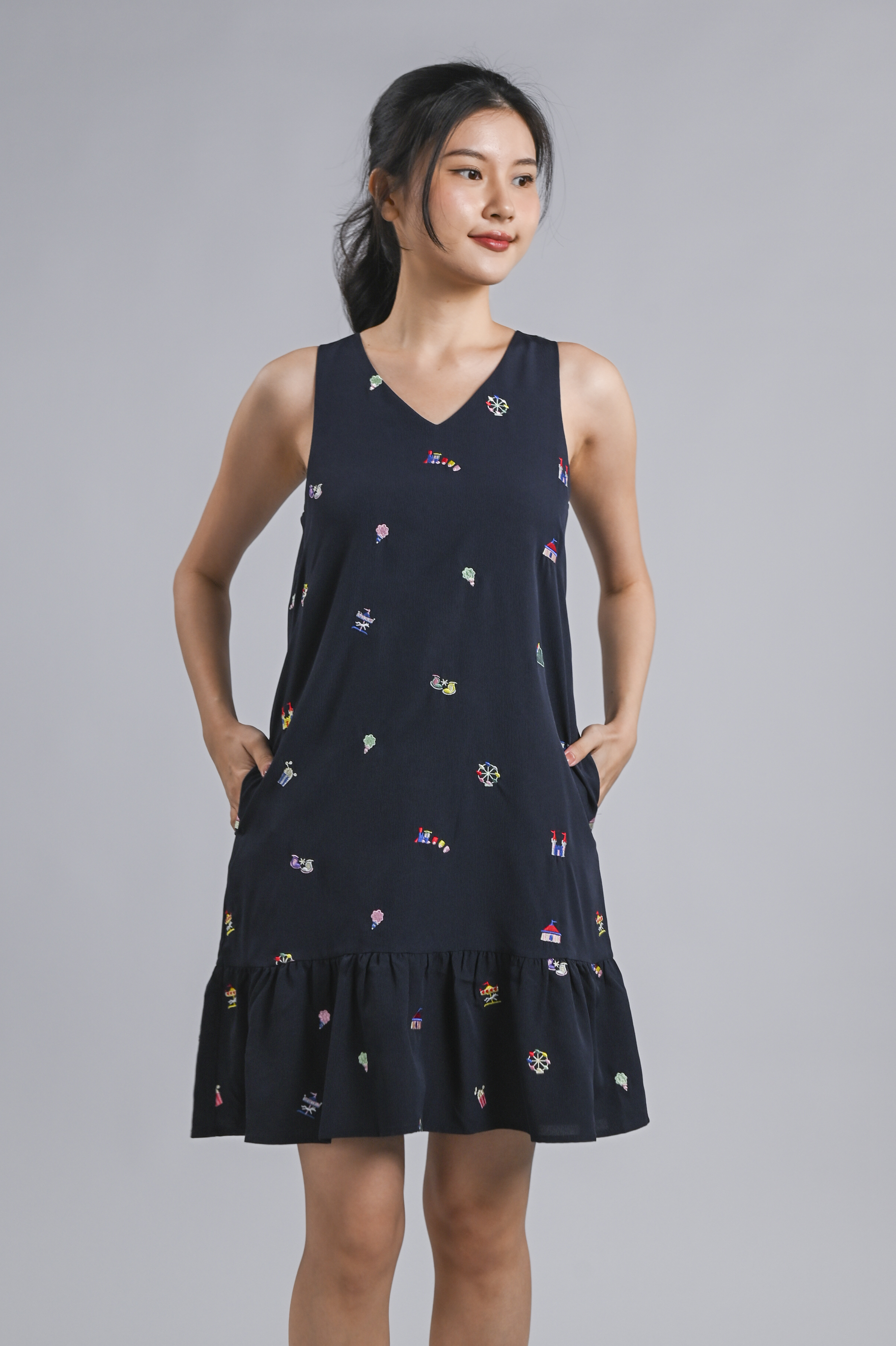 CARNIVAL NAVY EMB. SLEEVELESS DROPWAIST DRESS